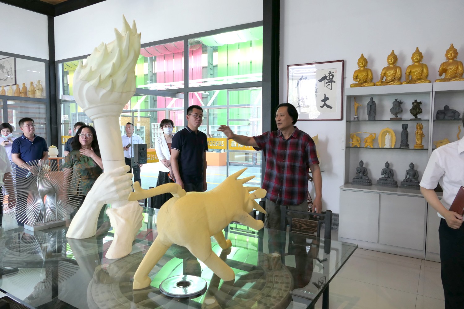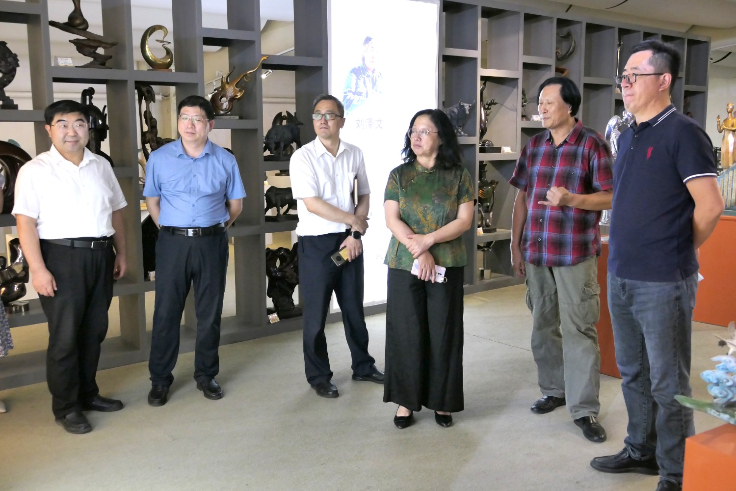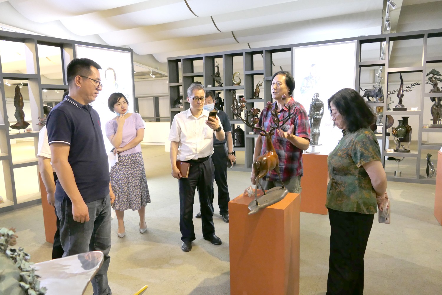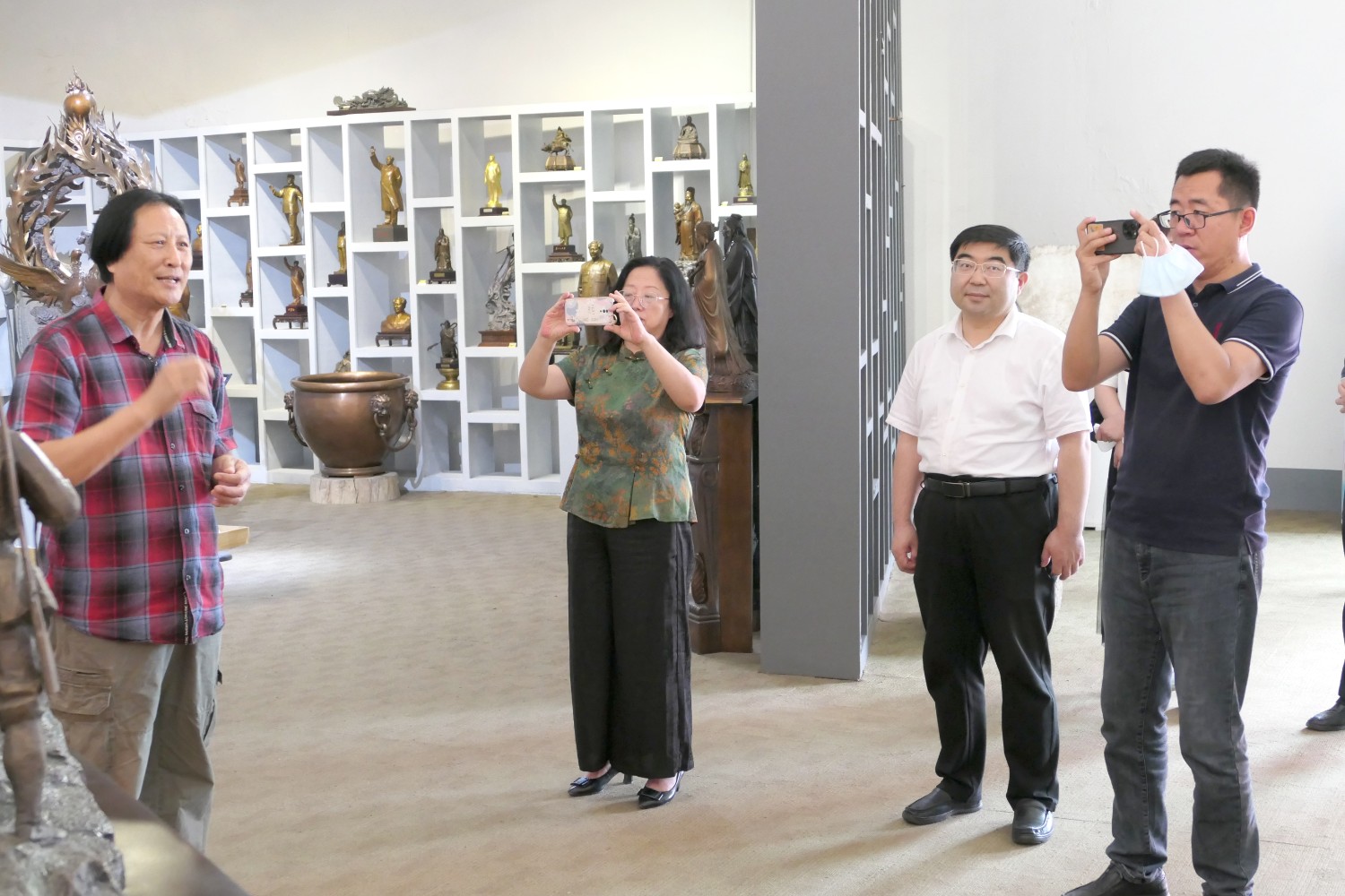 2022-7-52022年6月8日,山東省委宣傳部文改辦副主任王曄。昝勝鋒,濟(jì)南工藝美術(shù)學(xué)會會長,山東大學(xué)文化產(chǎn)業(yè)研究院院長。劉紹芹,山東青年政治學(xué)院文化傳播學(xué)院院長,中國地域文化傳播研究中心主任。李金芳,山東文旅景區(qū)投資集團(tuán)宣傳營銷中心經(jīng)理等領(lǐng)導(dǎo),在濰坊市委宣傳部副部長田義明,齊魯文化(濰坊)生態(tài)保護(hù)區(qū)服務(wù)中心主任高增光,市委宣傳部文化科科長王紹芳,市新時代文明實(shí)踐中心副主任楊國平的陪同下,蒞臨華藝調(diào)研“山東手造100”企業(yè)情況。臨朐縣委宣傳部長劉瑩有,縣文化中心主任李詠梅,縣委宣傳部辦公室主任劉鵬,宣傳部文化科科長祝紅蕾等領(lǐng)導(dǎo)陪同參觀調(diào)研。傅紹相董事長介紹雕塑藝術(shù)及企業(yè)“山東手造”發(fā)展情況。