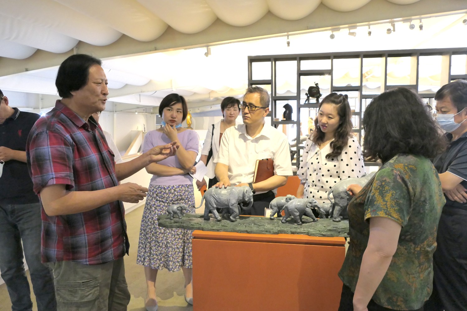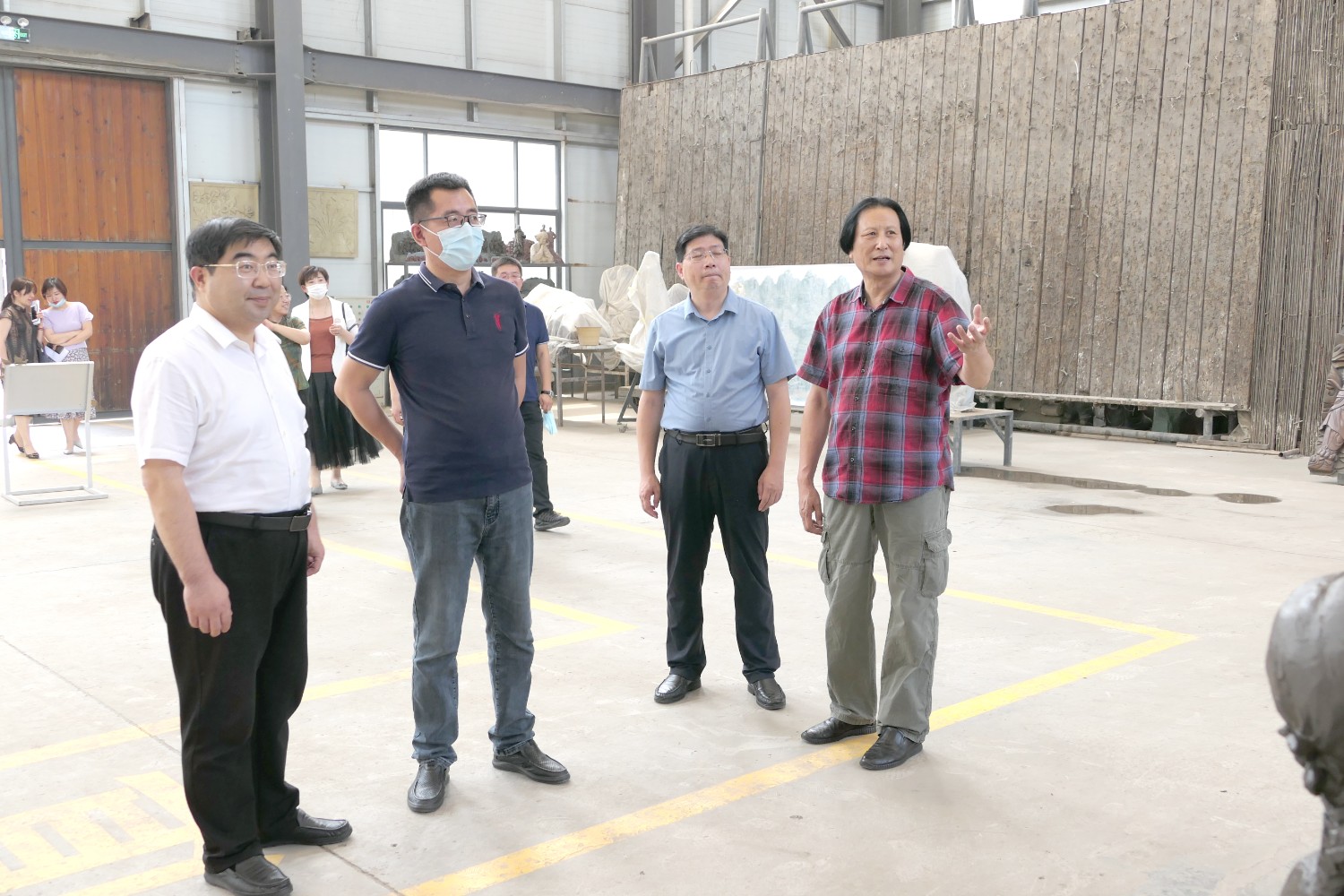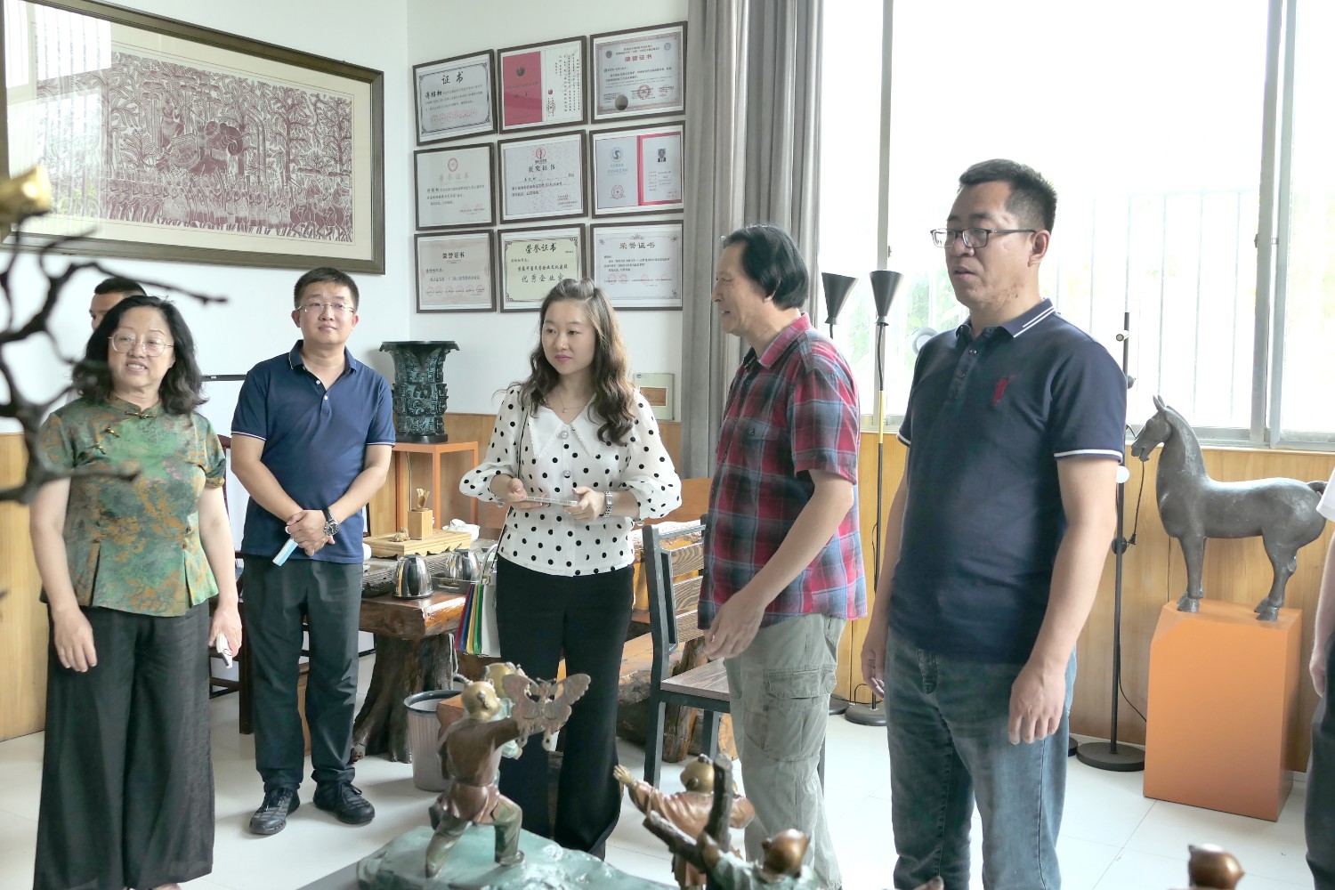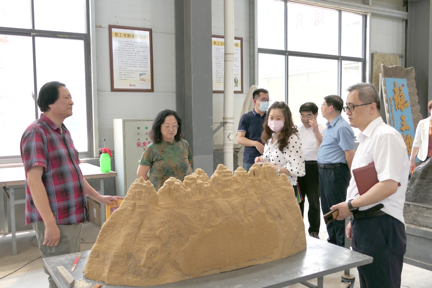 2022-7-52022年6月8日,山東省委宣傳部文改辦副主任王曄。昝勝鋒,濟(jì)南工藝美術(shù)學(xué)會會長,山東大學(xué)文化產(chǎn)業(yè)研究院院長。劉紹芹,山東青年政治學(xué)院文化傳播學(xué)院院長,中國地域文化傳播研究中心主任。李金芳,山東文旅景區(qū)投資集團(tuán)宣傳營銷中心經(jīng)理等領(lǐng)導(dǎo),在濰坊市委宣傳部副部長田義明,齊魯文化(濰坊)生態(tài)保護(hù)區(qū)服務(wù)中心主任高增光,市委宣傳部文化科科長王紹芳,市新時代文明實(shí)踐中心副主任楊國平的陪同下,蒞臨華藝調(diào)研“山東手造100”企業(yè)情況。臨朐縣委宣傳部長劉瑩有,縣文化中心主任李詠梅,縣委宣傳部辦公室主任劉鵬,宣傳部文化科科長祝紅蕾等領(lǐng)導(dǎo)陪同參觀調(diào)研。傅紹相董事長介紹雕塑藝術(shù)及企業(yè)“山東手造”發(fā)展情況。