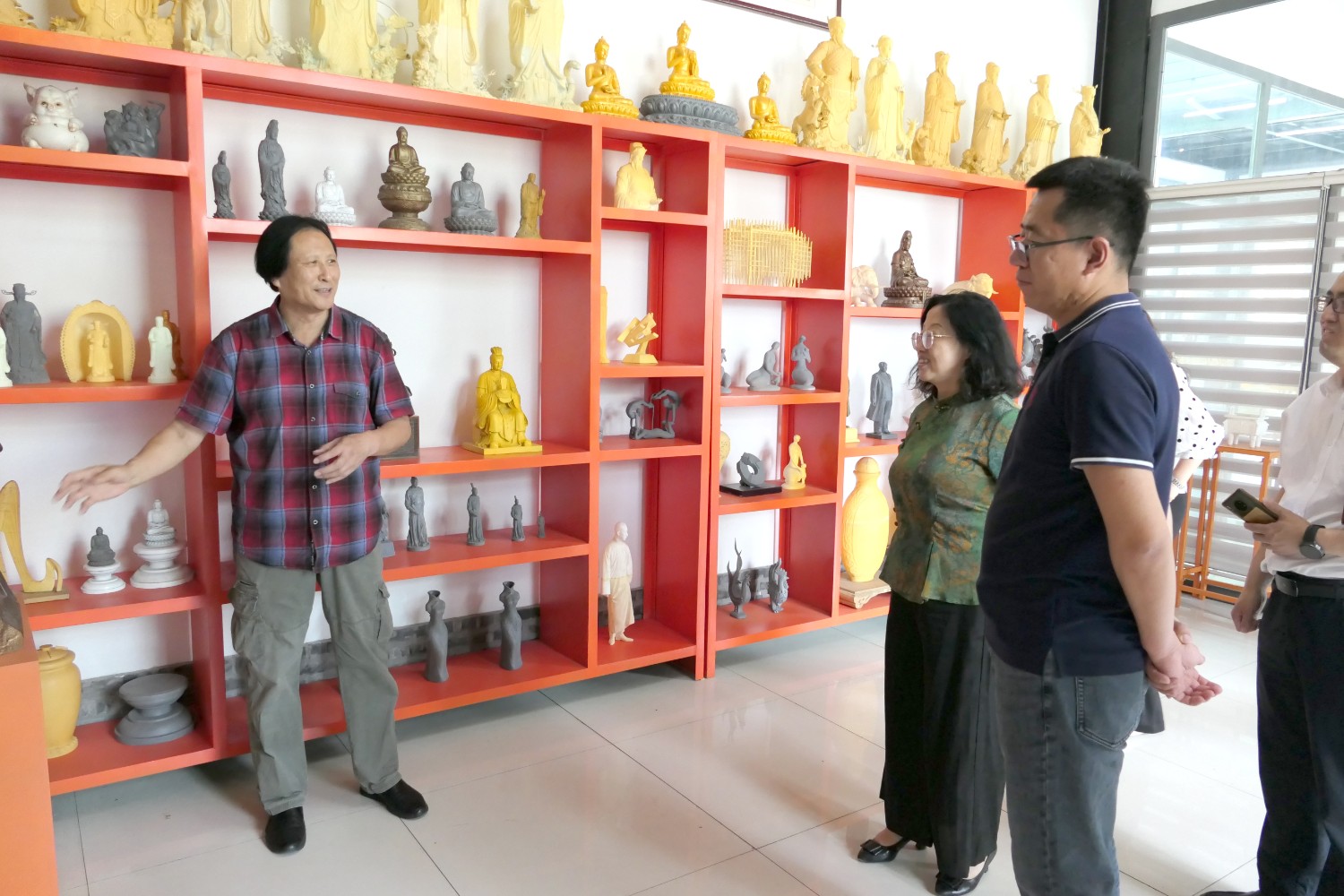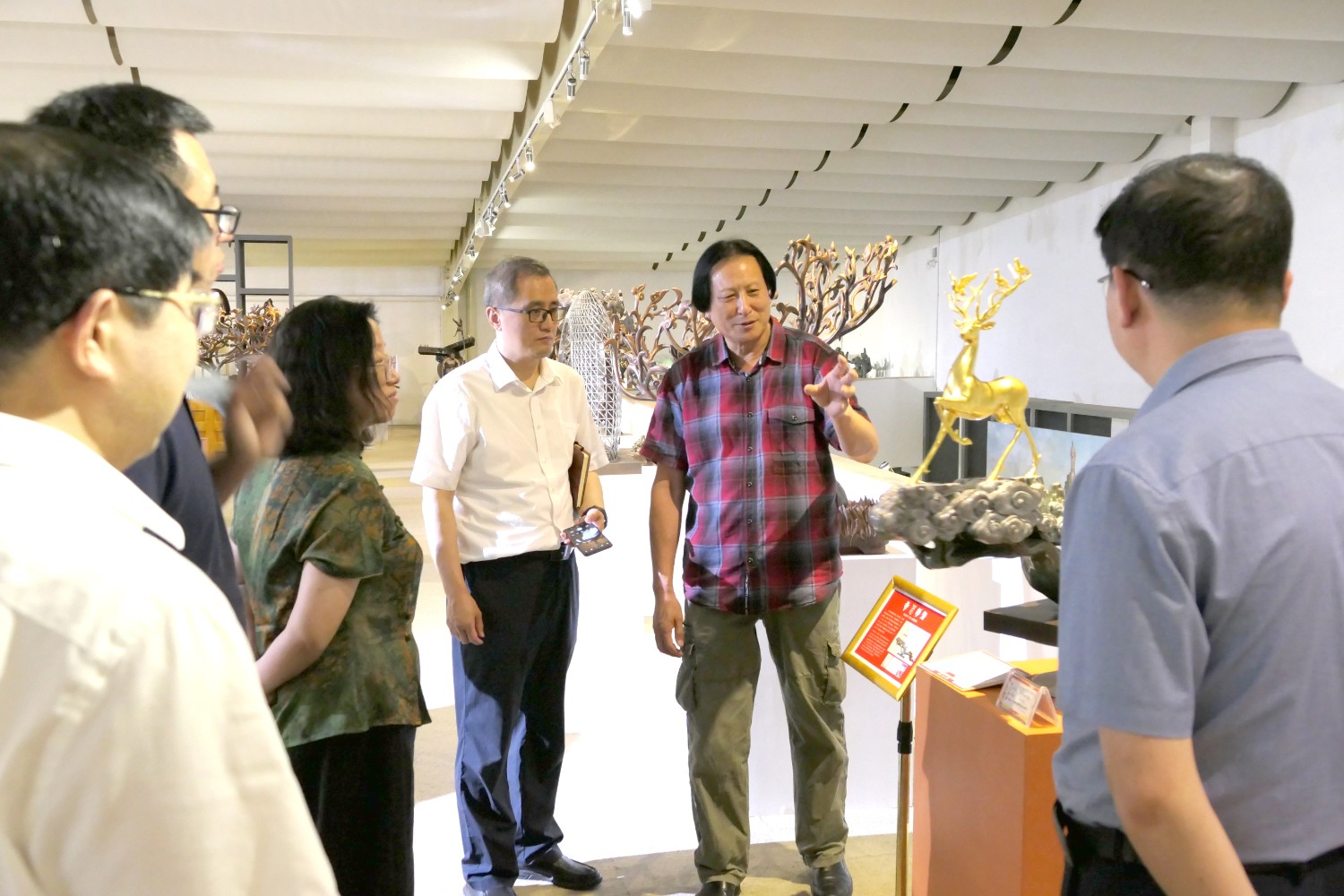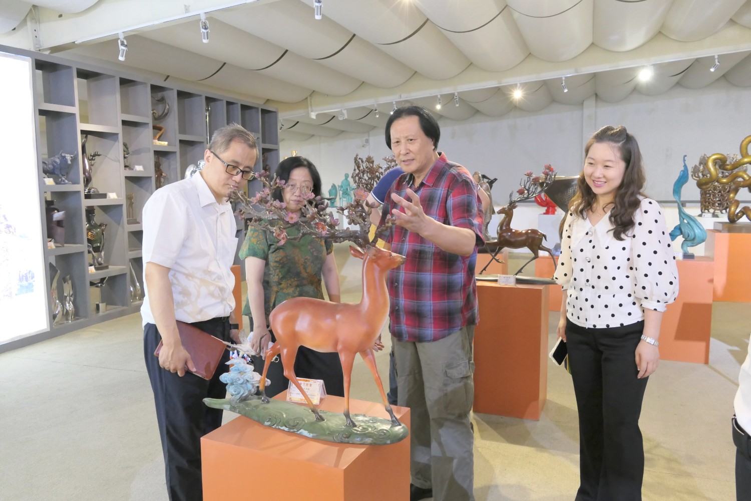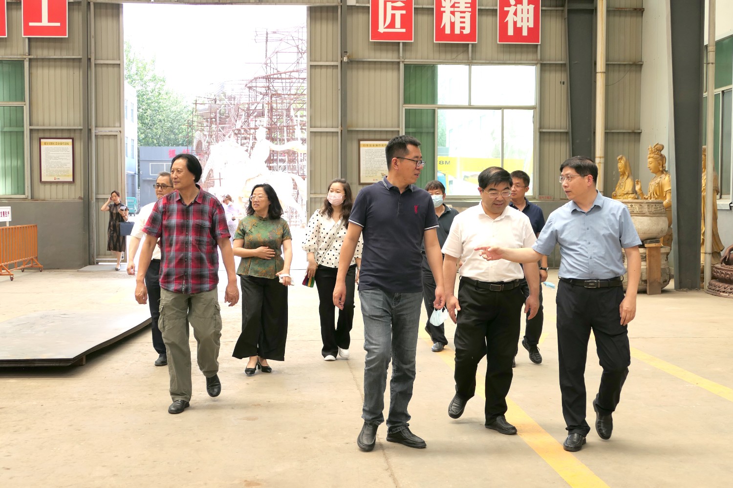 2022-7-52022年6月8日,山東省委宣傳部文改辦副主任王曄。昝勝鋒,濟(jì)南工藝美術(shù)學(xué)會會長,山東大學(xué)文化產(chǎn)業(yè)研究院院長。劉紹芹,山東青年政治學(xué)院文化傳播學(xué)院院長,中國地域文化傳播研究中心主任。李金芳,山東文旅景區(qū)投資集團(tuán)宣傳營銷中心經(jīng)理等領(lǐng)導(dǎo),在濰坊市委宣傳部副部長田義明,齊魯文化(濰坊)生態(tài)保護(hù)區(qū)服務(wù)中心主任高增光,市委宣傳部文化科科長王紹芳,市新時代文明實(shí)踐中心副主任楊國平的陪同下,蒞臨華藝調(diào)研“山東手造100”企業(yè)情況。臨朐縣委宣傳部長劉瑩有,縣文化中心主任李詠梅,縣委宣傳部辦公室主任劉鵬,宣傳部文化科科長祝紅蕾等領(lǐng)導(dǎo)陪同參觀調(diào)研。傅紹相董事長介紹雕塑藝術(shù)及企業(yè)“山東手造”發(fā)展情況。
