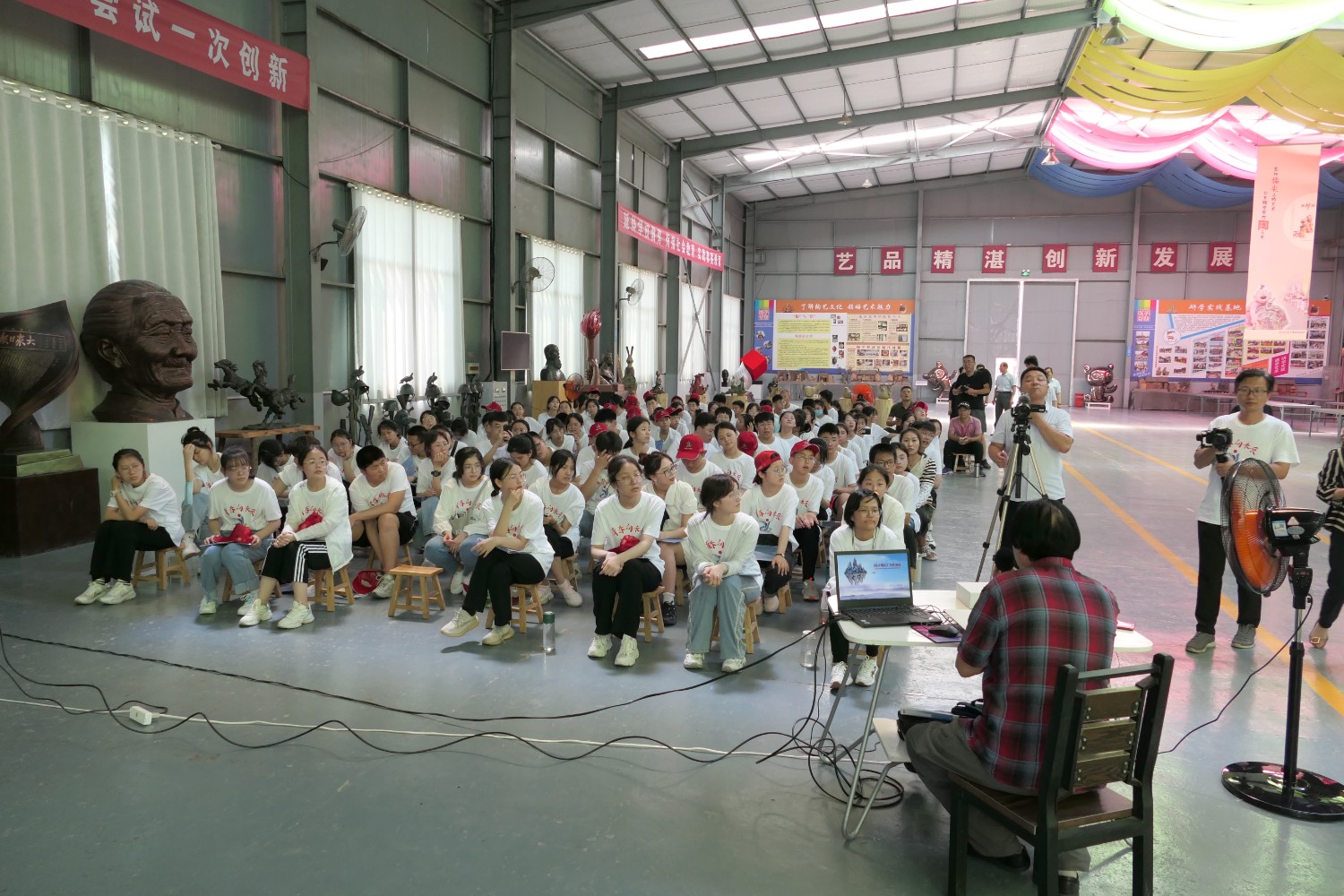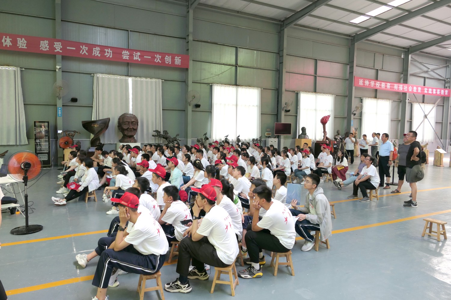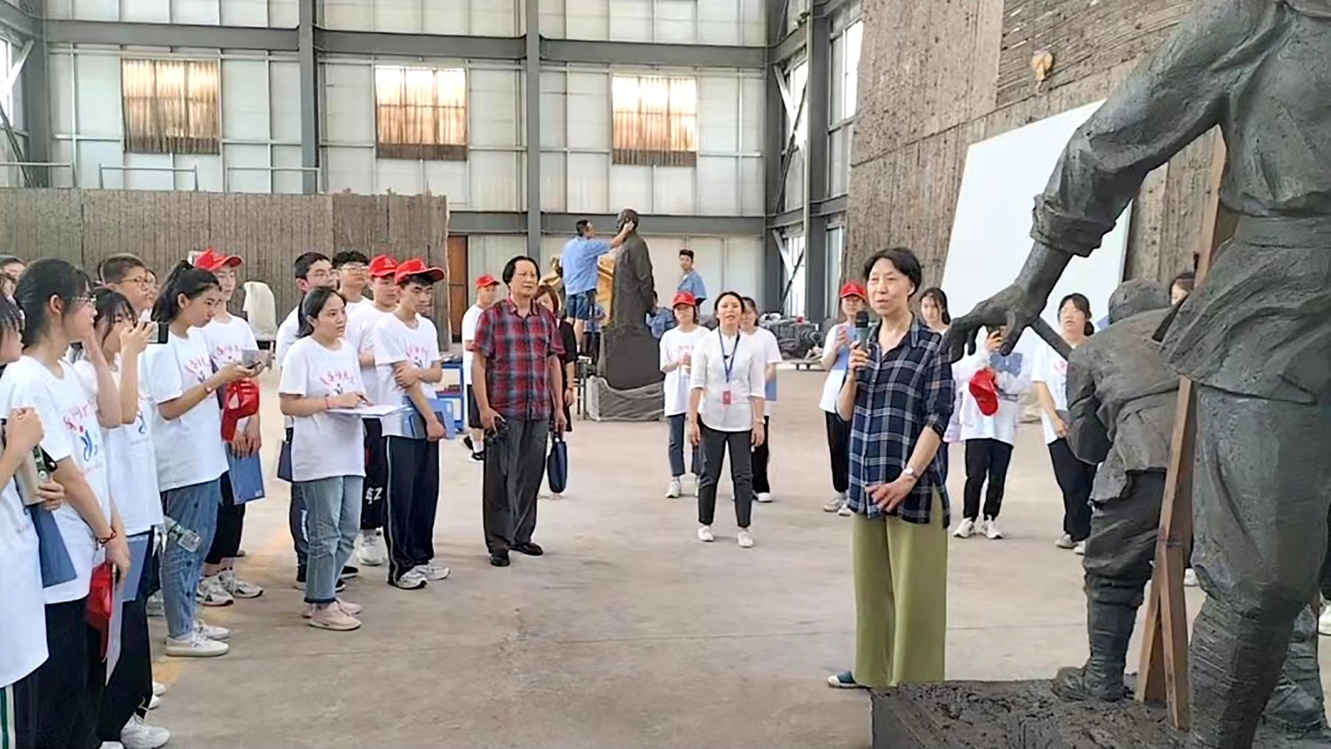 2022年6月18日,臨朐縣綜合實(shí)踐學(xué)校蒞臨華藝雕塑參加實(shí)踐培訓(xùn)。傅紹相作了文創(chuàng)《綠水青山》系列作品的講座,精心的構(gòu)思、精湛的作品得到了師生的共同贊譽(yù)。比利時(shí)雕塑家閆淑芬現(xiàn)場(chǎng)雕塑《一戰(zhàn)華工》泥塑介紹,使全體師生受益匪淺。