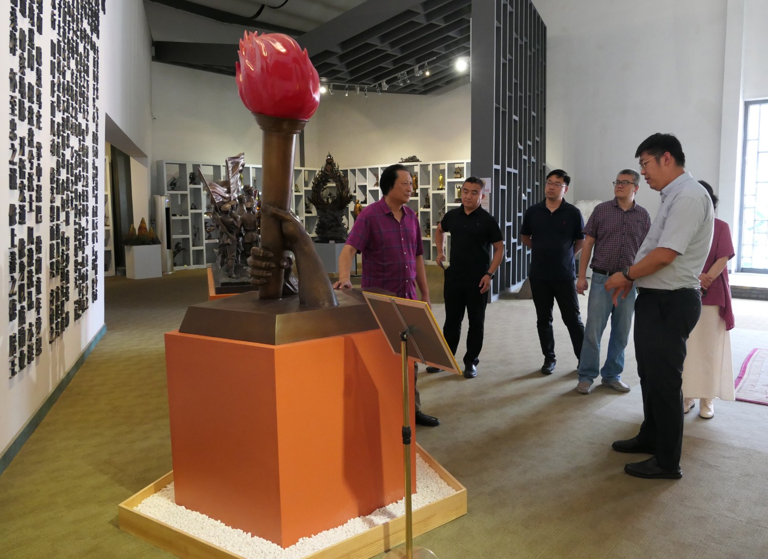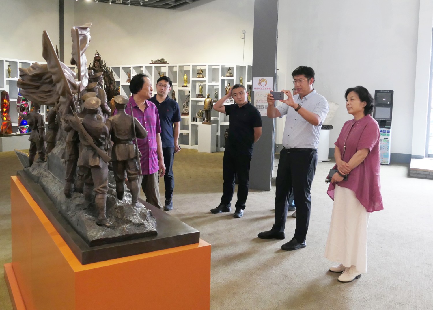 2022年7月11日, 淄博山東四合美術(shù)館王麗君館長陪同淄博市有關(guān)領(lǐng)導(dǎo)蒞臨華藝雕塑參觀指導(dǎo)
