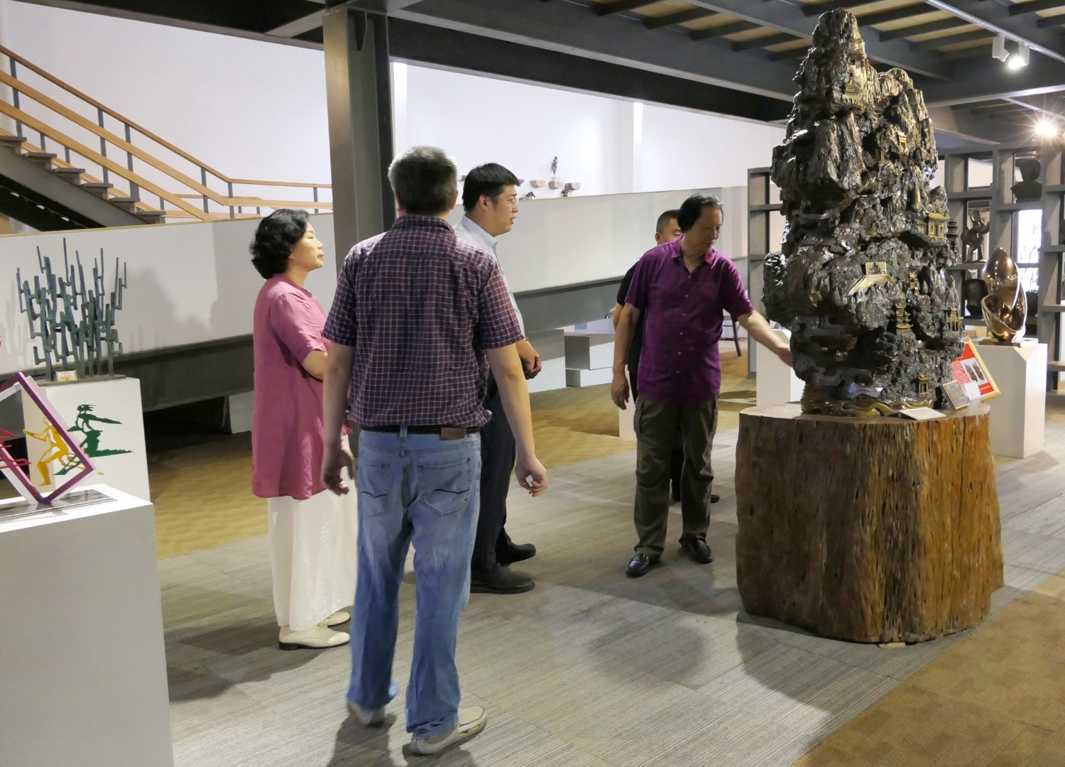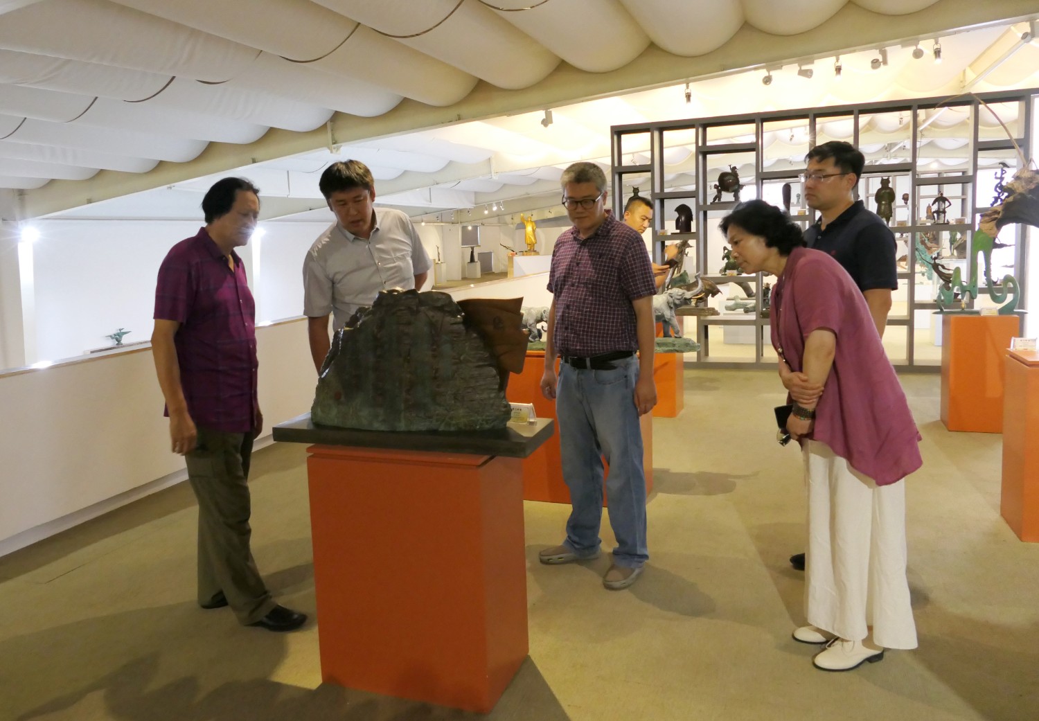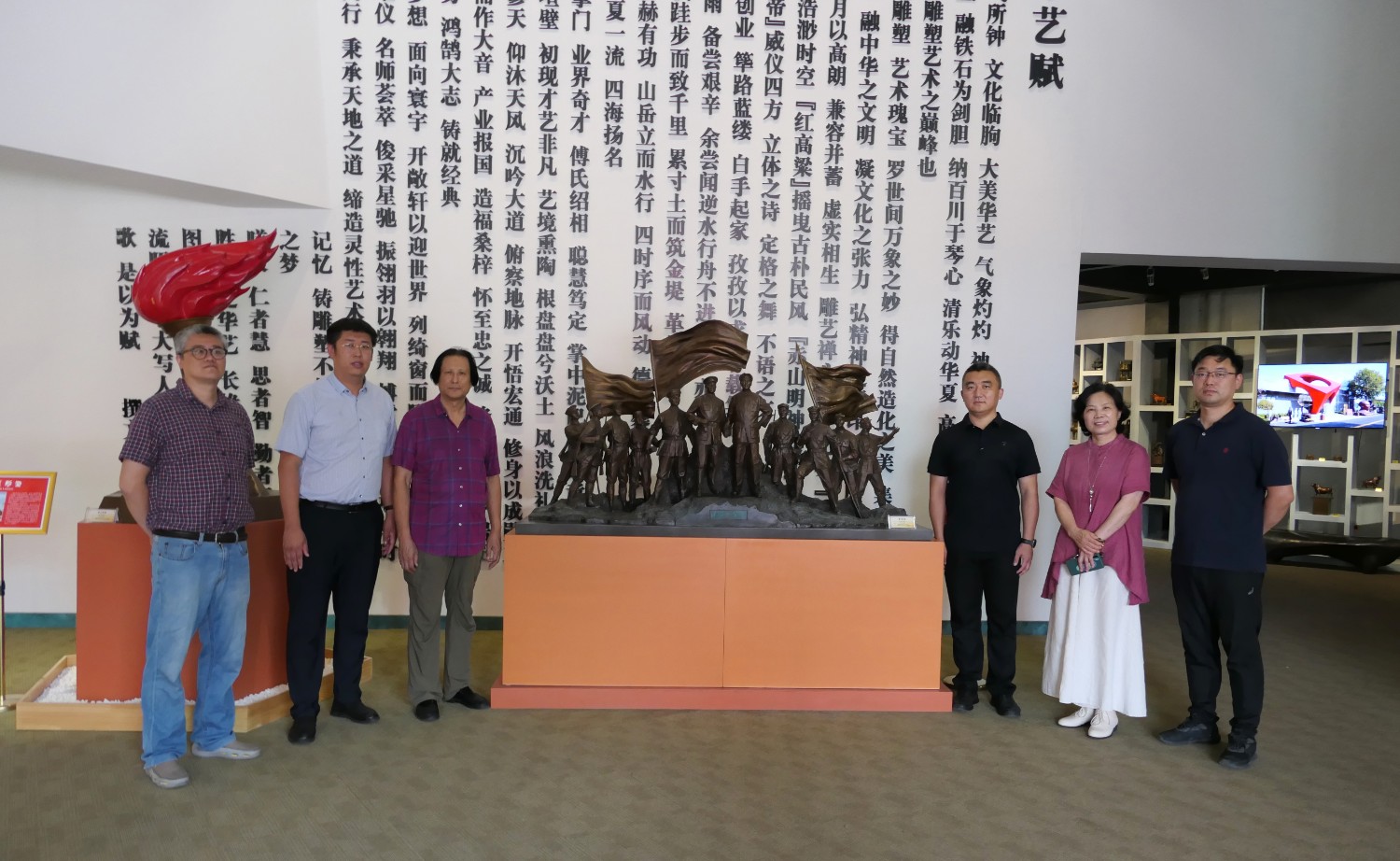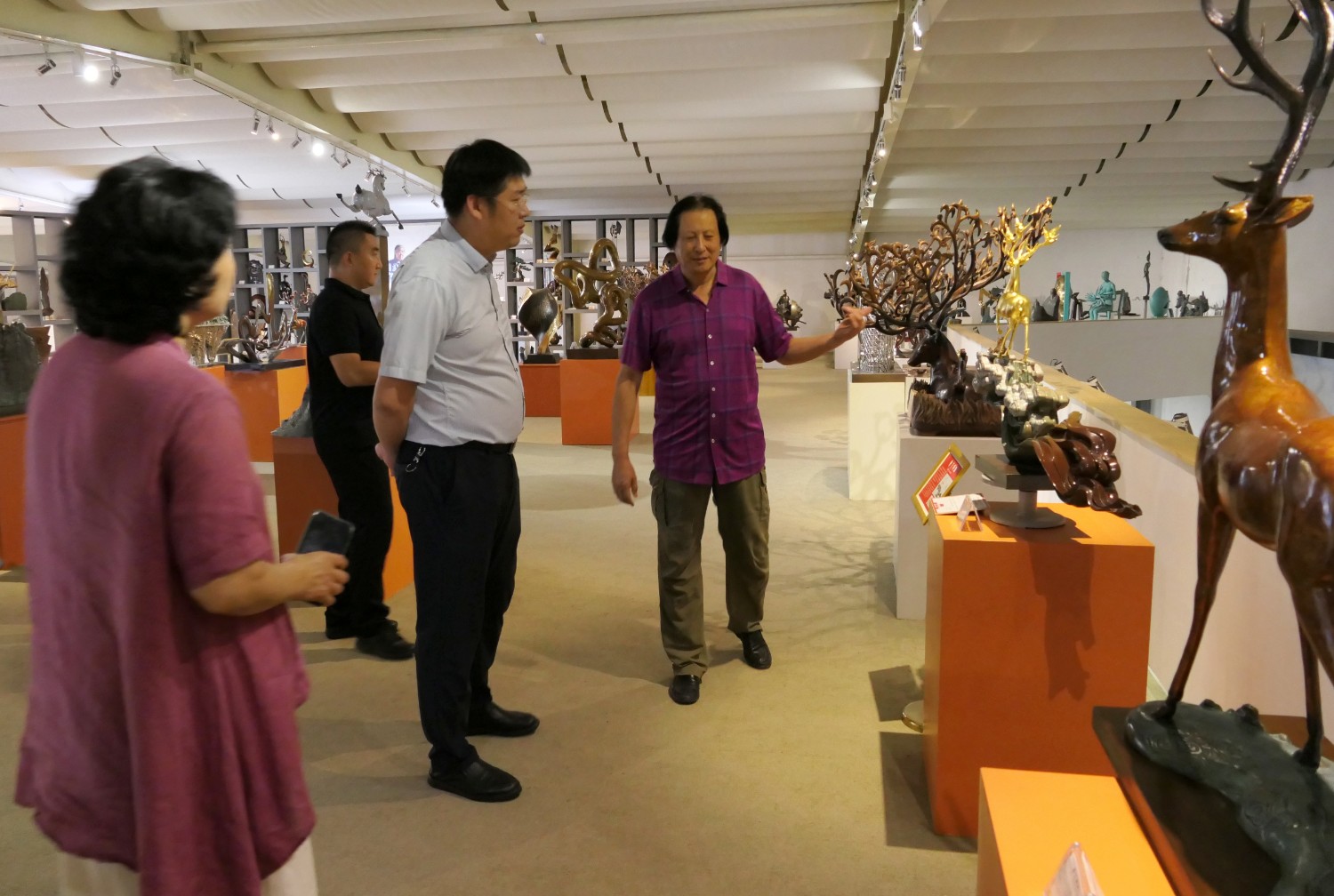 2022年7月11日, 淄博山東四合美術(shù)館王麗君館長陪同淄博市有關(guān)領(lǐng)導(dǎo)蒞臨華藝雕塑參觀指導(dǎo),傅紹相董事長介紹雕塑藝術(shù)。