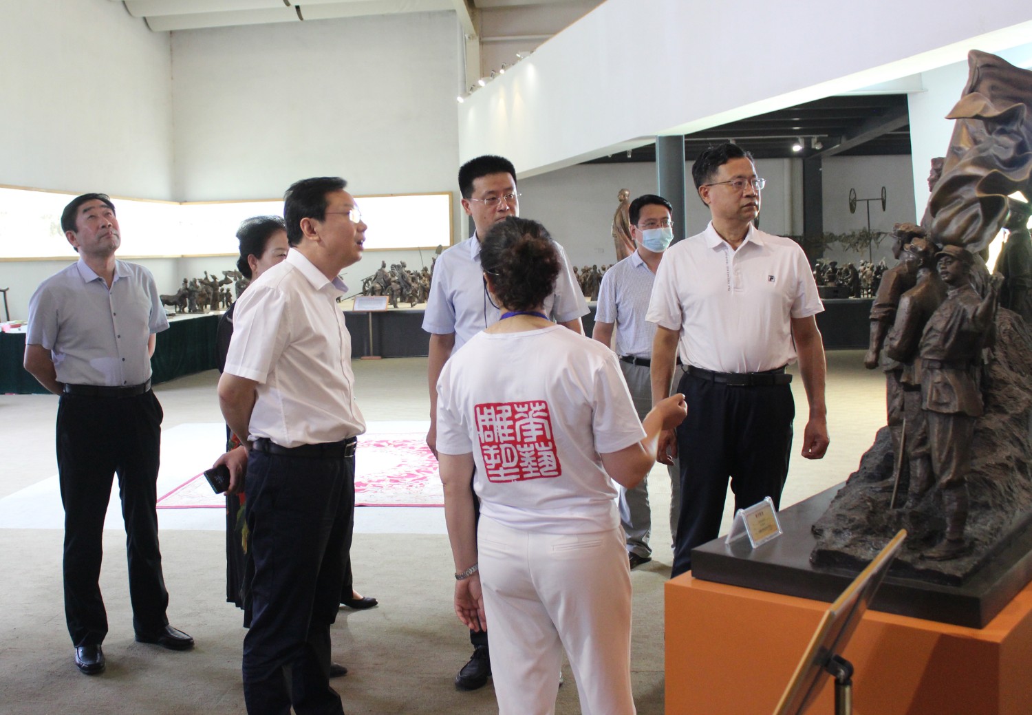 2022年7月16日,濰坊市副市長狄波在臨朐縣人民政府陳誠縣長的陪同下,蒞臨華藝雕塑參觀指導(dǎo)。