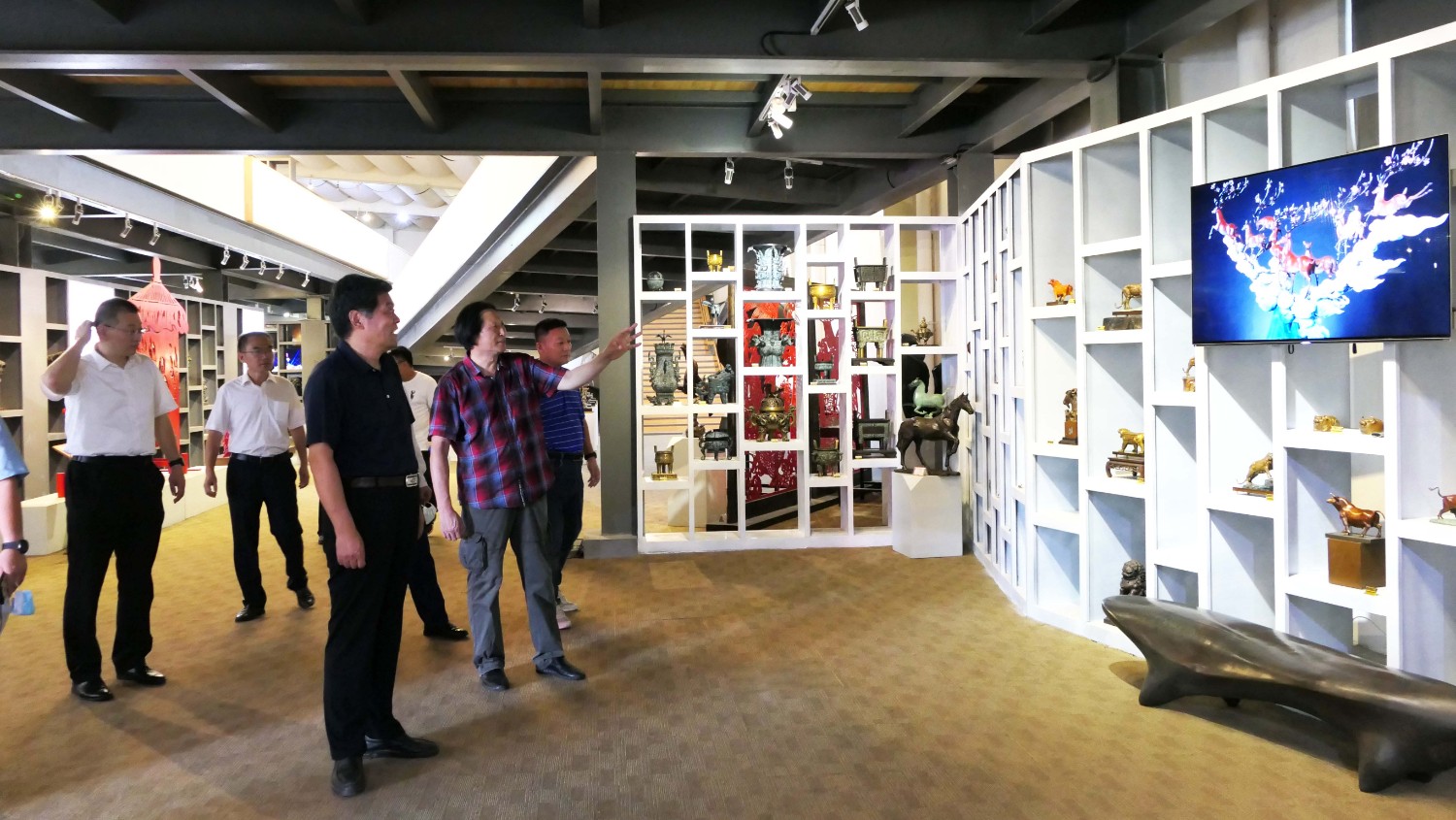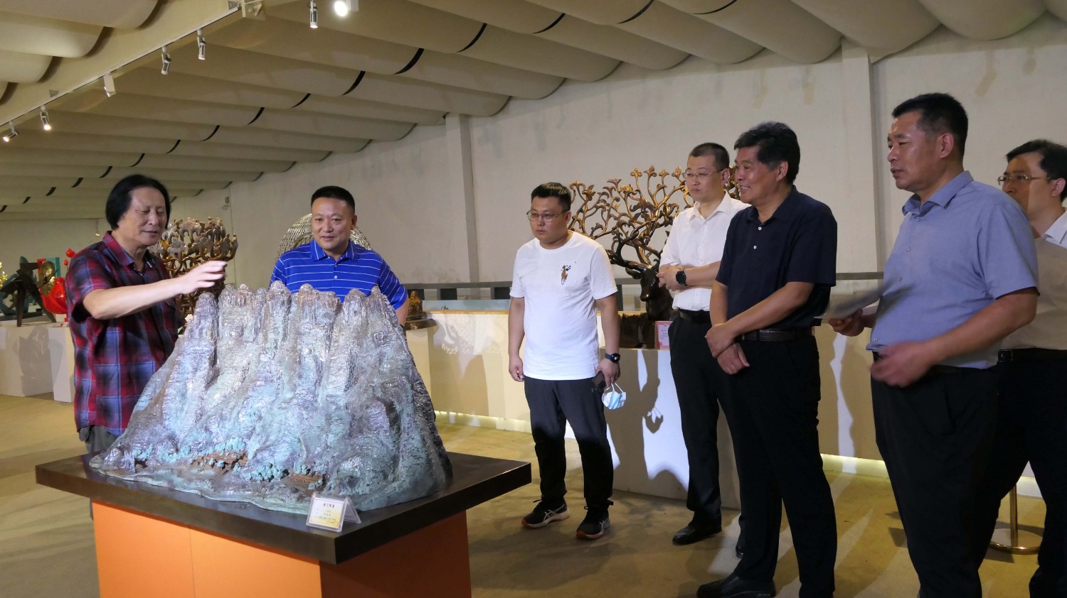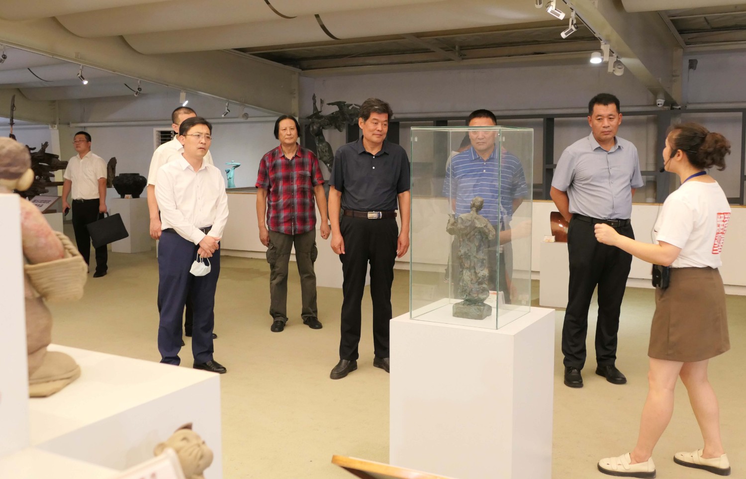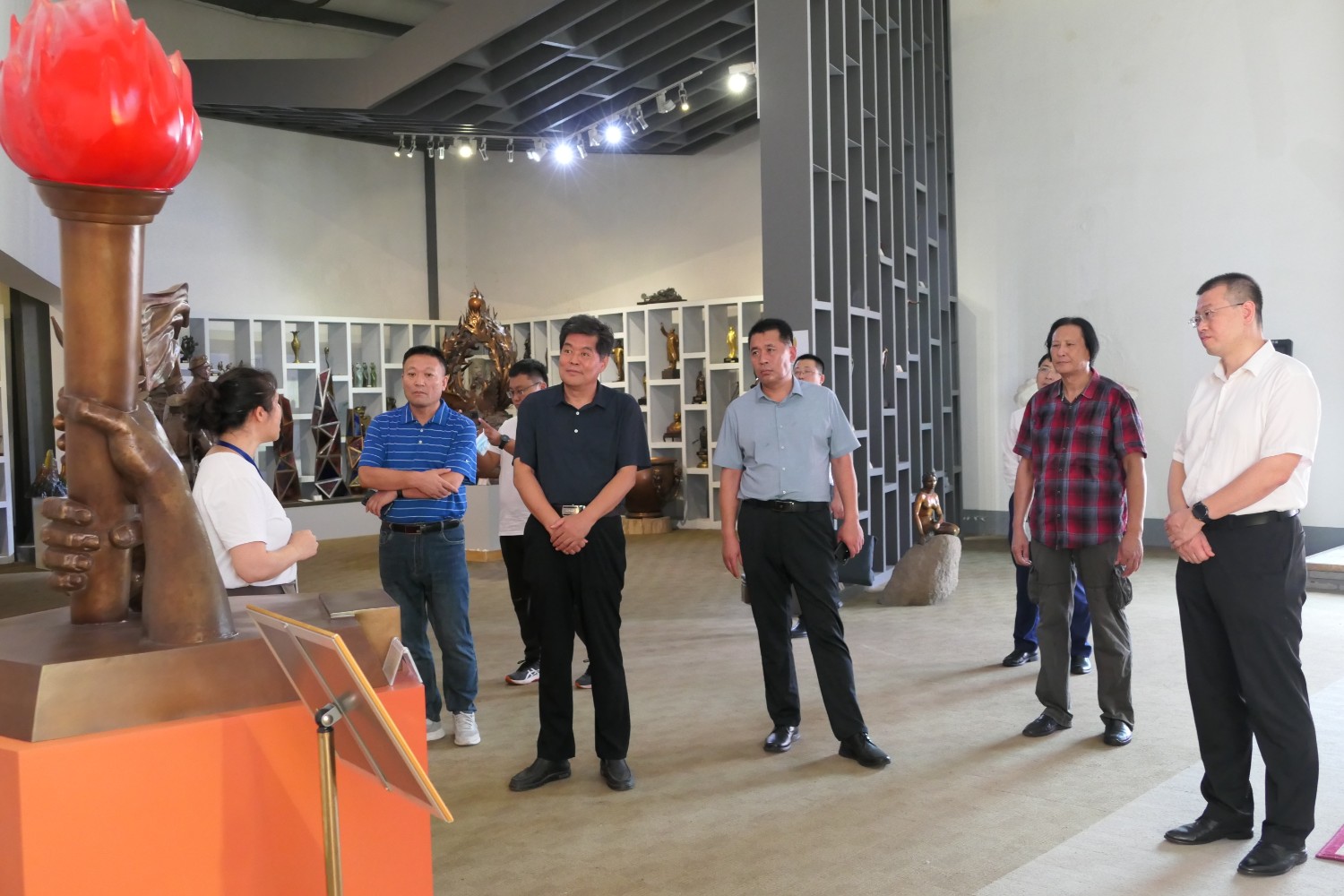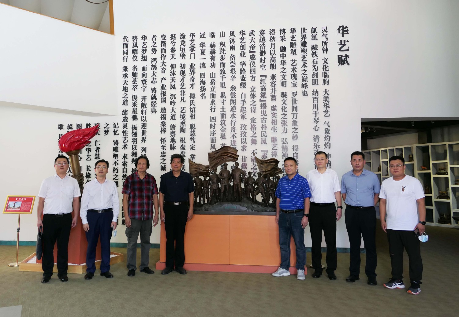 2022年8月5日,山東理工大學黨委委員、教授、淄博市哲學學會會長張子禮,山東理工大學網(wǎng)絡信息中心副主任教授張大富,恒大集團總經(jīng)理沈祥建,淄博市煒軒文化傳媒有限公司總經(jīng)理馮國賓一行,在臨朐縣城關街道辦主任王法國等領導陪同下蒞臨華藝雕塑參觀指導,傅紹相介紹雕塑藝術。