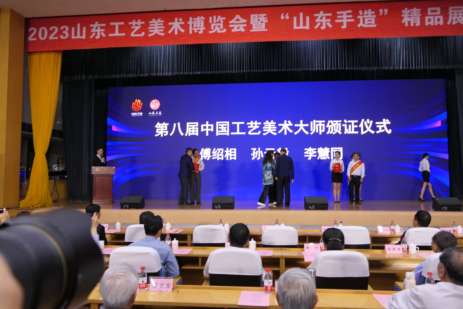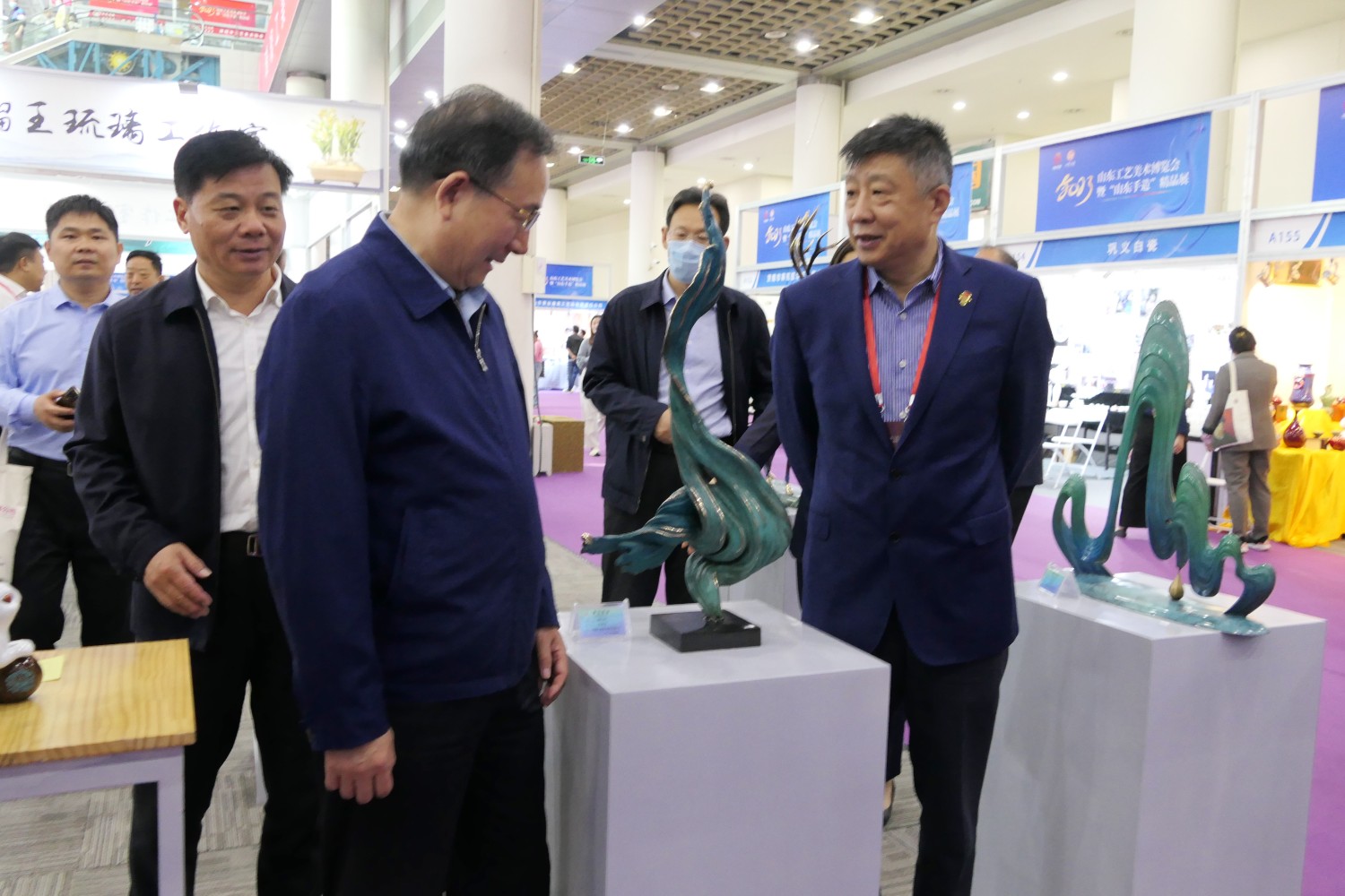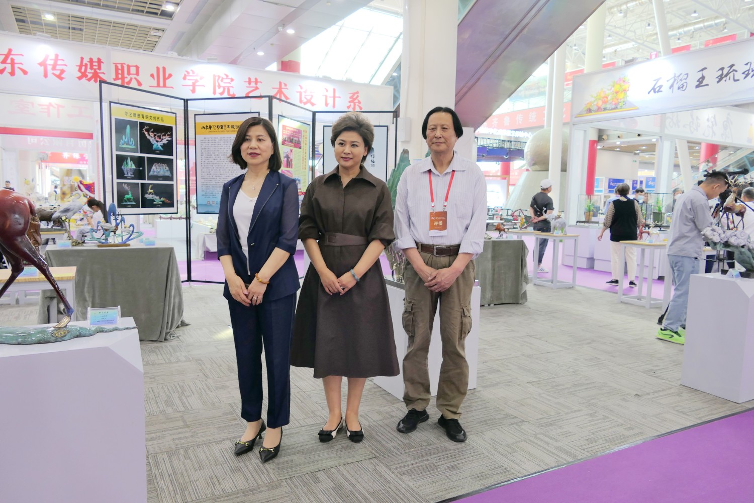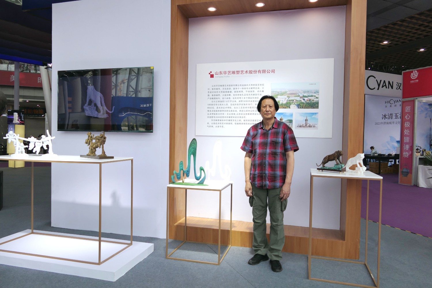 2023-7-192023年5月12日,由山東省工業(yè)和信息化廳、中共山東省委宣傳部、山東省商務廳主辦的“璀璨工美?時尚手造”2023山東工藝美術博覽會暨“山東手造”精品展,在舜耕國際會展中心盛大開幕。開幕式以“山東手造”宣傳片揭開序幕,“四廊一線”文化體驗廊道為主線,展示不同地域文化孕育出的獨特手造產(chǎn)品,以歷史文脈為依托, 展現(xiàn)文化地標風景的同時突出“山東手造”地域特色。歌舞、樂器、合奏……陣陣掌聲,現(xiàn)場還舉辦了“第八屆中國工藝美術大師”傅紹相,孫云毅,李慧同三人的頒證儀式和淄博市文化“兩新”新品發(fā)布等活動,由程守田、才大穎、孫燁、羅新軍、臧耀剛、王哲軍、袁敏等領導嘉賓共同觸發(fā)啟動手印,2023山東工藝美術博覽會暨“山東手造”精品展正式啟動。領導嘉賓巡展,程守田、才大穎、王哲軍、袁敏等領導對中國工藝美術大師傅紹相《一路祥瑞》等作品給予高度評價。此次展會華藝雕塑遴選近30件青銅藝術精品參展,展會期間傅紹相接受山東省“新黃河”頻道記者任曉雯的采訪、山東省電視臺尚士春主任的采訪,并與山東省電視臺主持人毛馨,山東省工藝美術協(xié)會會長袁敏等交流雕塑藝術并合影留念。華藝雕塑傅東總經(jīng)理參展作品《飛天》、傅思涵《福祿祥瑞》、譚炳《鹿伏鶴行》、譚建偉《至圣先師-孔子》、郭寧《呵護》榮獲“荷花杯”山東省工藝美術設計創(chuàng)新大賽金獎;同時傅東總經(jīng)理參展作品《飛天》榮獲“2023山東省工藝美術設計創(chuàng)新獎”。