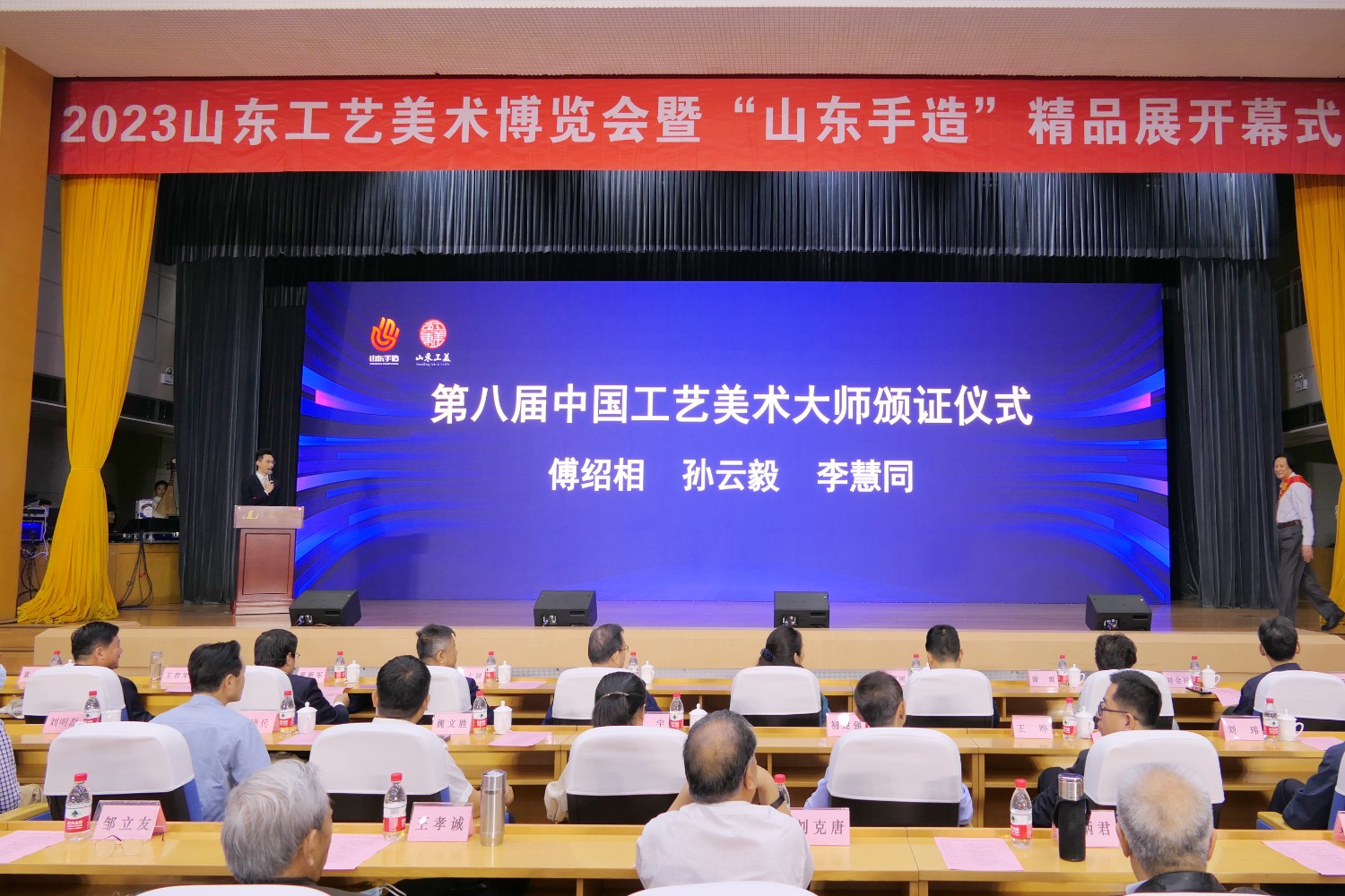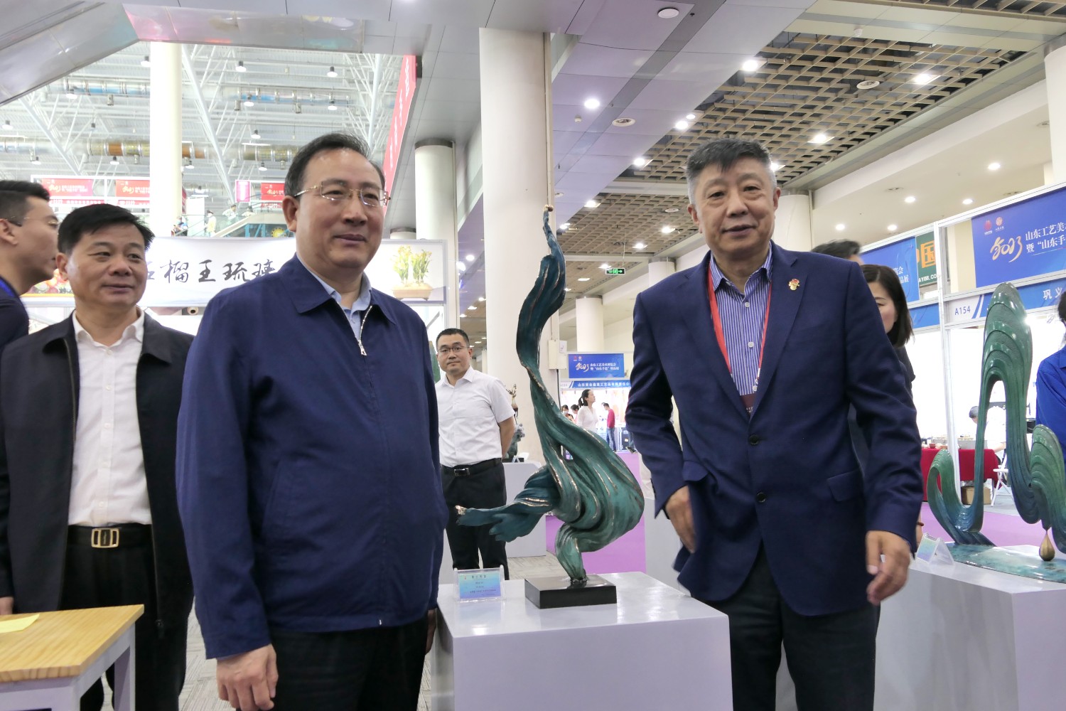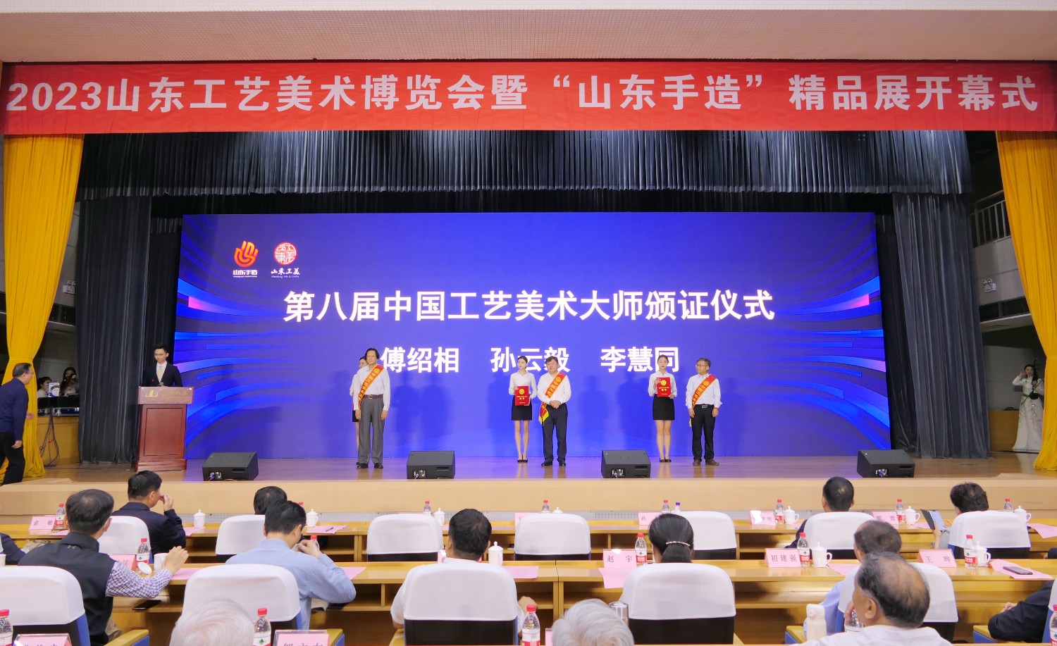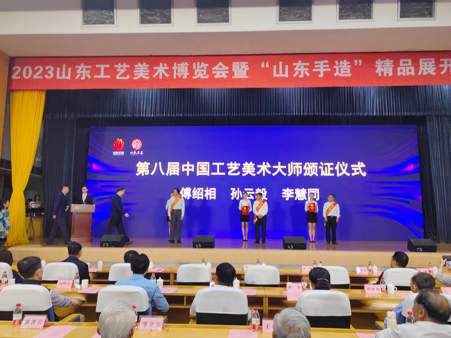 2023-7-192023年5月12日,由山東省工業(yè)和信息化廳、中共山東省委宣傳部、山東省商務廳主辦的“璀璨工美?時尚手造”2023山東工藝美術博覽會暨“山東手造”精品展,在舜耕國際會展中心盛大開幕。開幕式以“山東手造”宣傳片揭開序幕,“四廊一線”文化體驗廊道為主線,展示不同地域文化孕育出的獨特手造產(chǎn)品,以歷史文脈為依托, 展現(xiàn)文化地標風景的同時突出“山東手造”地域特色。歌舞、樂器、合奏……陣陣掌聲,現(xiàn)場還舉辦了“第八屆中國工藝美術大師”傅紹相,孫云毅,李慧同三人的頒證儀式和淄博市文化“兩新”新品發(fā)布等活動,由程守田、才大穎、孫燁、羅新軍、臧耀剛、王哲軍、袁敏等領導嘉賓共同觸發(fā)啟動手印,2023山東工藝美術博覽會暨“山東手造”精品展正式啟動。領導嘉賓巡展,程守田、才大穎、王哲軍、袁敏等領導對中國工藝美術大師傅紹相《一路祥瑞》等作品給予高度評價。此次展會華藝雕塑遴選近30件青銅藝術精品參展,展會期間傅紹相接受山東省“新黃河”頻道記者任曉雯的采訪、山東省電視臺尚士春主任的采訪,并與山東省電視臺主持人毛馨,山東省工藝美術協(xié)會會長袁敏等交流雕塑藝術并合影留念。華藝雕塑傅東總經(jīng)理參展作品《飛天》、傅思涵《福祿祥瑞》、譚炳《鹿伏鶴行》、譚建偉《至圣先師-孔子》、郭寧《呵護》榮獲“荷花杯”山東省工藝美術設計創(chuàng)新大賽金獎;同時傅東總經(jīng)理參展作品《飛天》榮獲“2023山東省工藝美術設計創(chuàng)新獎”。