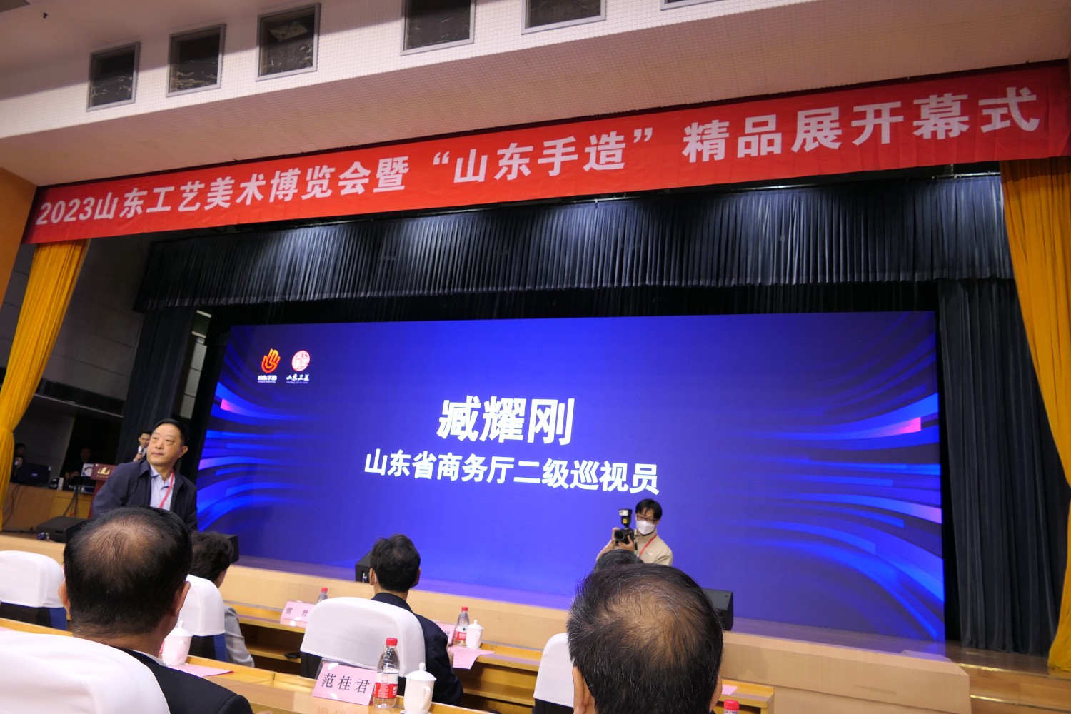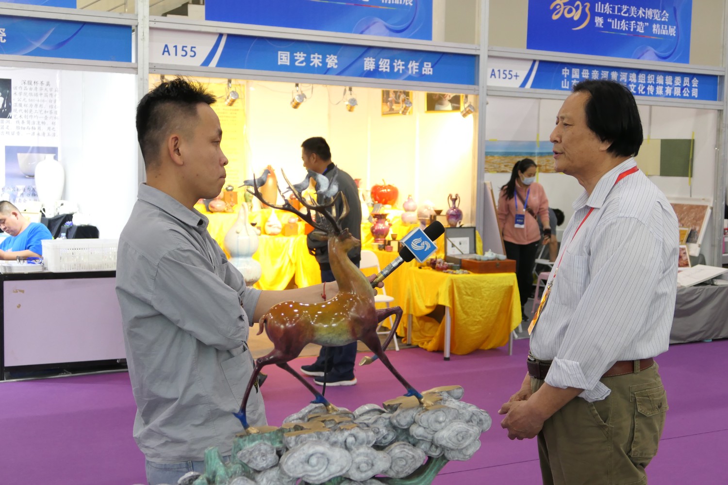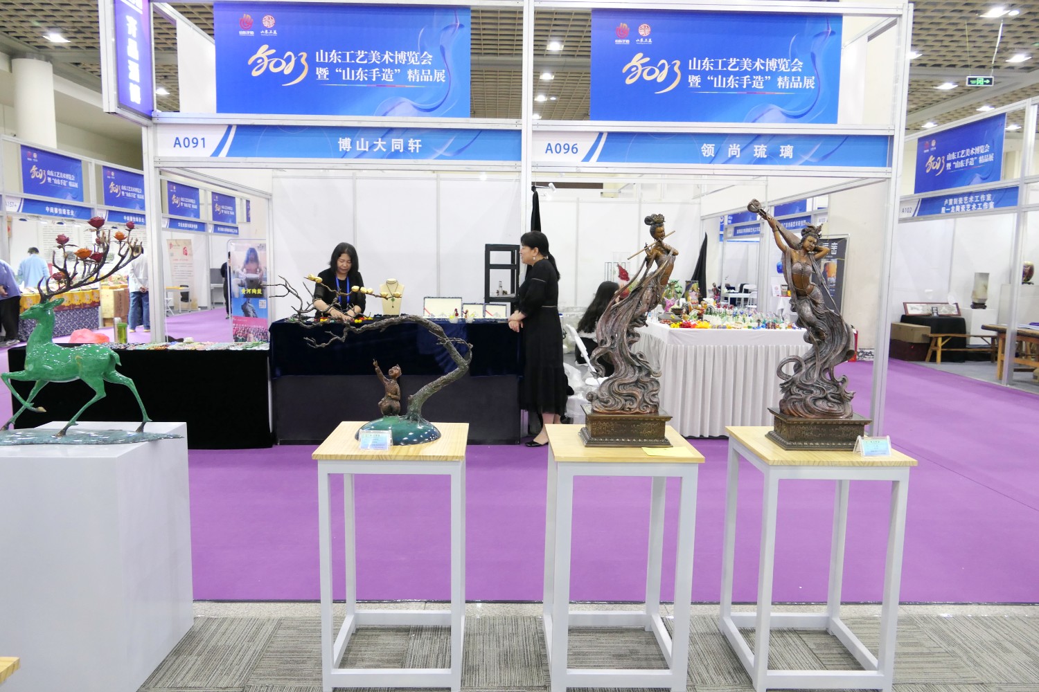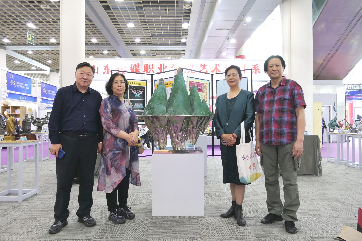 2023-7-192023年5月12日,由山東省工業(yè)和信息化廳、中共山東省委宣傳部、山東省商務廳主辦的“璀璨工美?時尚手造”2023山東工藝美術博覽會暨“山東手造”精品展,在舜耕國際會展中心盛大開幕。開幕式以“山東手造”宣傳片揭開序幕,“四廊一線”文化體驗廊道為主線,展示不同地域文化孕育出的獨特手造產(chǎn)品,以歷史文脈為依托, 展現(xiàn)文化地標風景的同時突出“山東手造”地域特色。歌舞、樂器、合奏……陣陣掌聲,現(xiàn)場還舉辦了“第八屆中國工藝美術大師”傅紹相,孫云毅,李慧同三人的頒證儀式和淄博市文化“兩新”新品發(fā)布等活動,由程守田、才大穎、孫燁、羅新軍、臧耀剛、王哲軍、袁敏等領導嘉賓共同觸發(fā)啟動手印,2023山東工藝美術博覽會暨“山東手造”精品展正式啟動。領導嘉賓巡展,程守田、才大穎、王哲軍、袁敏等領導對中國工藝美術大師傅紹相《一路祥瑞》等作品給予高度評價。此次展會華藝雕塑遴選近30件青銅藝術精品參展,展會期間傅紹相接受山東省“新黃河”頻道記者任曉雯的采訪、山東省電視臺尚士春主任的采訪,并與山東省電視臺主持人毛馨,山東省工藝美術協(xié)會會長袁敏等交流雕塑藝術并合影留念。華藝雕塑傅東總經(jīng)理參展作品《飛天》、傅思涵《福祿祥瑞》、譚炳《鹿伏鶴行》、譚建偉《至圣先師-孔子》、郭寧《呵護》榮獲“荷花杯”山東省工藝美術設計創(chuàng)新大賽金獎;同時傅東總經(jīng)理參展作品《飛天》榮獲“2023山東省工藝美術設計創(chuàng)新獎”。