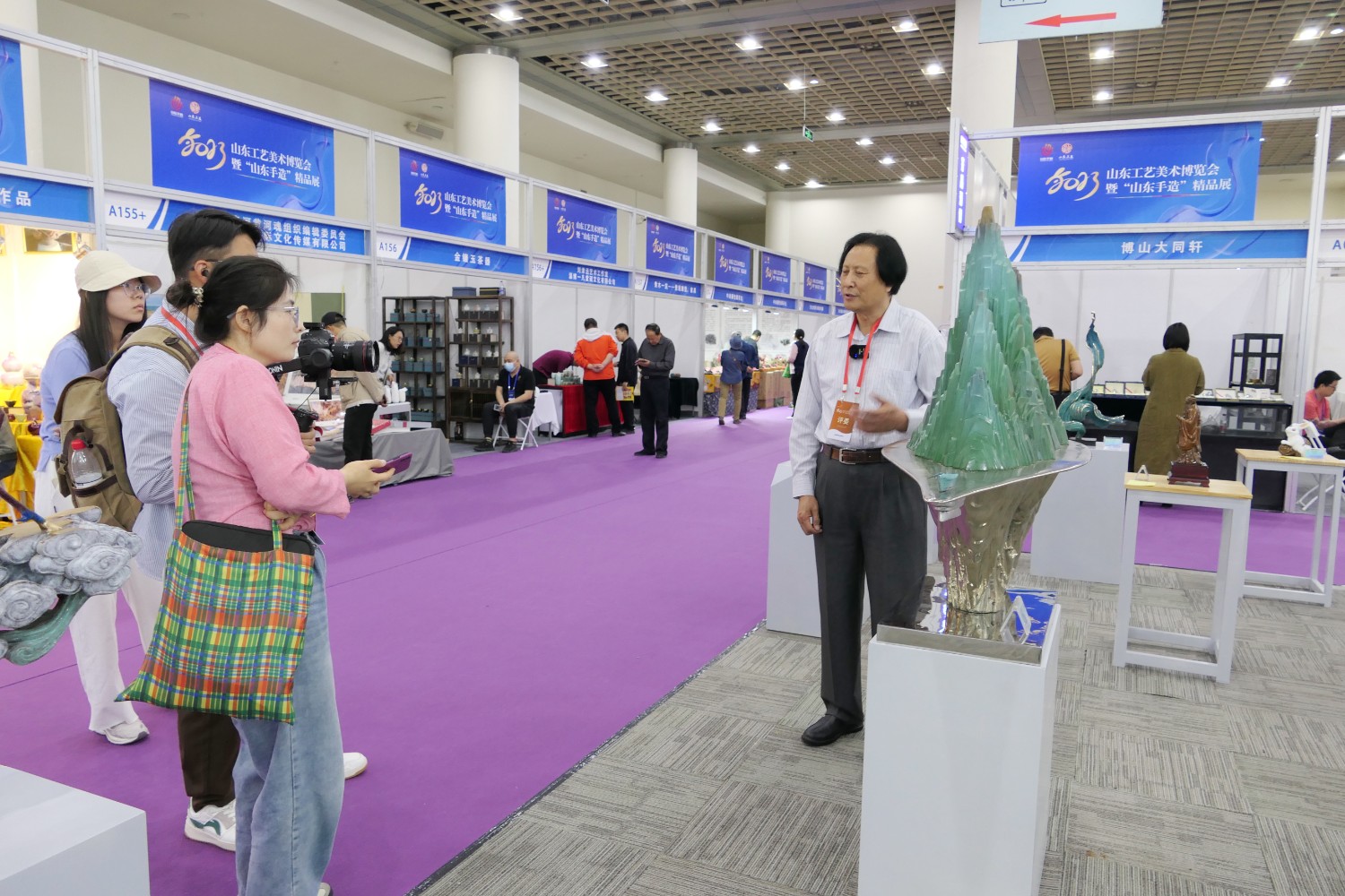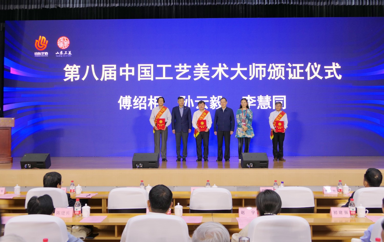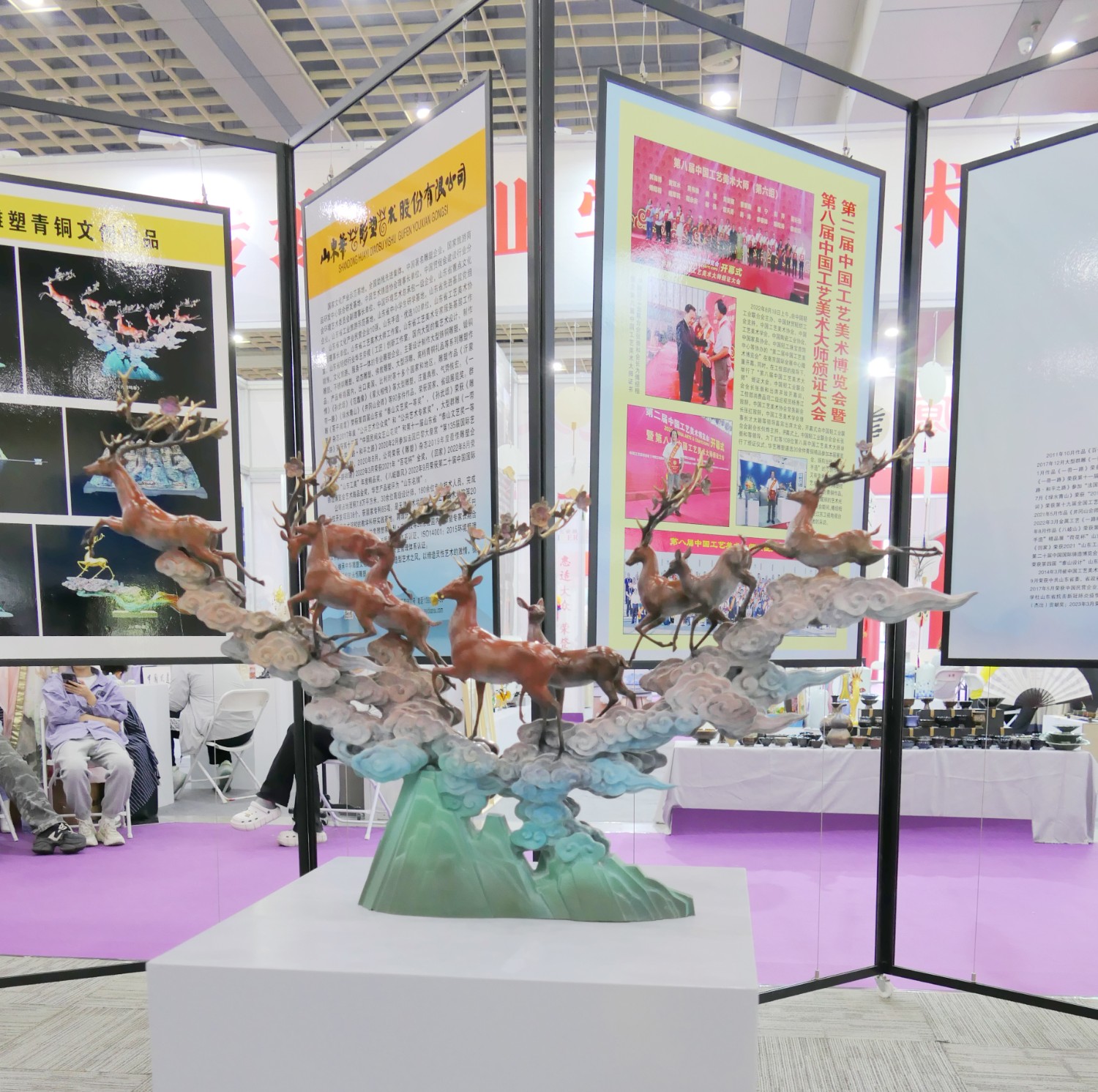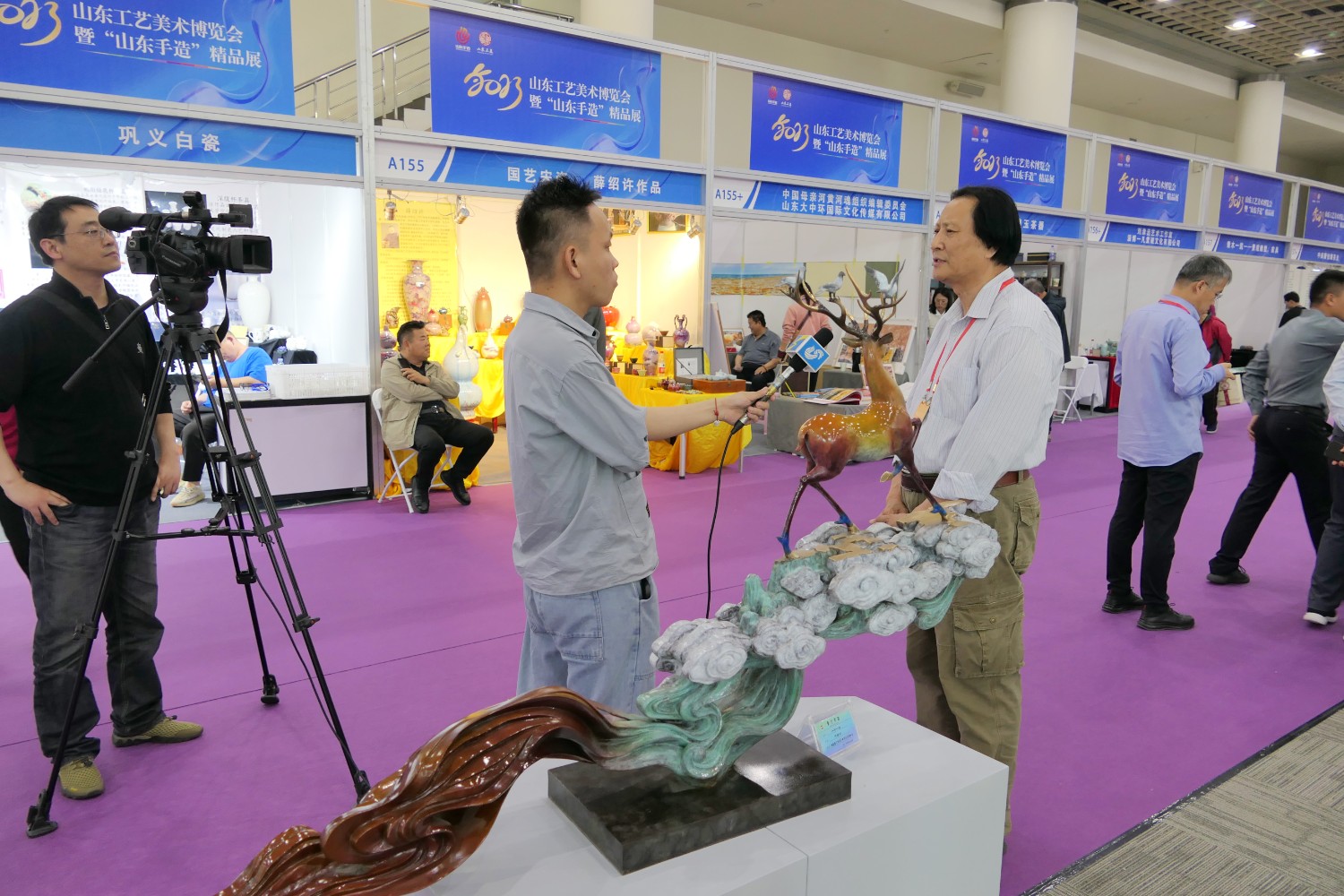 2023-7-192023年5月12日,由山東省工業(yè)和信息化廳、中共山東省委宣傳部、山東省商務廳主辦的“璀璨工美?時尚手造”2023山東工藝美術博覽會暨“山東手造”精品展,在舜耕國際會展中心盛大開幕。開幕式以“山東手造”宣傳片揭開序幕,“四廊一線”文化體驗廊道為主線,展示不同地域文化孕育出的獨特手造產(chǎn)品,以歷史文脈為依托, 展現(xiàn)文化地標風景的同時突出“山東手造”地域特色。歌舞、樂器、合奏……陣陣掌聲,現(xiàn)場還舉辦了“第八屆中國工藝美術大師”傅紹相,孫云毅,李慧同三人的頒證儀式和淄博市文化“兩新”新品發(fā)布等活動,由程守田、才大穎、孫燁、羅新軍、臧耀剛、王哲軍、袁敏等領導嘉賓共同觸發(fā)啟動手印,2023山東工藝美術博覽會暨“山東手造”精品展正式啟動。領導嘉賓巡展,程守田、才大穎、王哲軍、袁敏等領導對中國工藝美術大師傅紹相《一路祥瑞》等作品給予高度評價。此次展會華藝雕塑遴選近30件青銅藝術精品參展,展會期間傅紹相接受山東省“新黃河”頻道記者任曉雯的采訪、山東省電視臺尚士春主任的采訪,并與山東省電視臺主持人毛馨,山東省工藝美術協(xié)會會長袁敏等交流雕塑藝術并合影留念。華藝雕塑傅東總經(jīng)理參展作品《飛天》、傅思涵《福祿祥瑞》、譚炳《鹿伏鶴行》、譚建偉《至圣先師-孔子》、郭寧《呵護》榮獲“荷花杯”山東省工藝美術設計創(chuàng)新大賽金獎;同時傅東總經(jīng)理參展作品《飛天》榮獲“2023山東省工藝美術設計創(chuàng)新獎”。