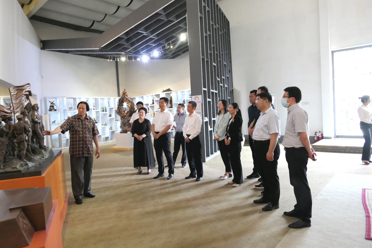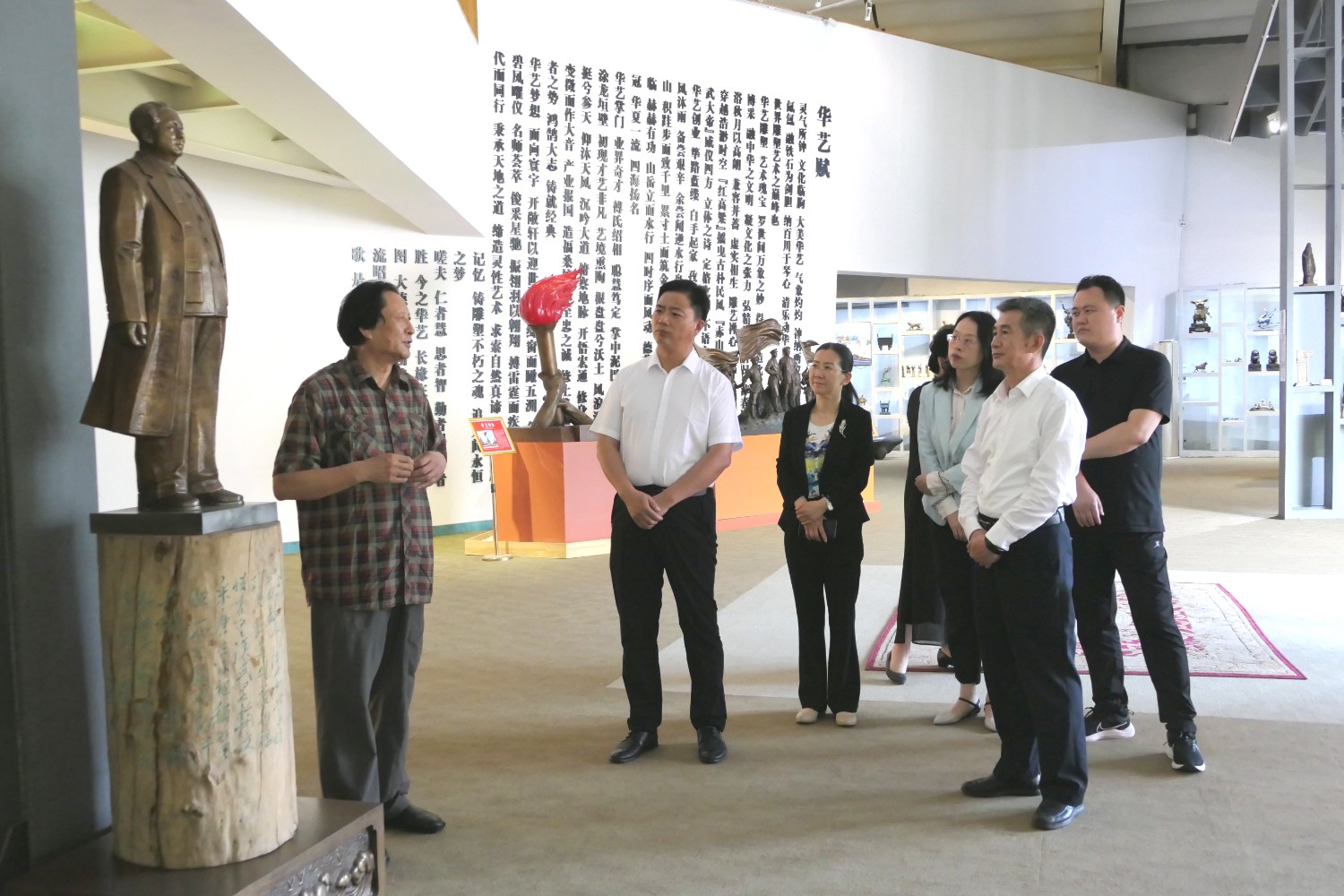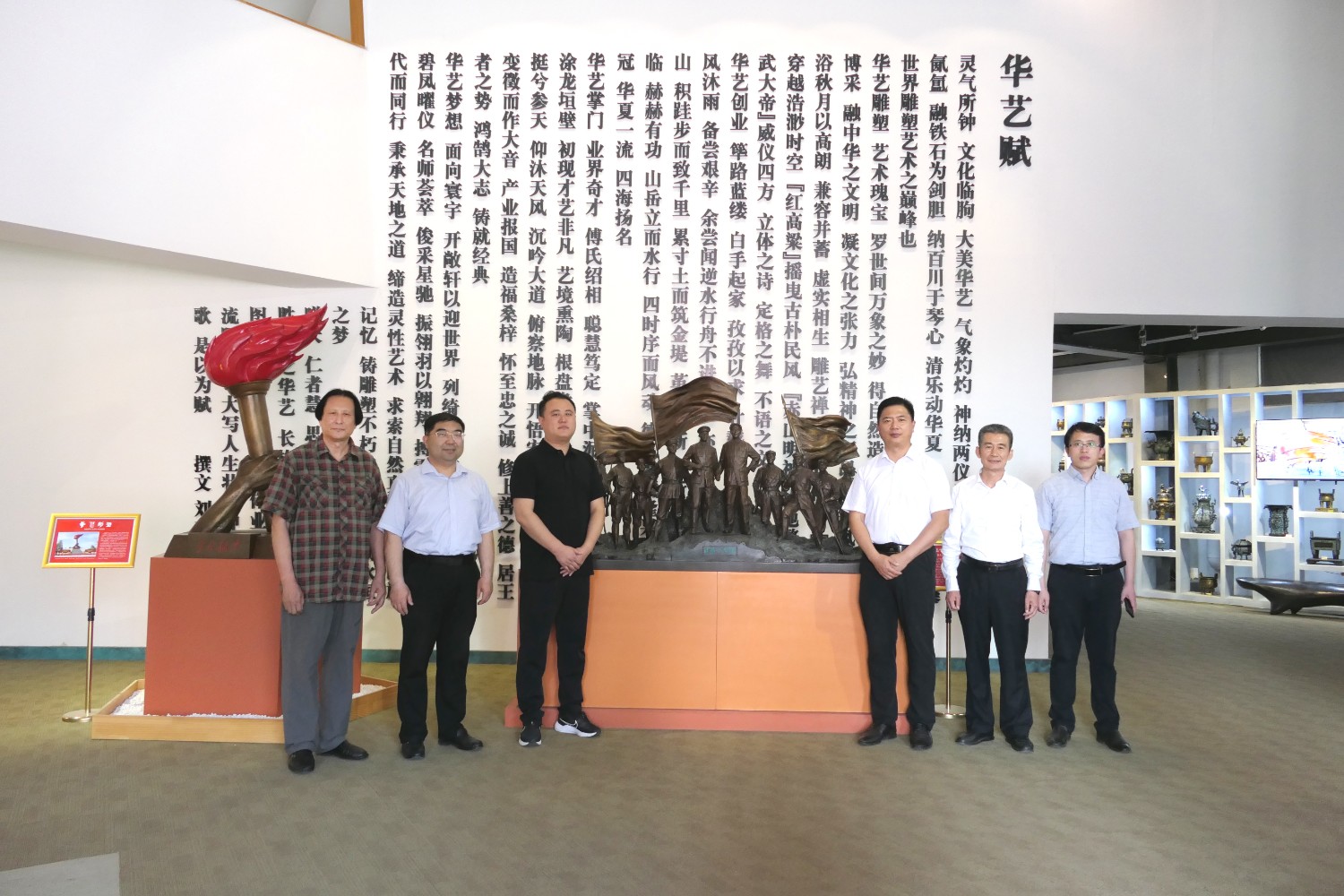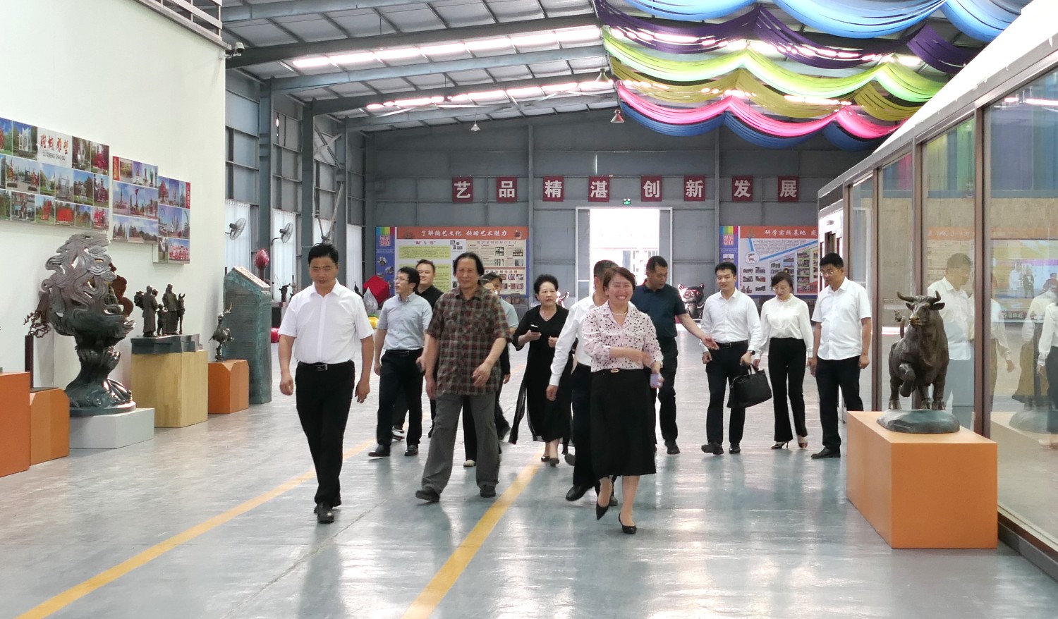 2023年5月18日,山東省文旅廳二級調研員田忠民處長在濰坊市委宣傳部副部長李傳江的陪同下,來臨朐開展調研工作活動,并蒞臨華藝雕塑參觀指導,臨朐縣委劉艷芳書記,縣宣傳部長劉瑩有,縣文旅局局長朱占花,城管街辦王法周等領導陪同活動,傅紹相介紹雕塑藝術。