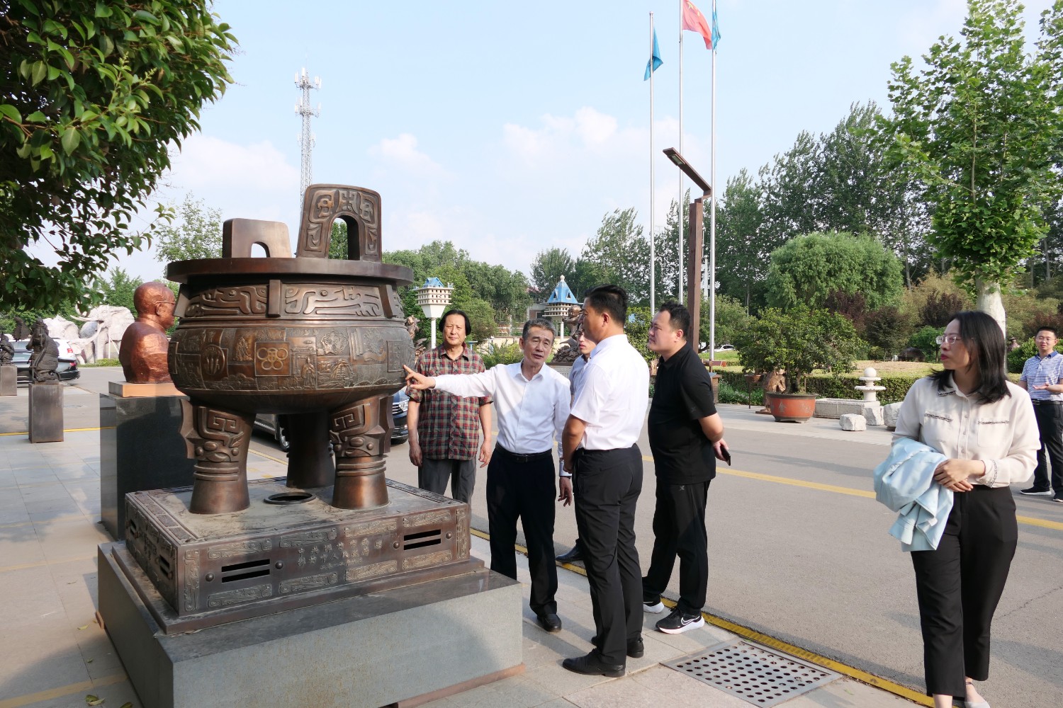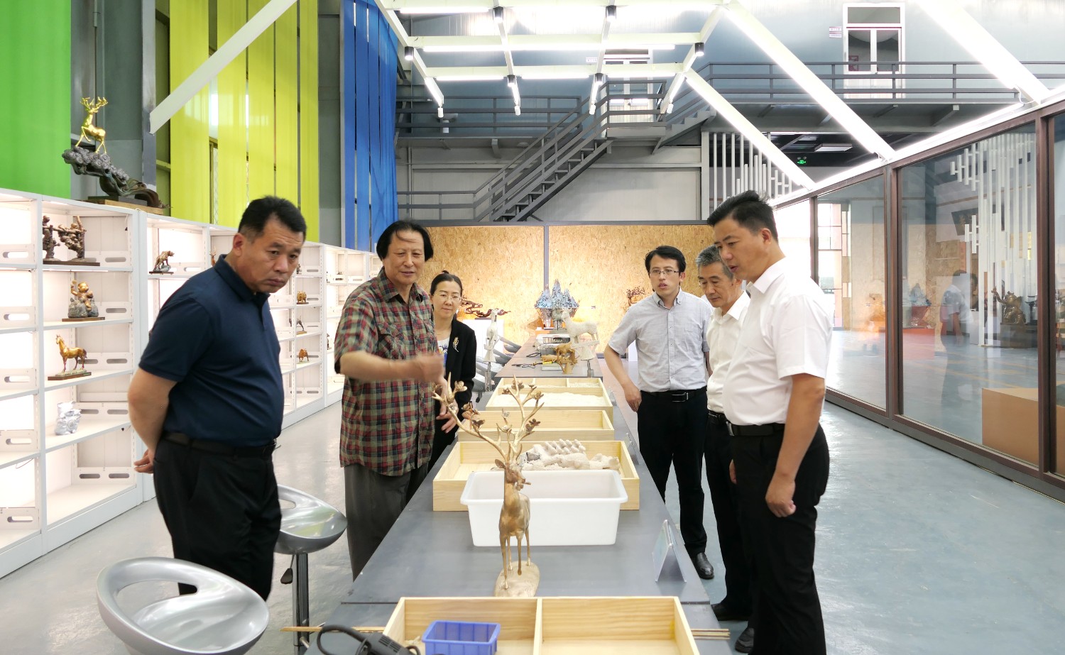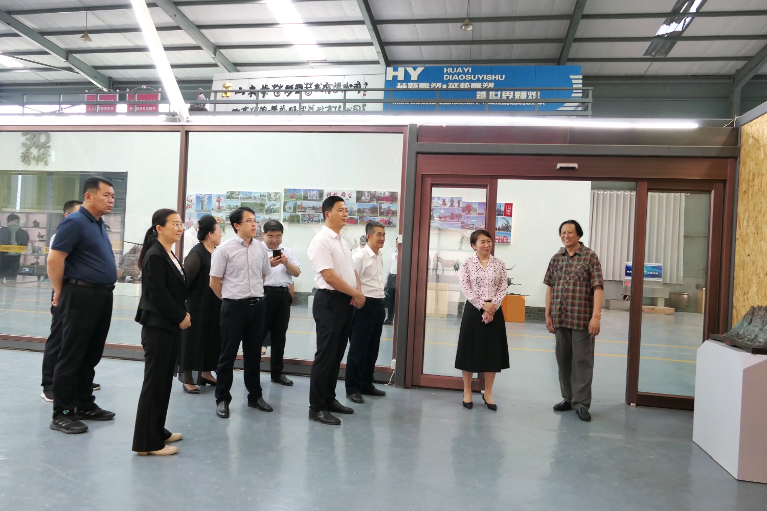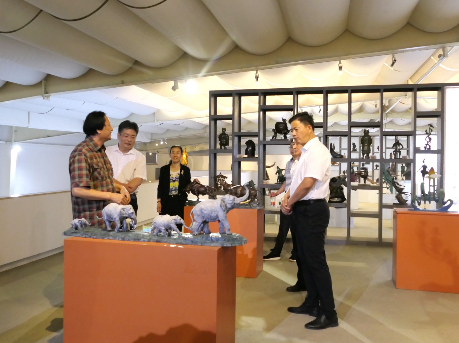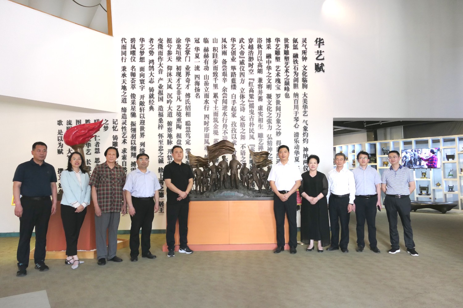 2023年5月18日,山東省文旅廳二級調研員田忠民處長在濰坊市委宣傳部副部長李傳江的陪同下,來臨朐開展調研工作活動,并蒞臨華藝雕塑參觀指導,臨朐縣委劉艷芳書記,縣宣傳部長劉瑩有,縣文旅局局長朱占花,城管街辦王法周等領導陪同活動,傅紹相介紹雕塑藝術。
