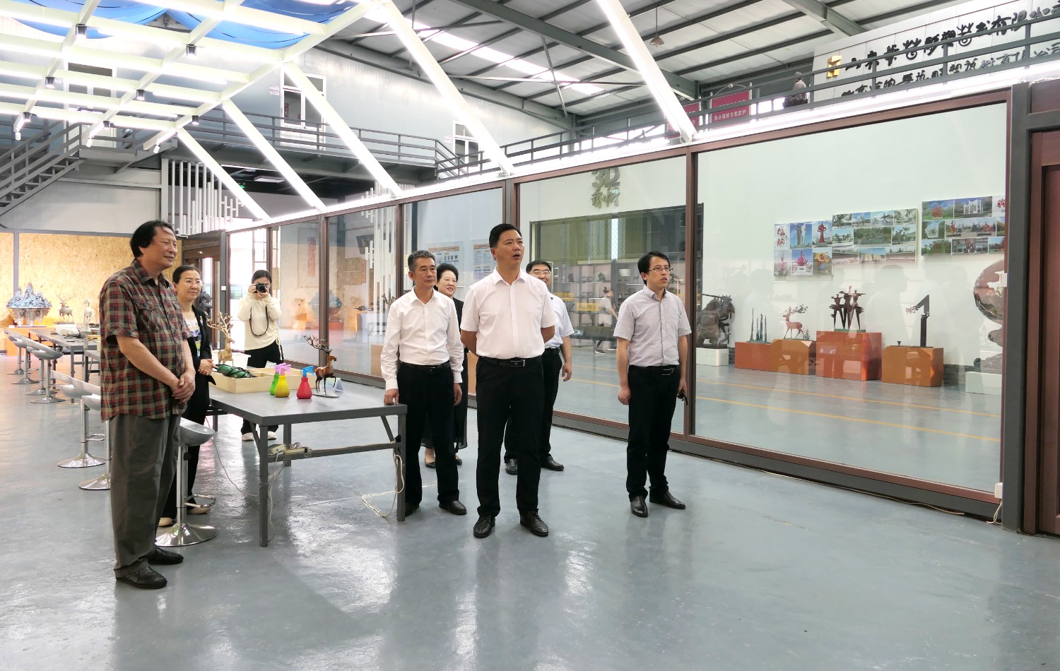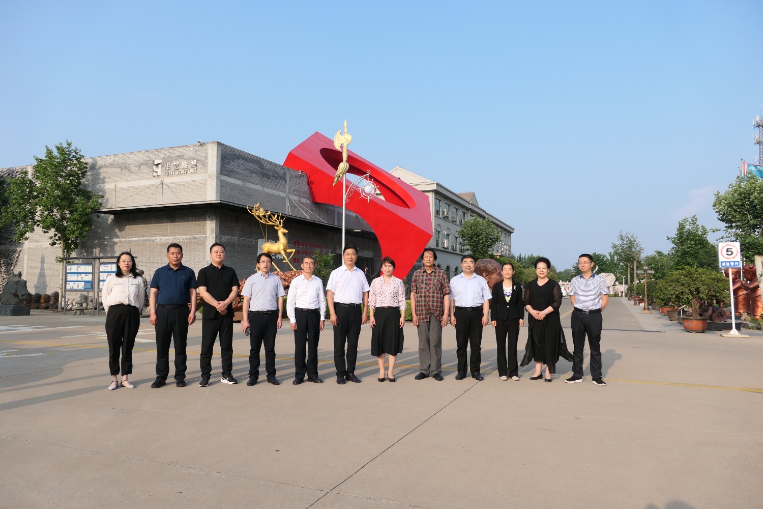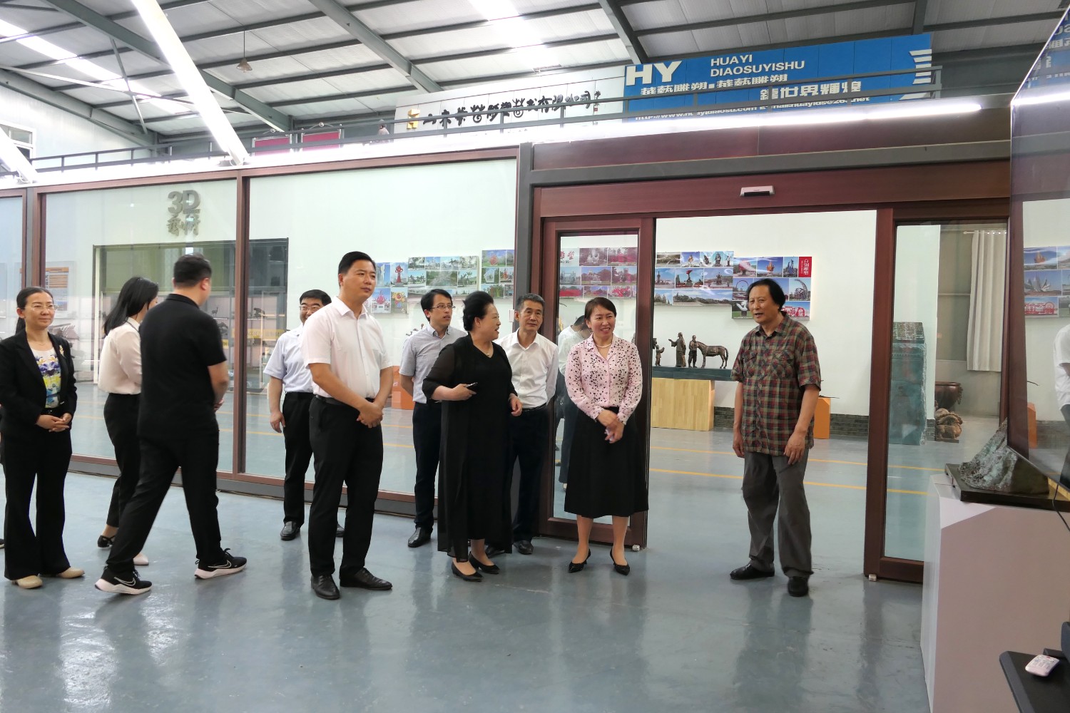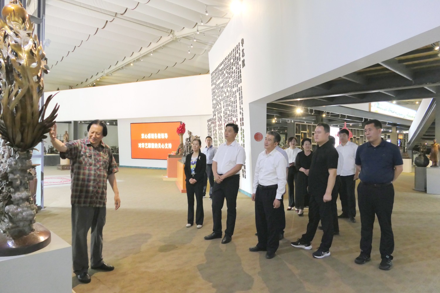 2023年5月18日,山東省文旅廳二級調研員田忠民處長在濰坊市委宣傳部副部長李傳江的陪同下,來臨朐開展調研工作活動,并蒞臨華藝雕塑參觀指導,臨朐縣委劉艷芳書記,縣宣傳部長劉瑩有,縣文旅局局長朱占花,城管街辦王法周等領導陪同活動,傅紹相介紹雕塑藝術。