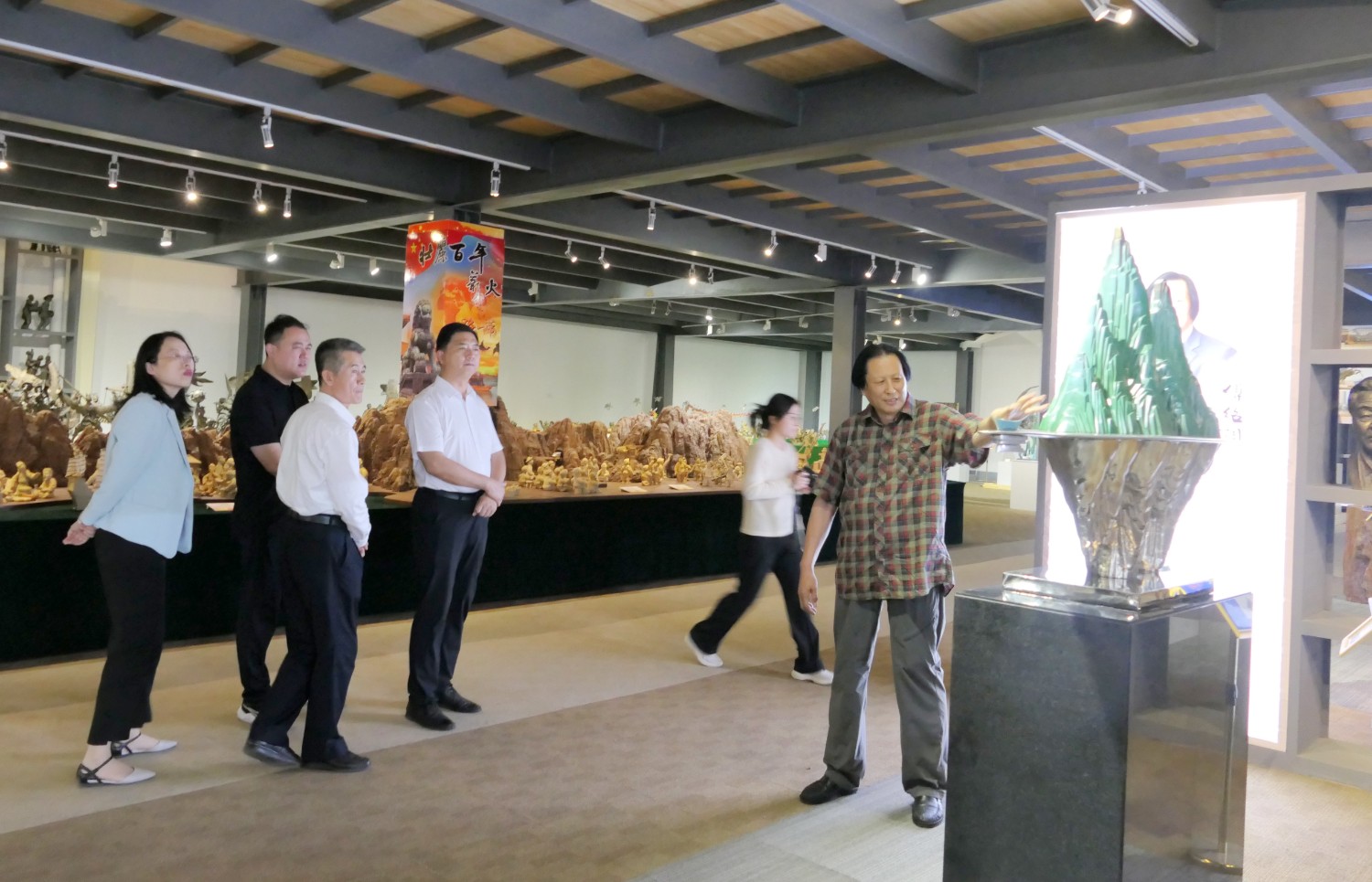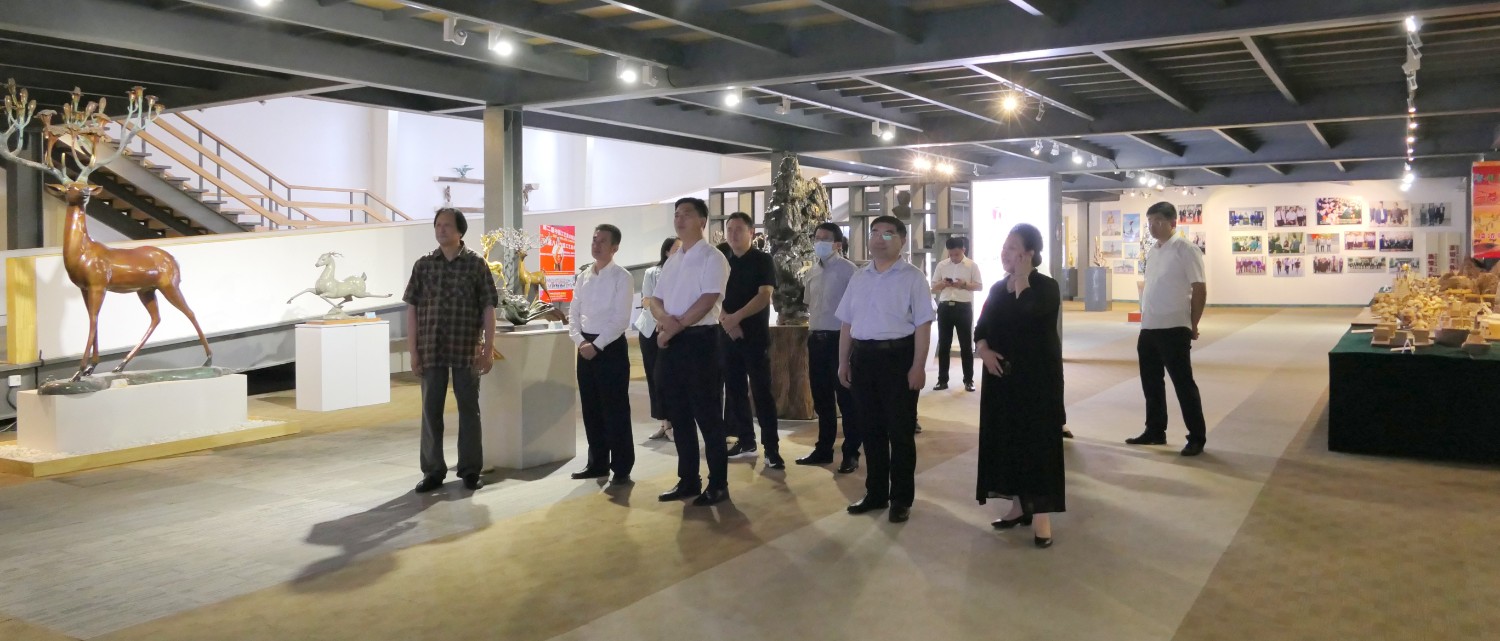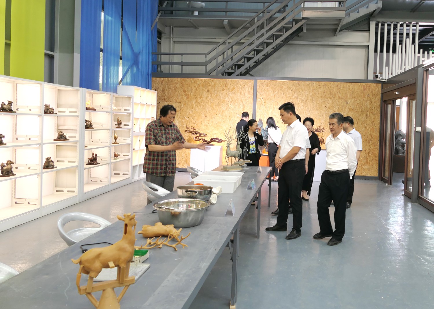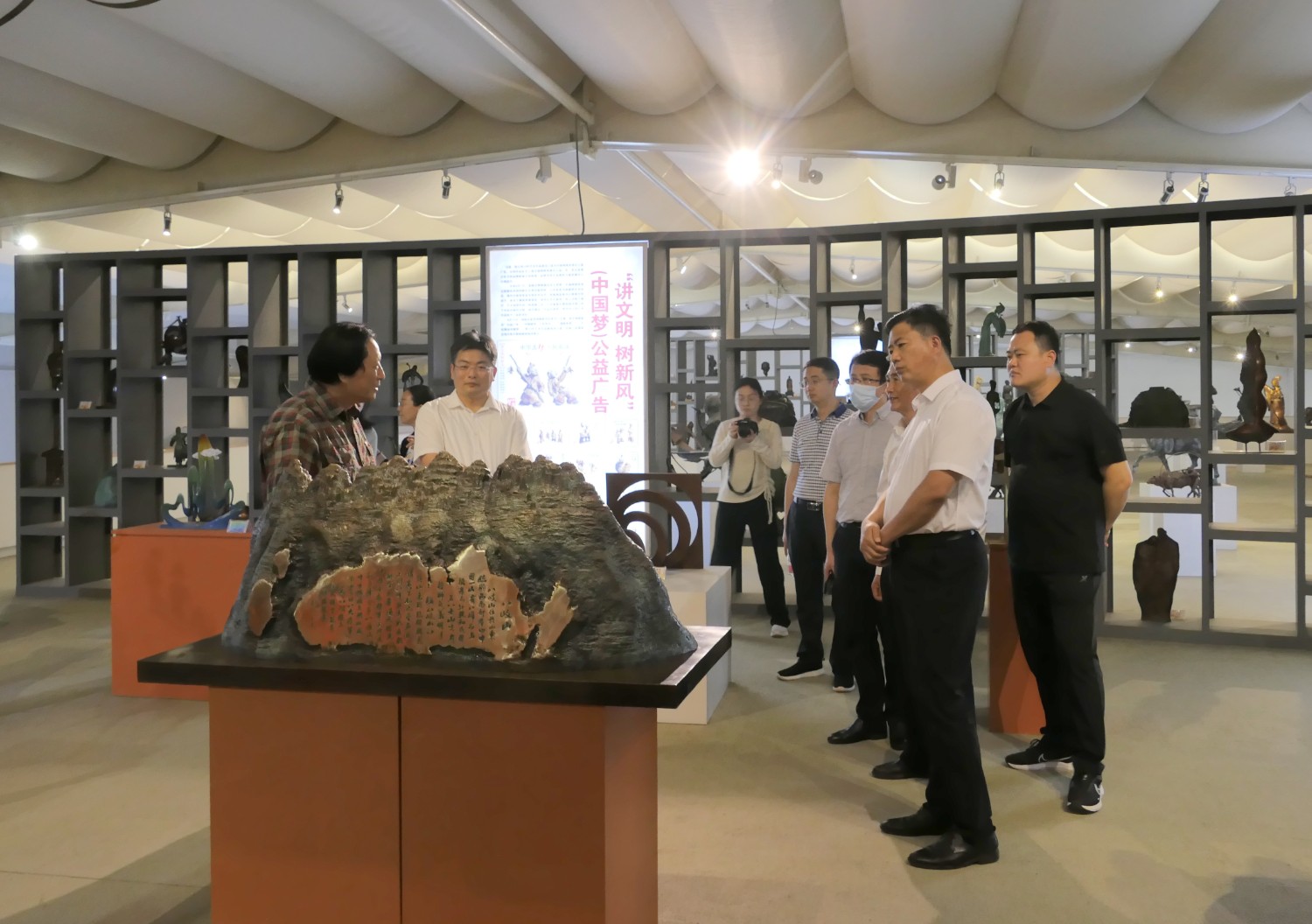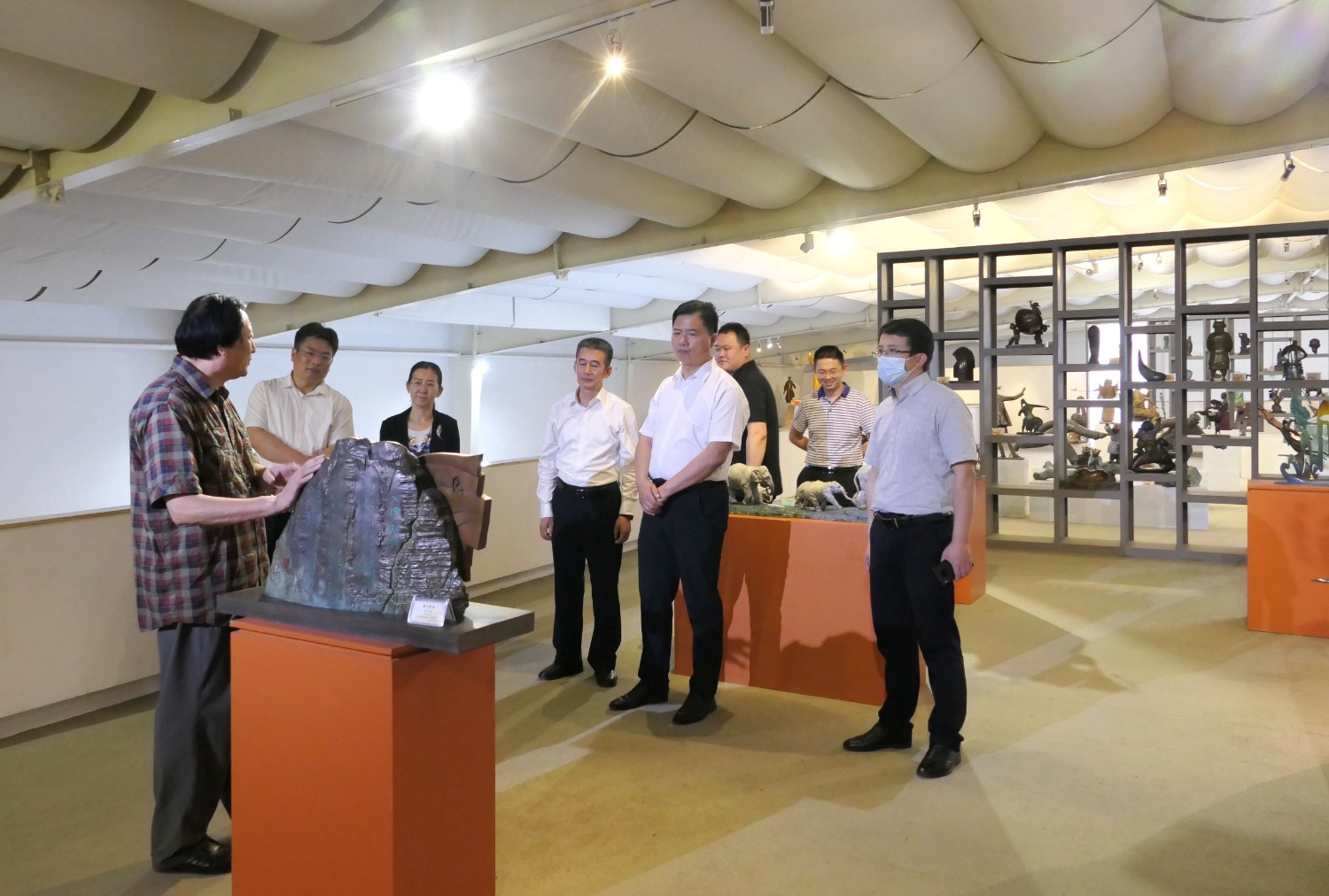 2023年5月18日,山東省文旅廳二級調研員田忠民處長在濰坊市委宣傳部副部長李傳江的陪同下,來臨朐開展調研工作活動,并蒞臨華藝雕塑參觀指導,臨朐縣委劉艷芳書記,縣宣傳部長劉瑩有,縣文旅局局長朱占花,城管街辦王法周等領導陪同活動,傅紹相介紹雕塑藝術。
