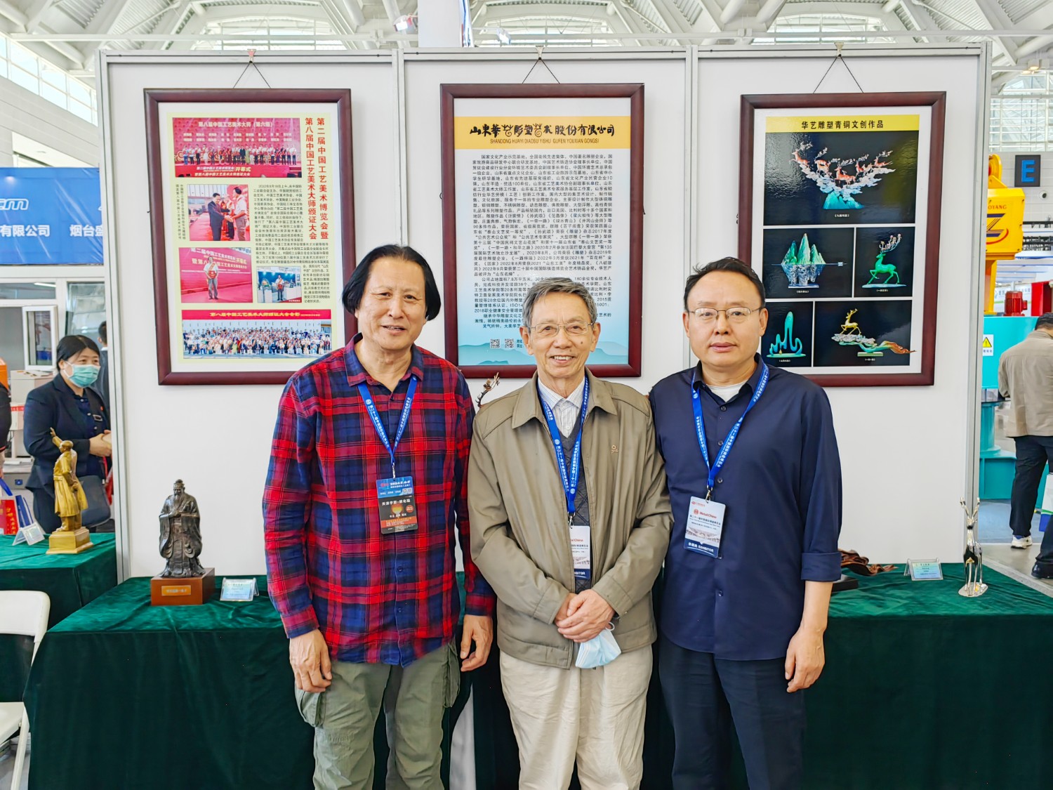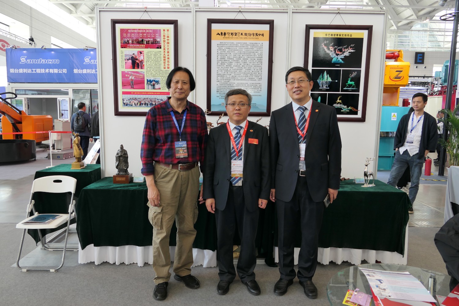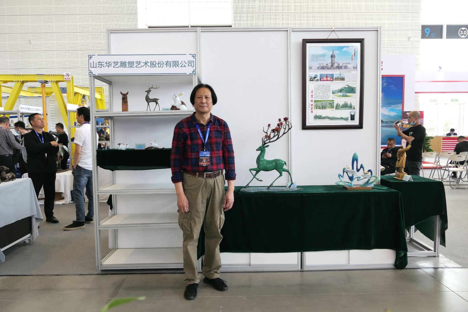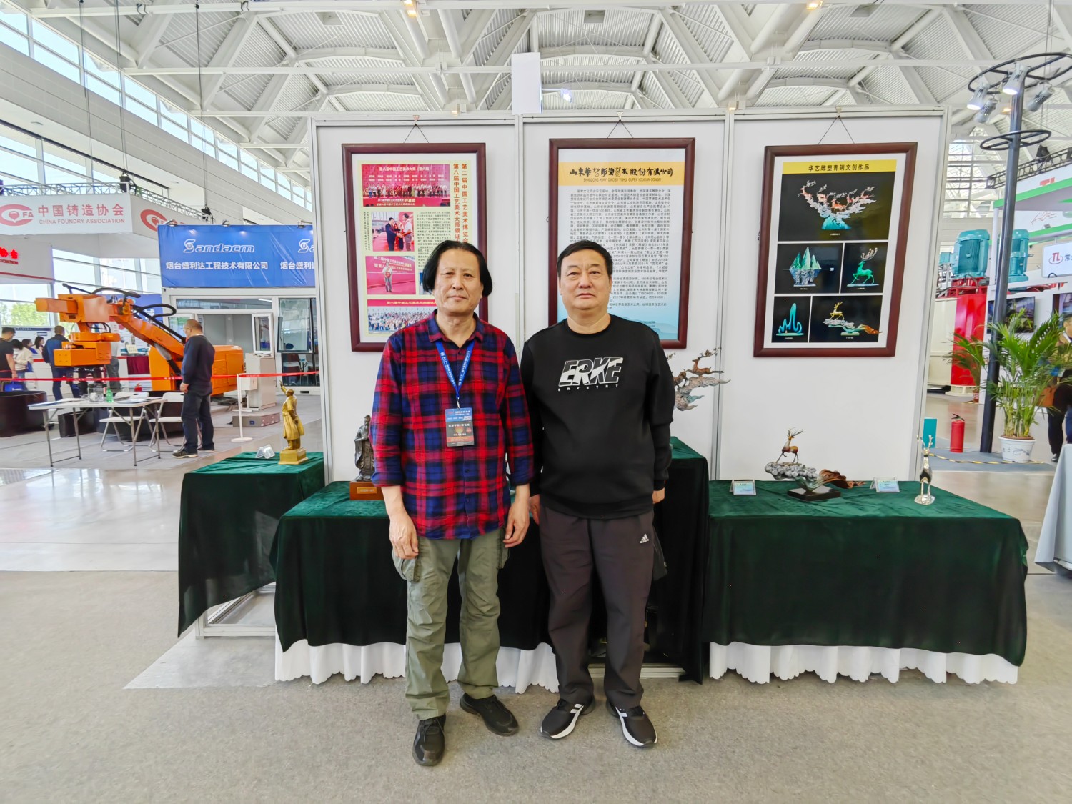 華藝雕塑遴選十二件青銅雕塑作品在博覽會(huì)“鑄造文化展區(qū)”參加展覽,精湛的雕塑藝術(shù),精美的青銅作品,贏得了領(lǐng)導(dǎo)和嘉賓的高度贊揚(yáng)。中國工藝美術(shù)大師傅紹相作品《九鹿鳴春》榮獲第二十一屆中國國際鑄造博覽會(huì)“藝術(shù)鑄品”金獎(jiǎng)。展會(huì)期間,傅紹相去天津美術(shù)學(xué)院拜訪雕塑系副主任趙展教授并進(jìn)行雕塑藝術(shù)交流,并前往益德成(天津)聞藥文化發(fā)展有限公司拜訪馬衛(wèi)東董事長、張松貞總經(jīng)理,并進(jìn)行友好的藝術(shù)交流。