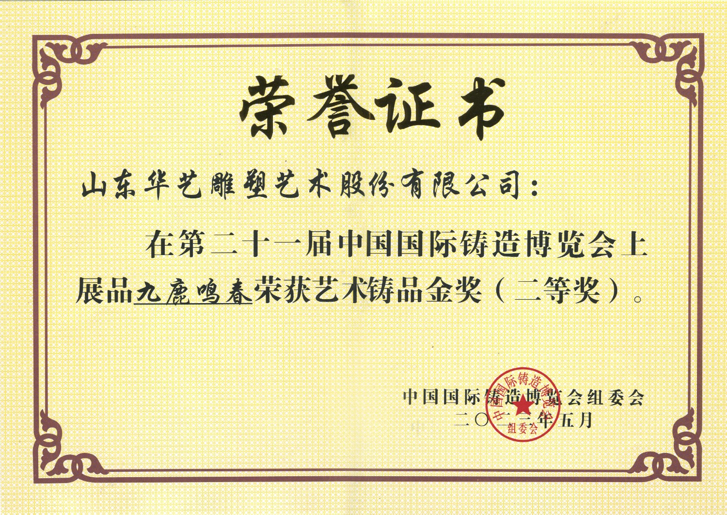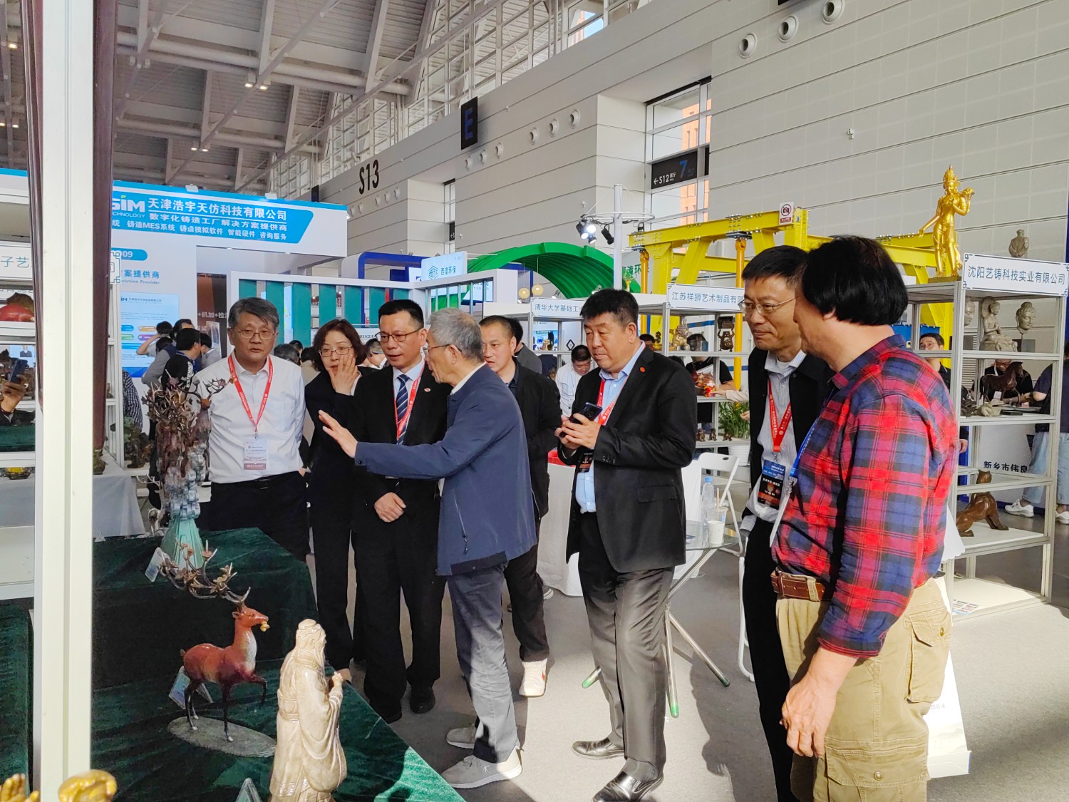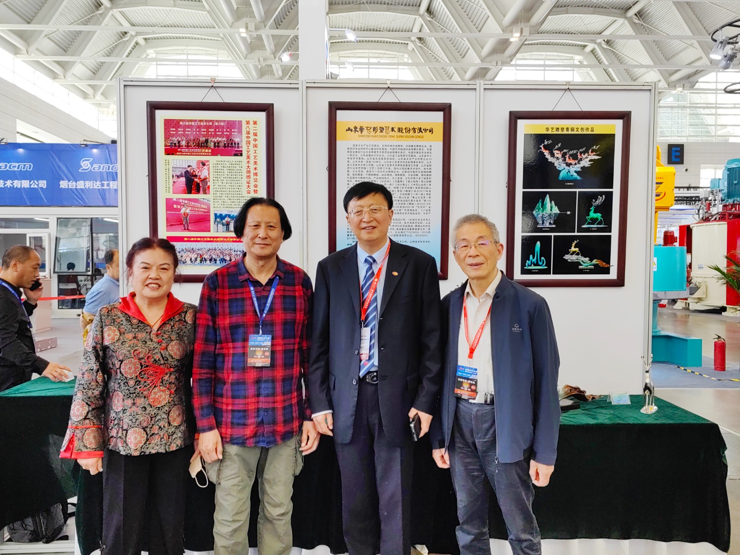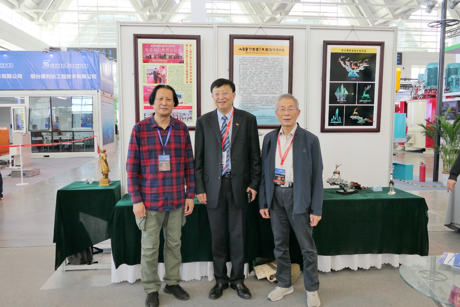 華藝雕塑遴選十二件青銅雕塑作品在博覽會(huì)“鑄造文化展區(qū)”參加展覽,精湛的雕塑藝術(shù),精美的青銅作品,贏得了領(lǐng)導(dǎo)和嘉賓的高度贊揚(yáng)。中國工藝美術(shù)大師傅紹相作品《九鹿鳴春》榮獲第二十一屆中國國際鑄造博覽會(huì)“藝術(shù)鑄品”金獎(jiǎng)。展會(huì)期間,傅紹相去天津美術(shù)學(xué)院拜訪雕塑系副主任趙展教授并進(jìn)行雕塑藝術(shù)交流,并前往益德成(天津)聞藥文化發(fā)展有限公司拜訪馬衛(wèi)東董事長、張松貞總經(jīng)理,并進(jìn)行友好的藝術(shù)交流。