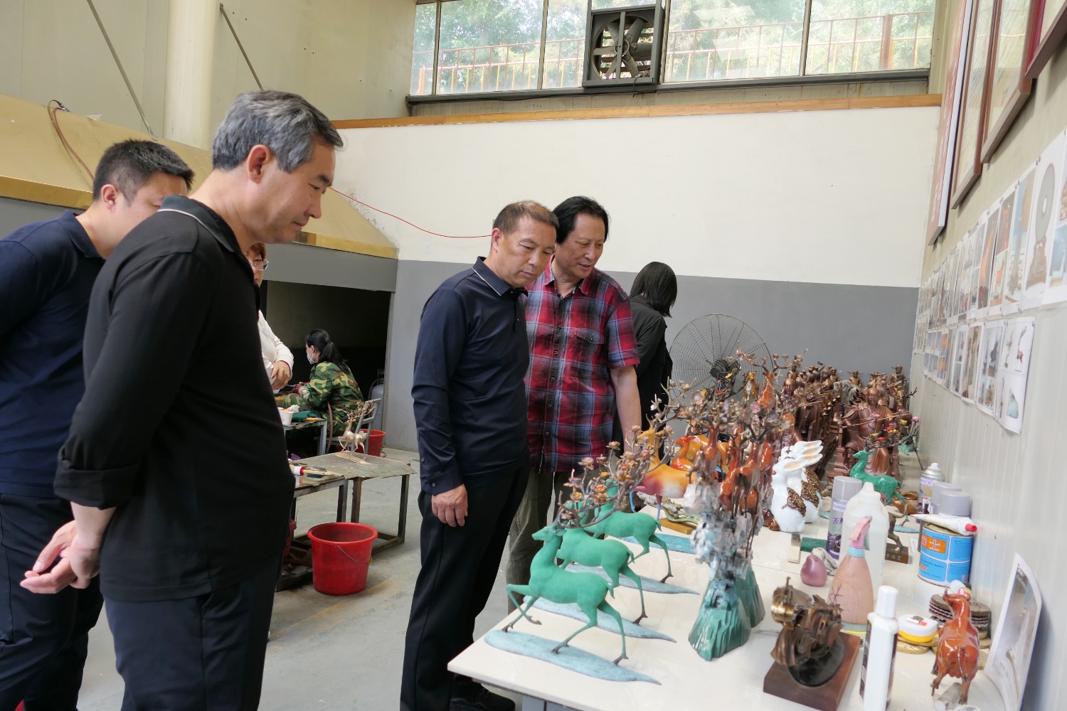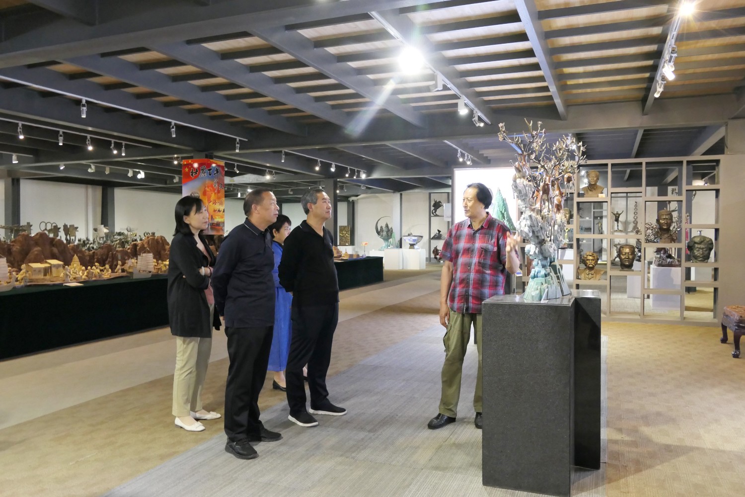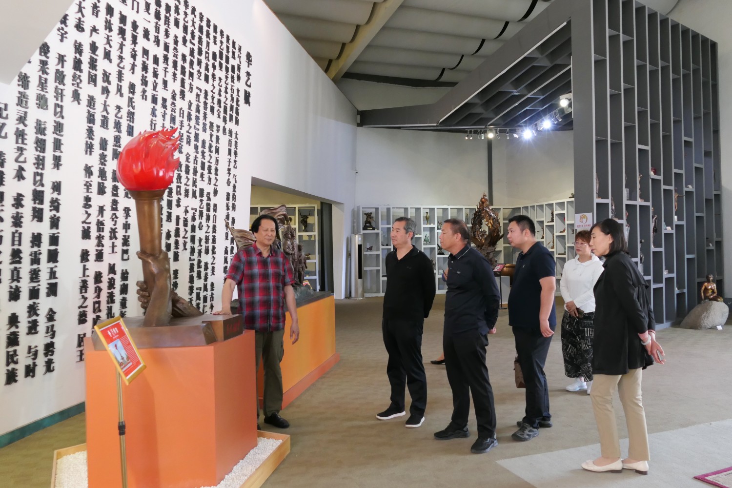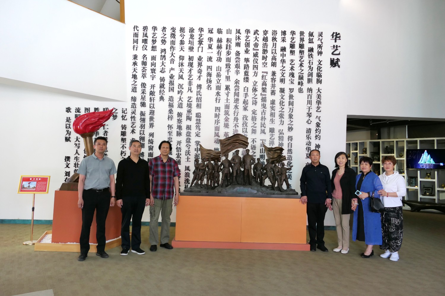 2023年5月19日,濰坊市濱海區(qū)管委會一級專員李樹森,高密朋友賀永東總經(jīng)理等嘉賓,蒞臨華藝雕塑參觀指導(dǎo),傅紹相介紹雕塑藝術(shù)。