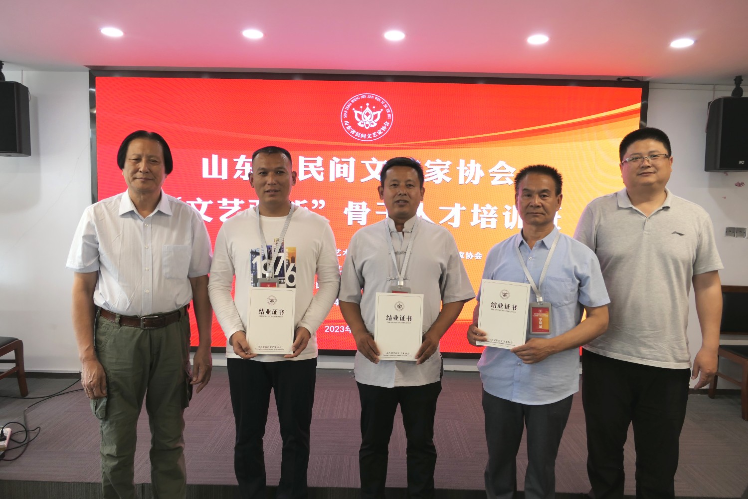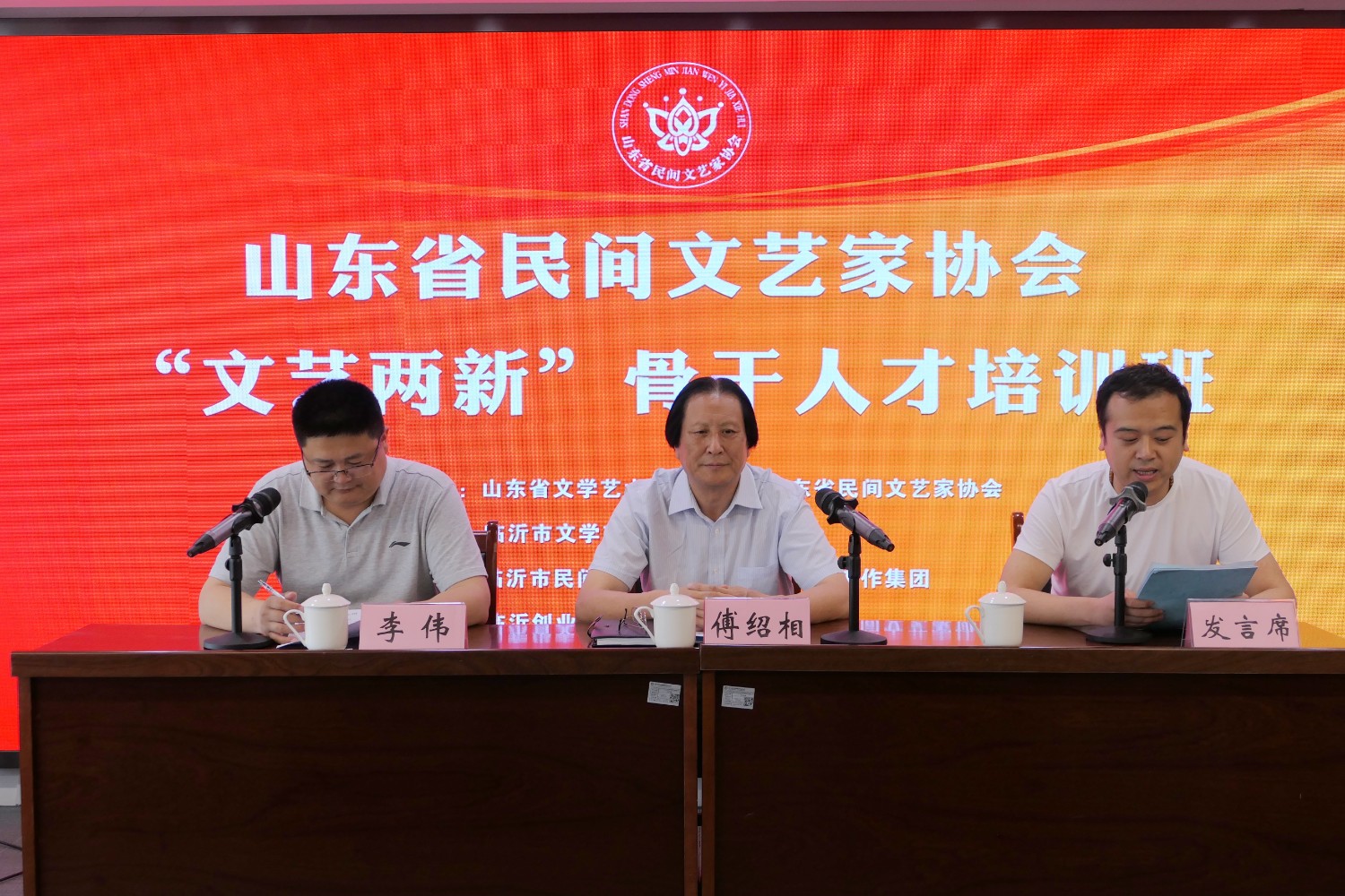 5月23日至26日,山東省民間文藝家協(xié)會(huì)“文藝兩新”骨干人才培訓(xùn)班在臨沂市順利舉辦。山東省民協(xié)副主席、日照市民協(xié)主席邢葆東,山東省民協(xié)副秘書長、三級(jí)調(diào)研員高光華,山東省民協(xié)文藝兩新工作委員會(huì)主任傅紹相,臨沂市文聯(lián)黨組書記、主席戰(zhàn)祥春,臨沂市文聯(lián)辦公室主任、臨沂市民協(xié)主席徐志強(qiáng)出席開班式。來自全省各市民協(xié)推薦的“文藝兩新”骨干代表、省民協(xié)“文藝兩新”工作委員會(huì)成員及當(dāng)?shù)亍拔乃噧尚隆眲?chuàng)作骨干代表等50余人參加培訓(xùn)。培訓(xùn)班邀請到臨沂市委黨校副校長楊建中教授,臨沂市委黨校文史教研部副主任劉柯薇副教授,省民協(xié)副主席、青島科技大學(xué)朱紀(jì)副教授,省民協(xié)主席團(tuán)委員、山東工藝美術(shù)學(xué)院人文藝術(shù)學(xué)院榮新副教授等四位教員,重點(diǎn)圍繞“黨的二十大精神學(xué)習(xí)”和“提升文藝精品創(chuàng)作”等主題,精選《黨的二十大精神專題》《沂蒙精神專題》《非遺保護(hù)與文創(chuàng)設(shè)計(jì)》《民間文藝主題創(chuàng)作創(chuàng)新發(fā)展的思考》等課程為學(xué)員進(jìn)行現(xiàn)場專題授課,各領(lǐng)域、各地區(qū)“文藝兩新”人才齊聚一堂,互動(dòng)交流。