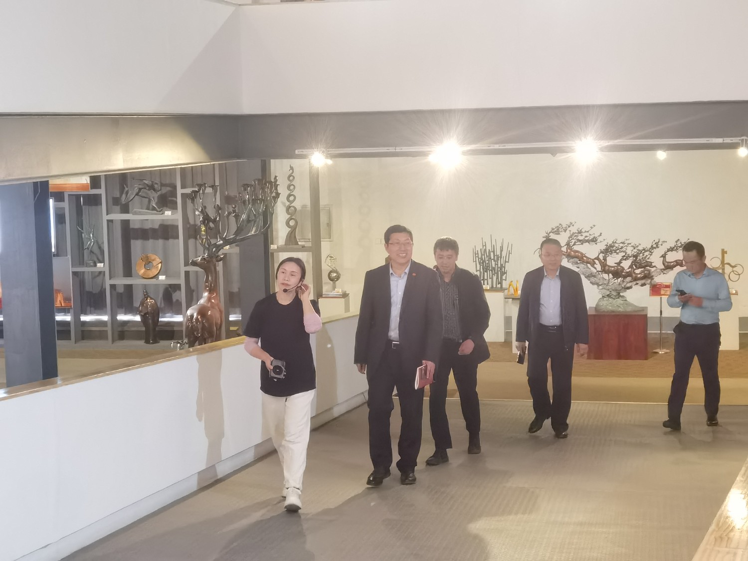 2023年4月18日,中國鑄造協(xié)會總經(jīng)濟(jì)師馬宏儒一行,蒞臨華藝雕塑視察指導(dǎo),華藝總經(jīng)理傅東陪同參觀并介紹雕塑藝術(shù)。