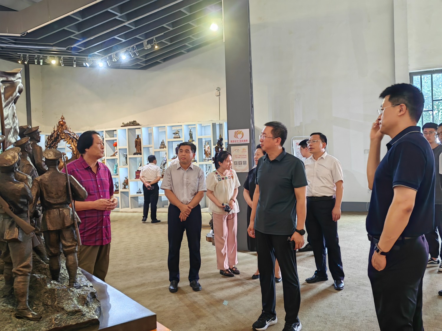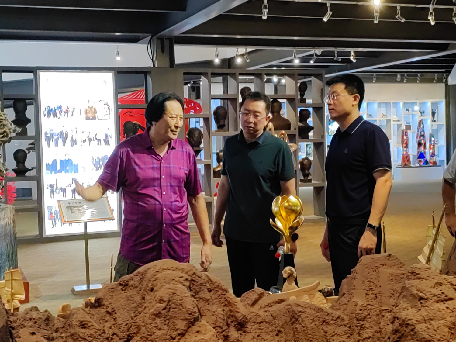 2023年7月19日,山東省財政廳政府債務(wù)管理處副處長李金法,省交通廳交通運輸事務(wù)服務(wù)發(fā)展研究處副處長李國東等領(lǐng)導(dǎo),在臨朐縣委副書記、縣長陳誠陪同下蒞臨華藝雕塑參觀指導(dǎo)。中國工藝美術(shù)大師傅紹相介紹雕塑藝術(shù)。
