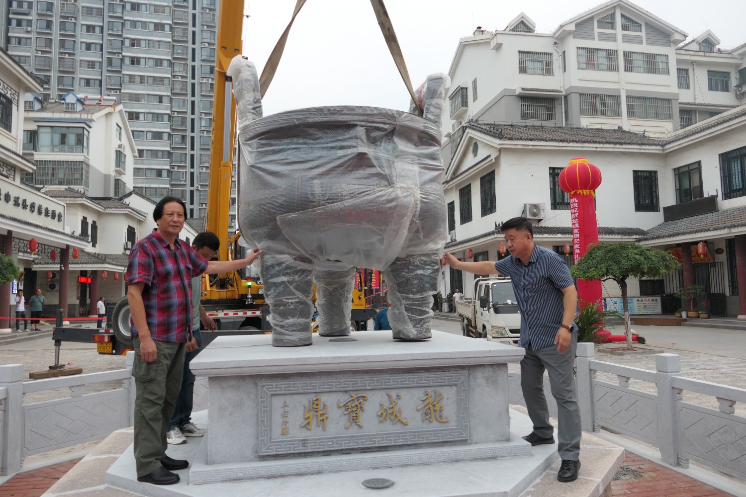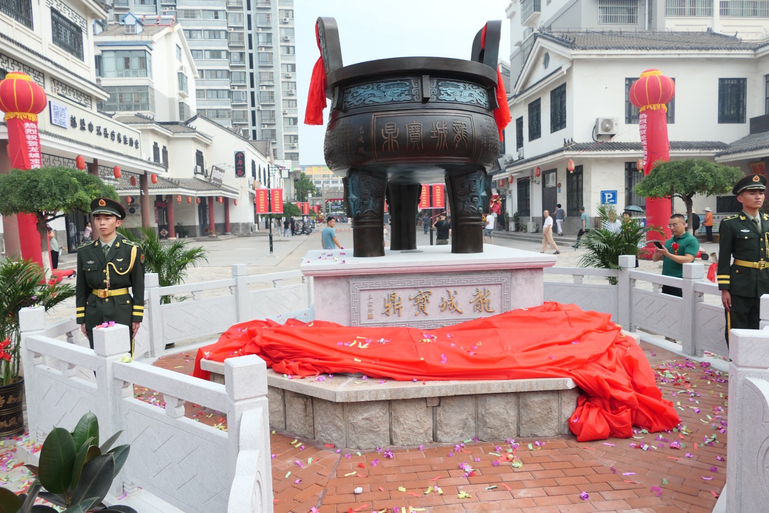 國之重器,以鼎為尊?!褒埑菍毝Α笔且蛔鹑沣~鼎,高2.3米,莊重而典雅,與同街區(qū)的“張擇端故里”、“畫圣坊”、“茶道古街”三大石制碑坊交相輝映,形成了獨(dú)特的文化氛圍,承載了厚重的歷史淵源。