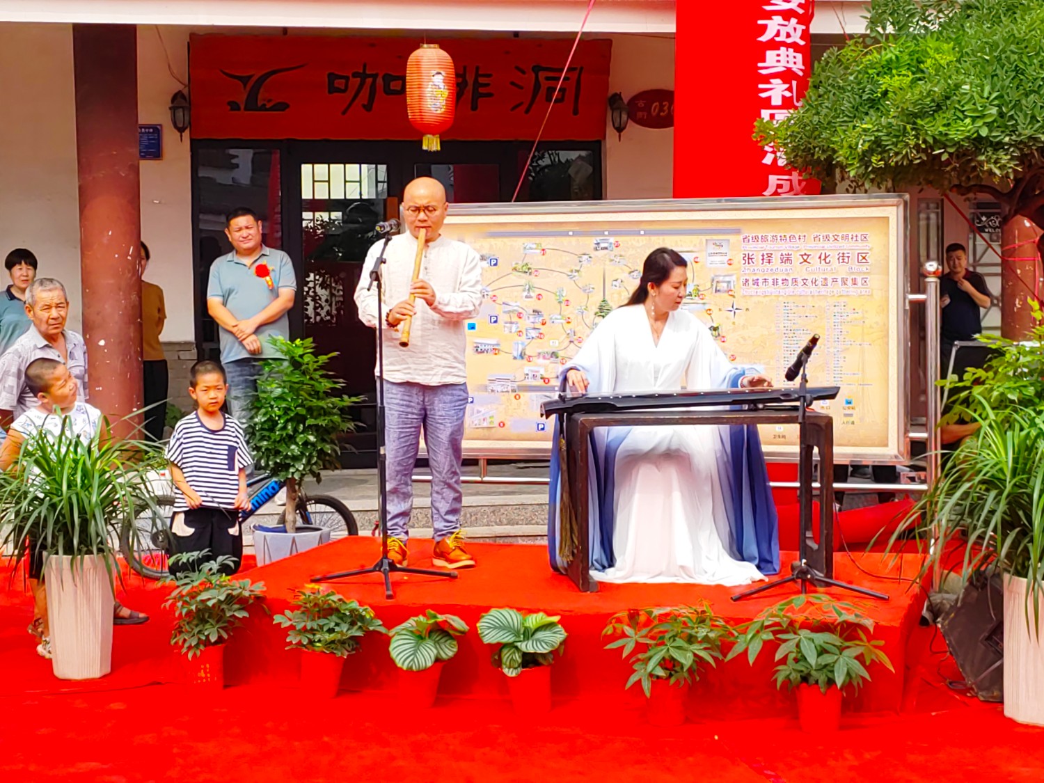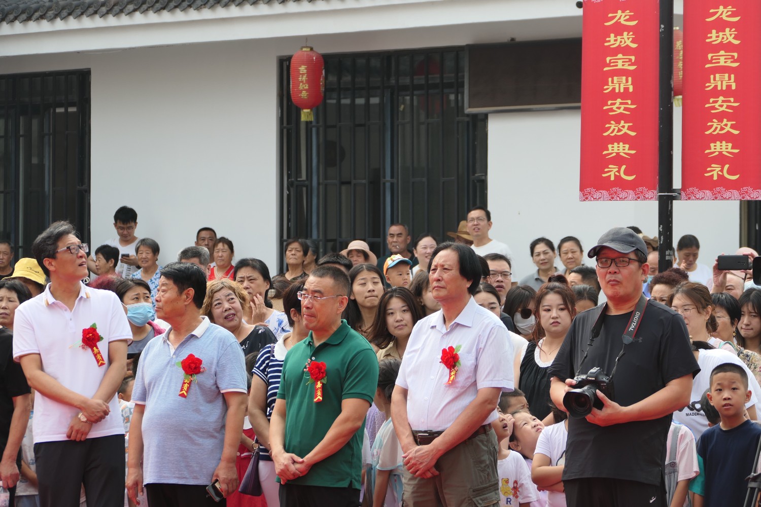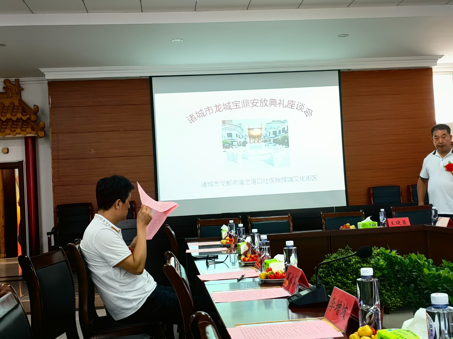 在諸城派古琴演奏家姜燕伴奏下,諸城市融媒體中心播音員趙恩森激情朗誦《龍城賦》全文,王金玲與諸城文旅局負(fù)責(zé)同志為“龍城寶鼎”揭幕。