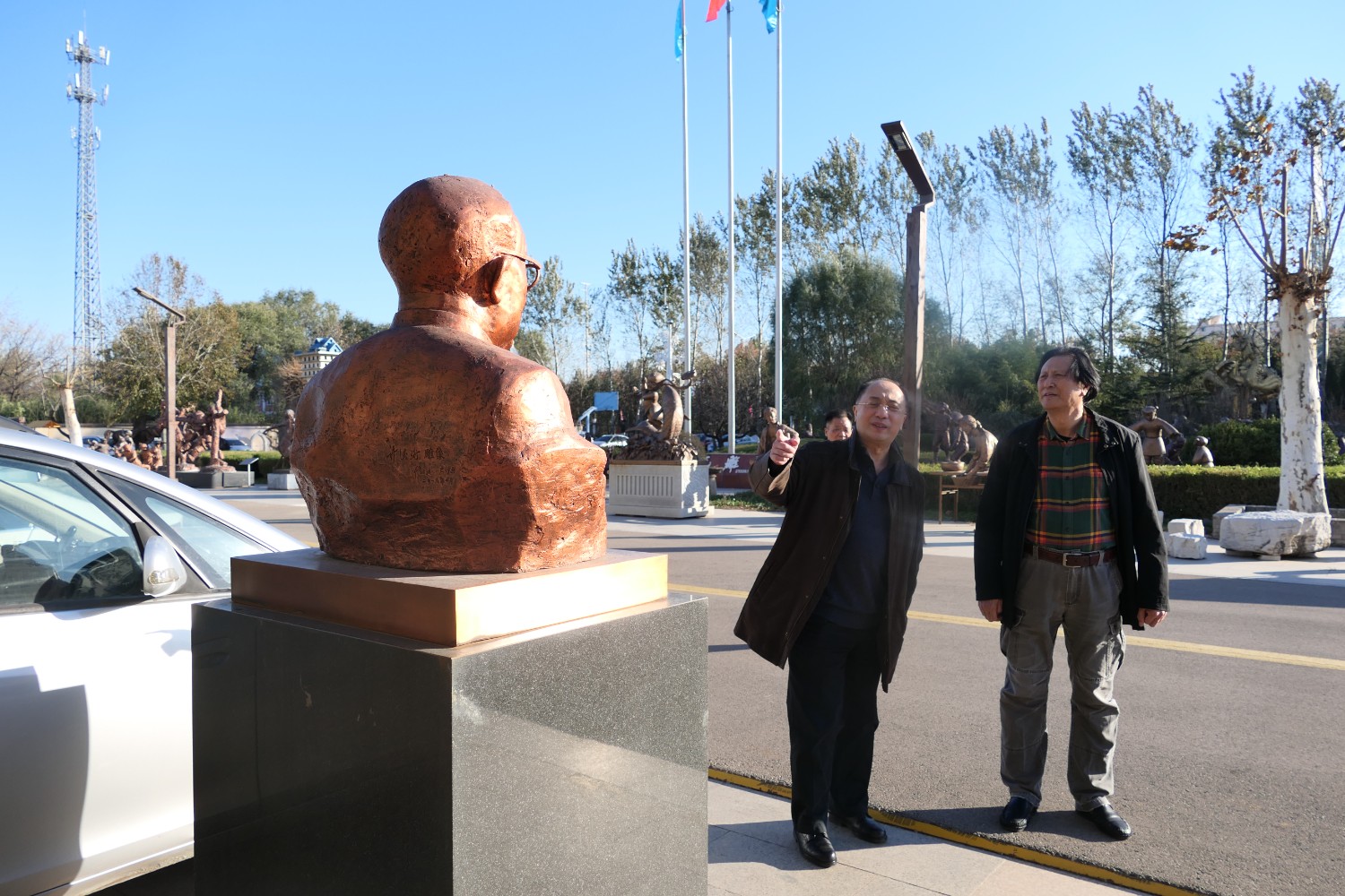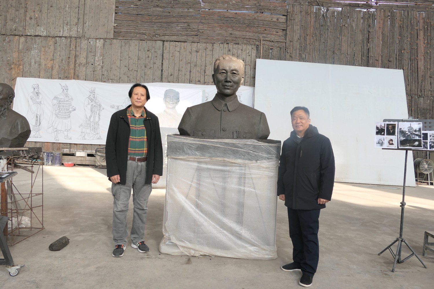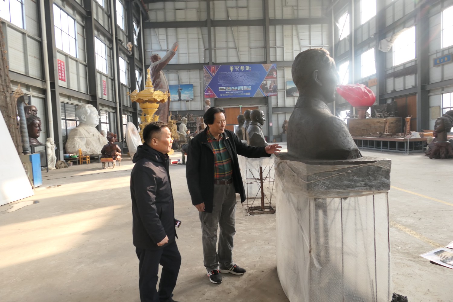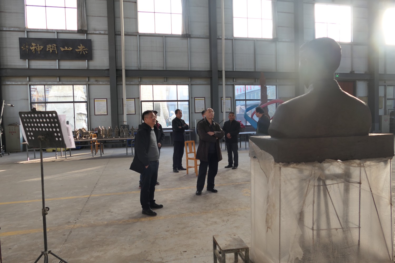 2021年11月16日,中國科學(xué)院心理研究所教授、文化與價值研究中心主任潘垚天博士,廣州潮起澳江文化有限公司黃順南董事長,蒞臨華藝指導(dǎo)驗收潘菽雕像泥塑。潘菽雕塑由國大師傅紹相設(shè)計,傅總與兩位嘉賓親切交流雕塑藝術(shù)。
