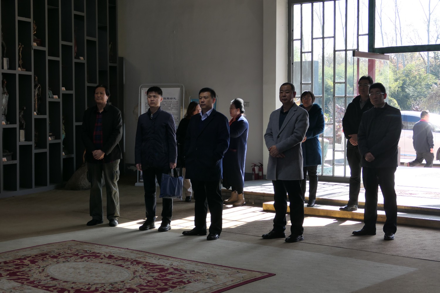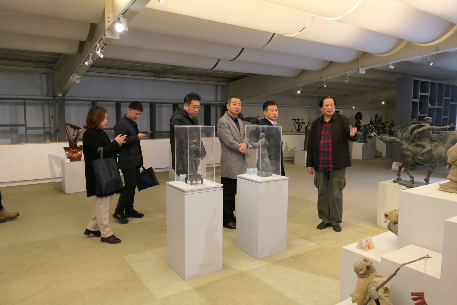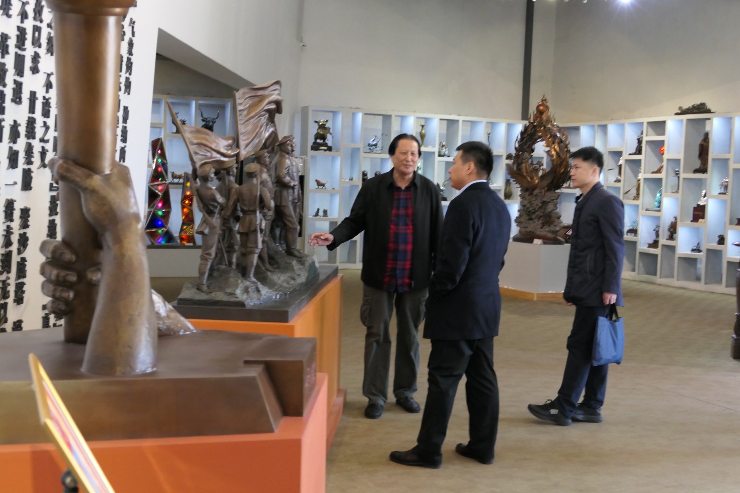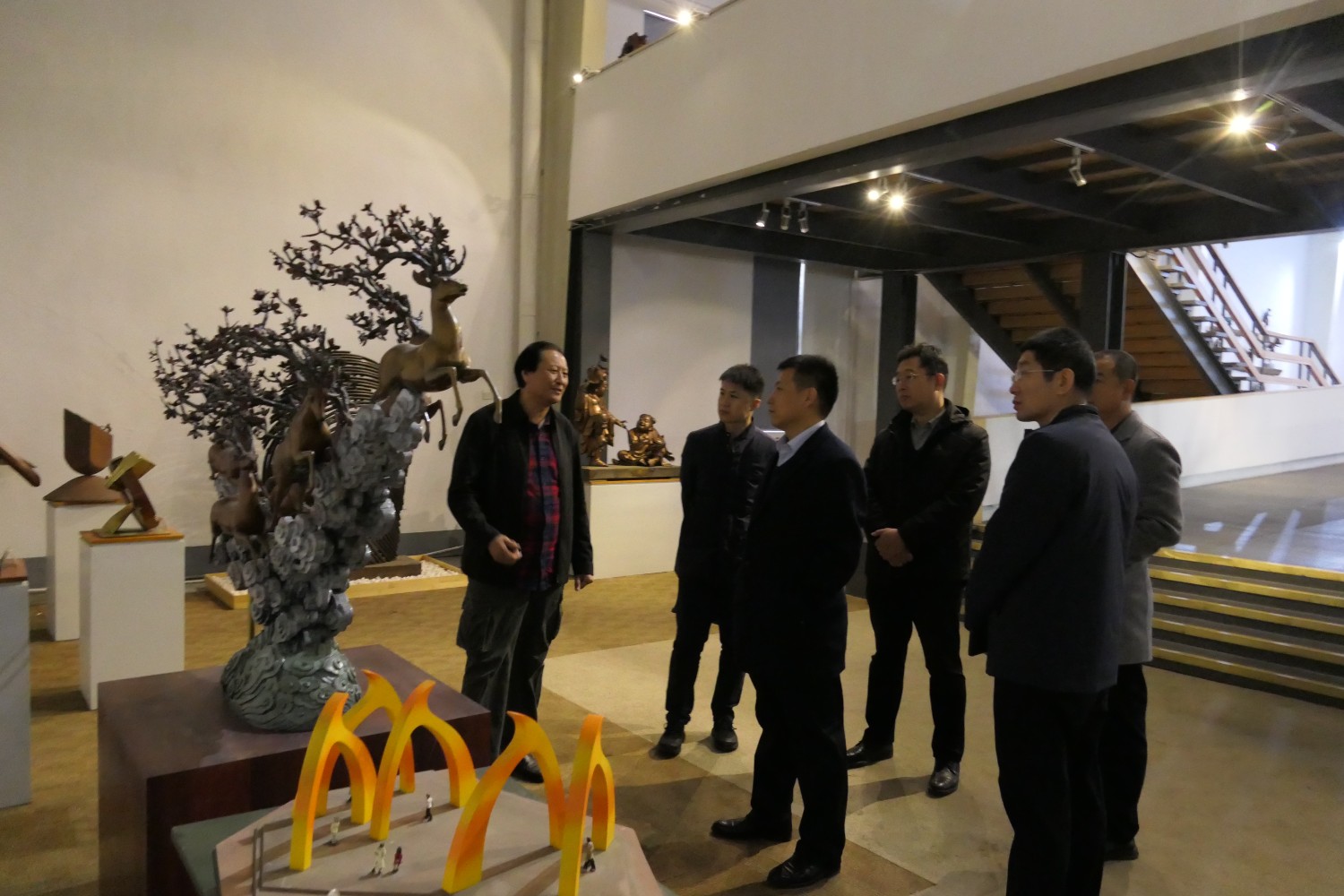 2023年11月24日,山東省輕紡工會(huì)副主席匙濤、山東金祥琉璃文化有限公司總設(shè)計(jì)師袁世祥,山東省建設(shè)工會(huì)一級(jí)主任科員譚政、濰坊市總工會(huì)副主席徐連奎,濰坊市總工會(huì)生產(chǎn)保護(hù)部部長(zhǎng)田梓一行,在臨朐縣總工會(huì)副主席郭棟、三級(jí)主任科員王靜的陪同下蒞臨華藝雕塑檢查指導(dǎo),國(guó)大師傅紹相介紹雕塑藝術(shù)。