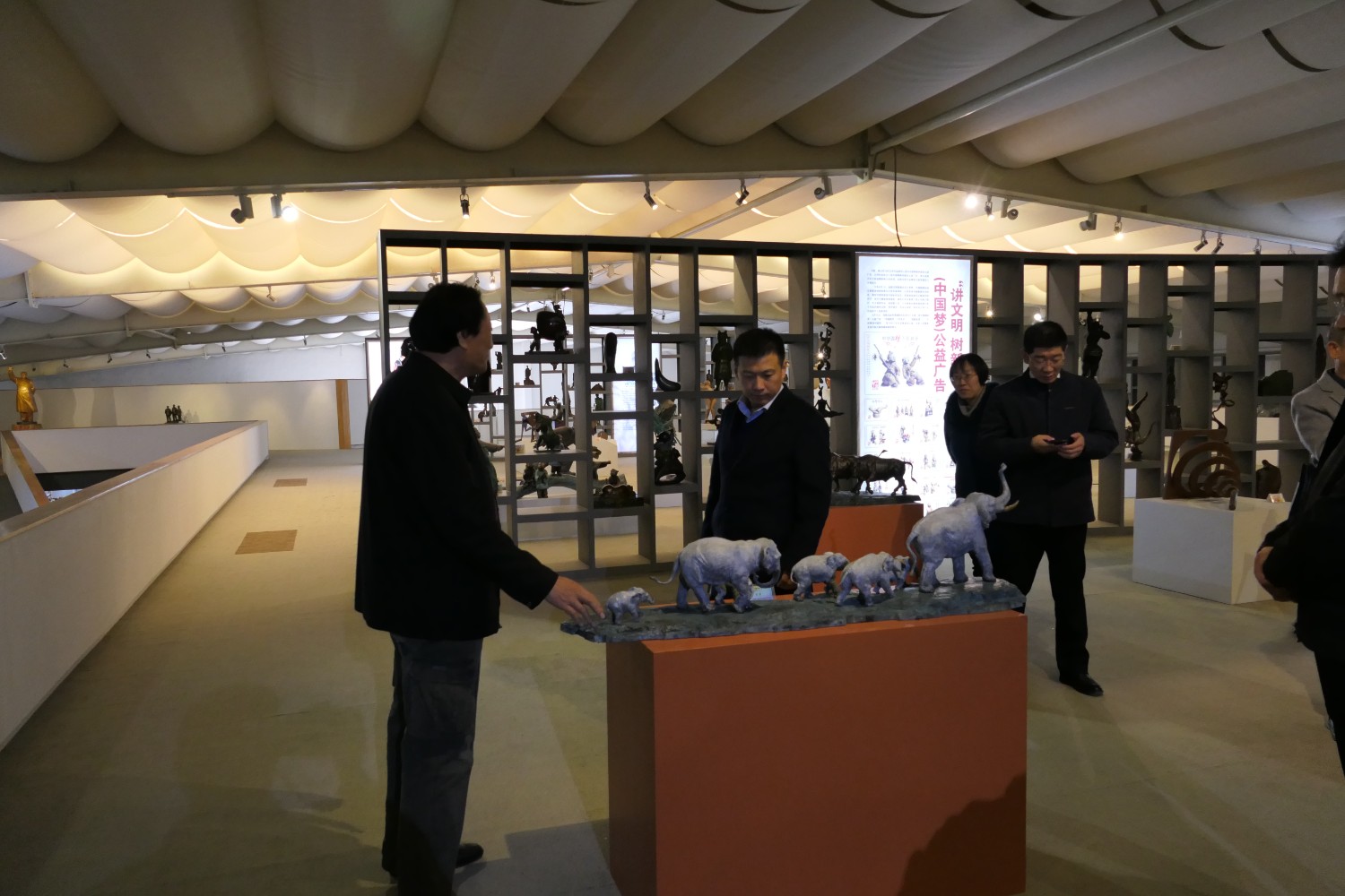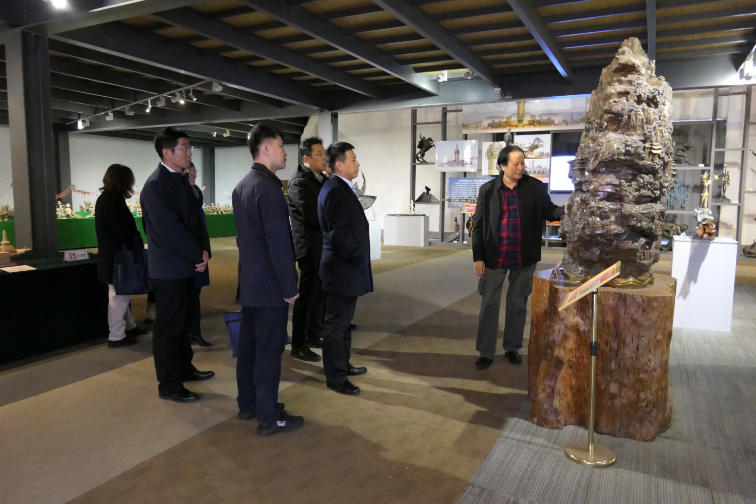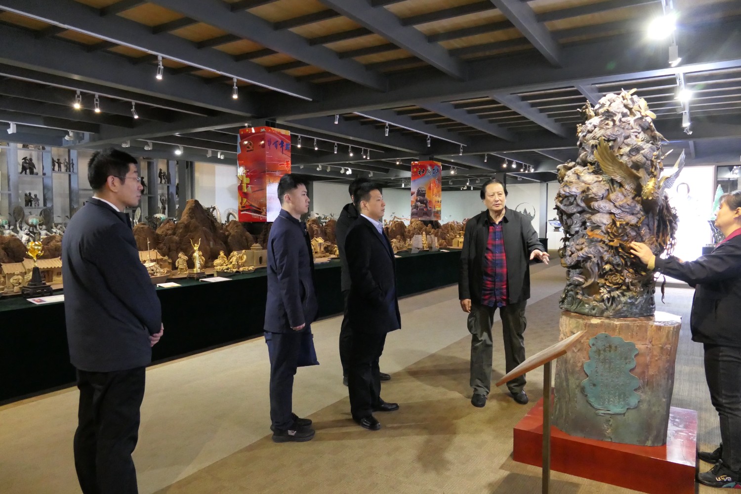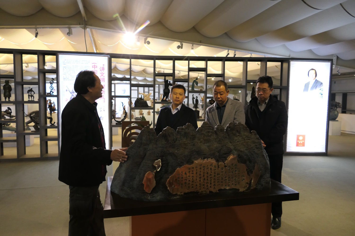 2023年11月24日,山東省輕紡工會(huì)副主席匙濤、山東金祥琉璃文化有限公司總設(shè)計(jì)師袁世祥,山東省建設(shè)工會(huì)一級(jí)主任科員譚政、濰坊市總工會(huì)副主席徐連奎,濰坊市總工會(huì)生產(chǎn)保護(hù)部部長(zhǎng)田梓一行,在臨朐縣總工會(huì)副主席郭棟、三級(jí)主任科員王靜的陪同下蒞臨華藝雕塑檢查指導(dǎo),國(guó)大師傅紹相介紹雕塑藝術(shù)。