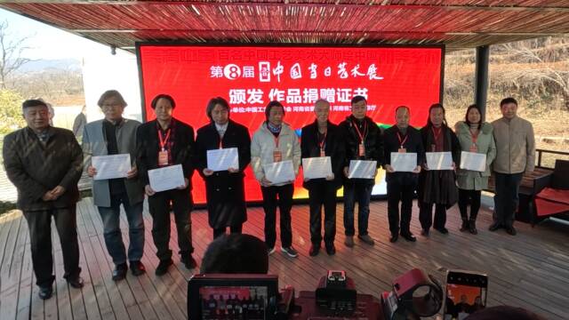 2024-3-112023年12月31日,由中國工藝美術(shù)學(xué)會(huì)、河南省委統(tǒng)戰(zhàn)部、河南省文化旅游廳共同主辦的第八屆中國【當(dāng)日】藝術(shù)展暨百名中國工藝美術(shù)大師繪中國活動(dòng)在洛陽隆重舉辦。出席開幕式的主要領(lǐng)導(dǎo)及嘉賓有中國工藝美術(shù)學(xué)會(huì)黨委書記、理事長才大穎,河南省委統(tǒng)戰(zhàn)部副部長、一級(jí)巡視員梁險(xiǎn)峰,洛陽市人大常委會(huì)副主任雷雪芹,洛陽市政協(xié)副主席魏險(xiǎn)峰,中國工藝美術(shù)學(xué)會(huì)黨委副書記王建良,河南省委統(tǒng)戰(zhàn)部新階層人士統(tǒng)戰(zhàn)工作處處長、二級(jí)巡視員張?zhí)礻嚕鍖幙h縣長王瑞,洛寧縣委統(tǒng)戰(zhàn)部部長易劍波,中國工藝美術(shù)大師代表:趙國安、楊德全、苗煒、鄭國明、熊建新、袁洪濱、傅紹相、王芝文、苗長強(qiáng)、雷天勇、孔相卿、賈會(huì)成、仵孟超、李竹玲、史延春、龐永輝、郭愛和,以及相關(guān)單位領(lǐng)導(dǎo)、專家、學(xué)者近二百余人出席了此次活動(dòng)。