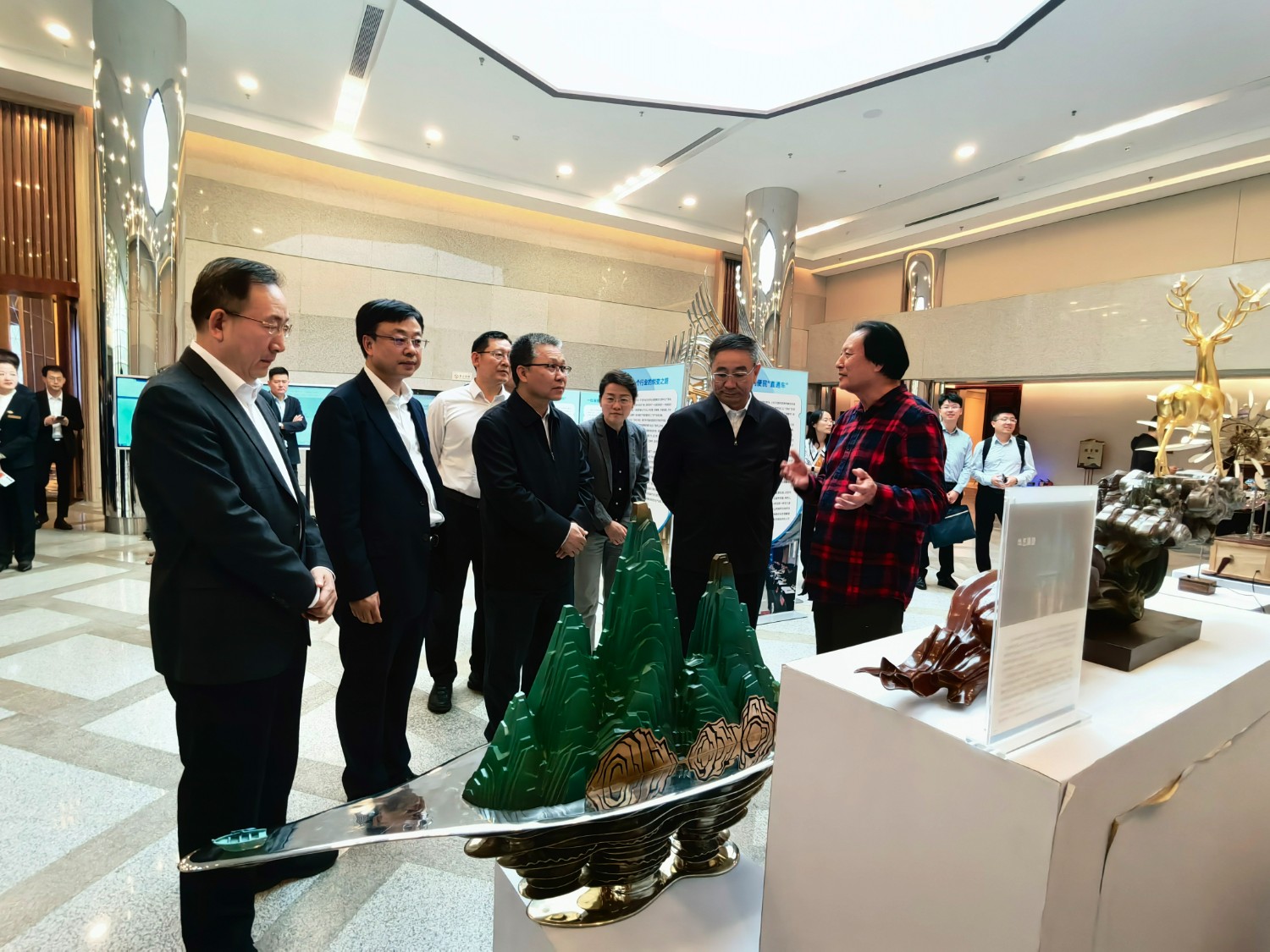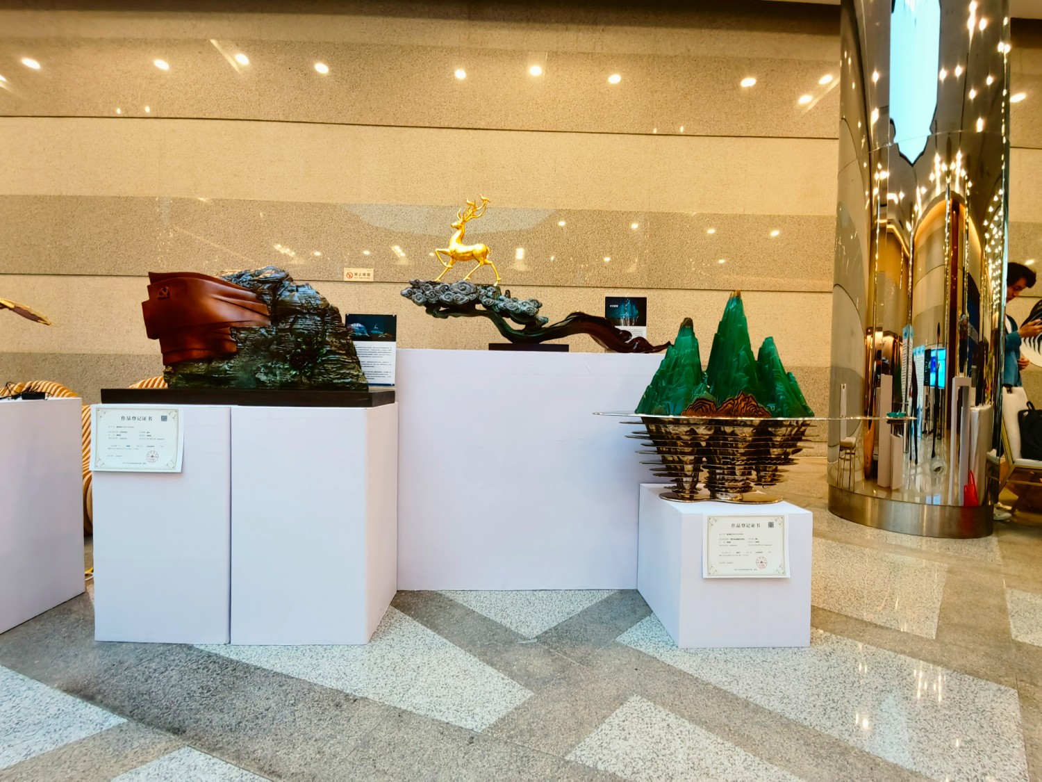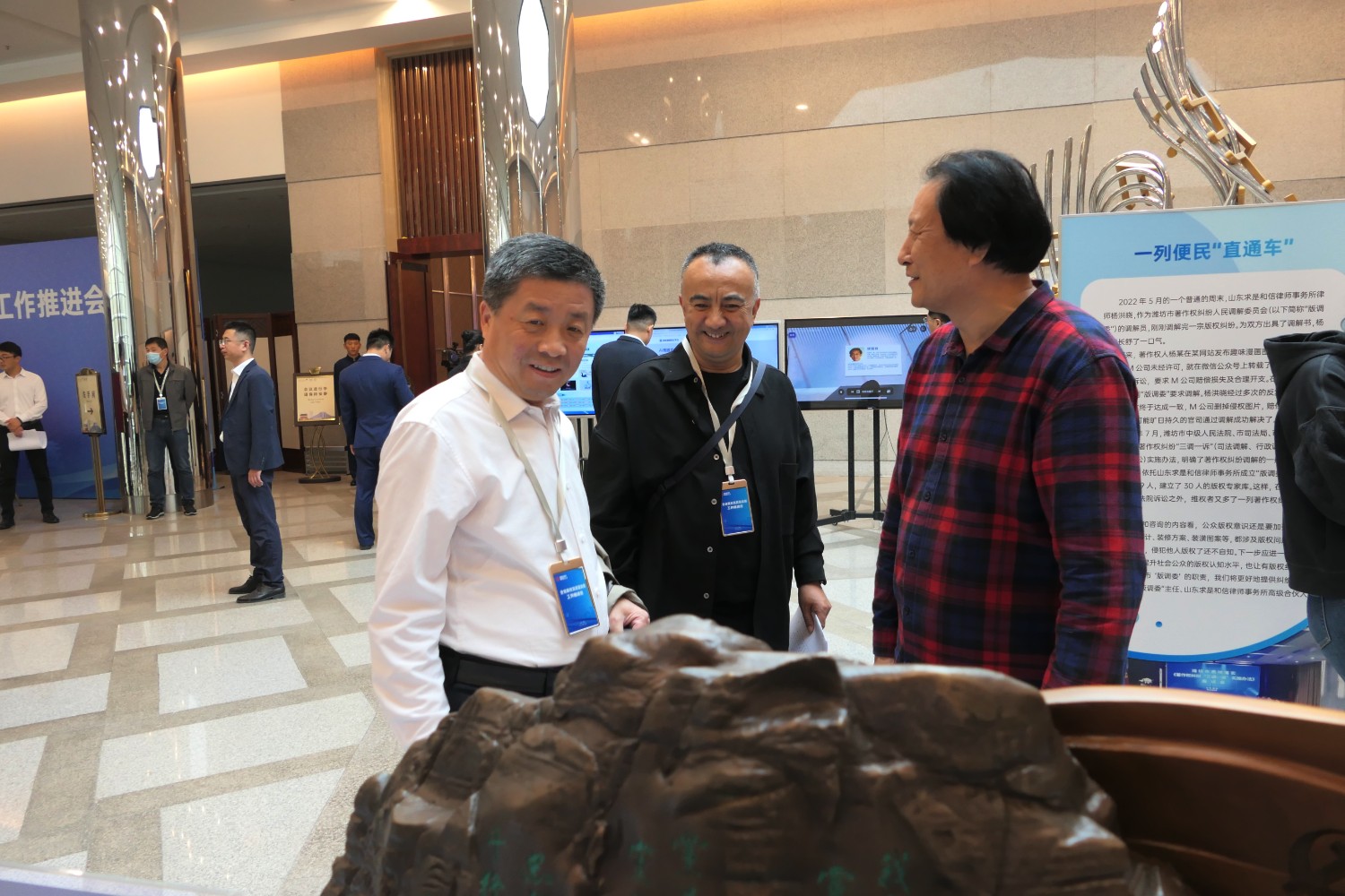 2024-3-112023年10月30日,全省版權高質量發(fā)展工作推進會在濰坊富華國際會議中心召開。中宣部版權管理局局長王志成致辭;省委常委、宣傳部部長白玉剛講話;省委宣傳部副部長、省電影局局長程守田主持;濰坊市委書記、市人大常委會主任劉運匯報濰坊市版權賦能城市發(fā)展情況;市委副書記、市長劉建軍,市委常委、宣傳部部長楊建華參加有關活動。特邀中國工藝美術大師傅紹相“山東手造”文創(chuàng)作品《綠水青山》《一路祥瑞》《百年誓詞》參加版權活動展出,傅紹相先生向各位領導、嘉賓介紹文創(chuàng)作品及有關作品版權情況。華藝精湛的技藝、精美的青銅作品,得到了領導和嘉賓的高度贊譽。