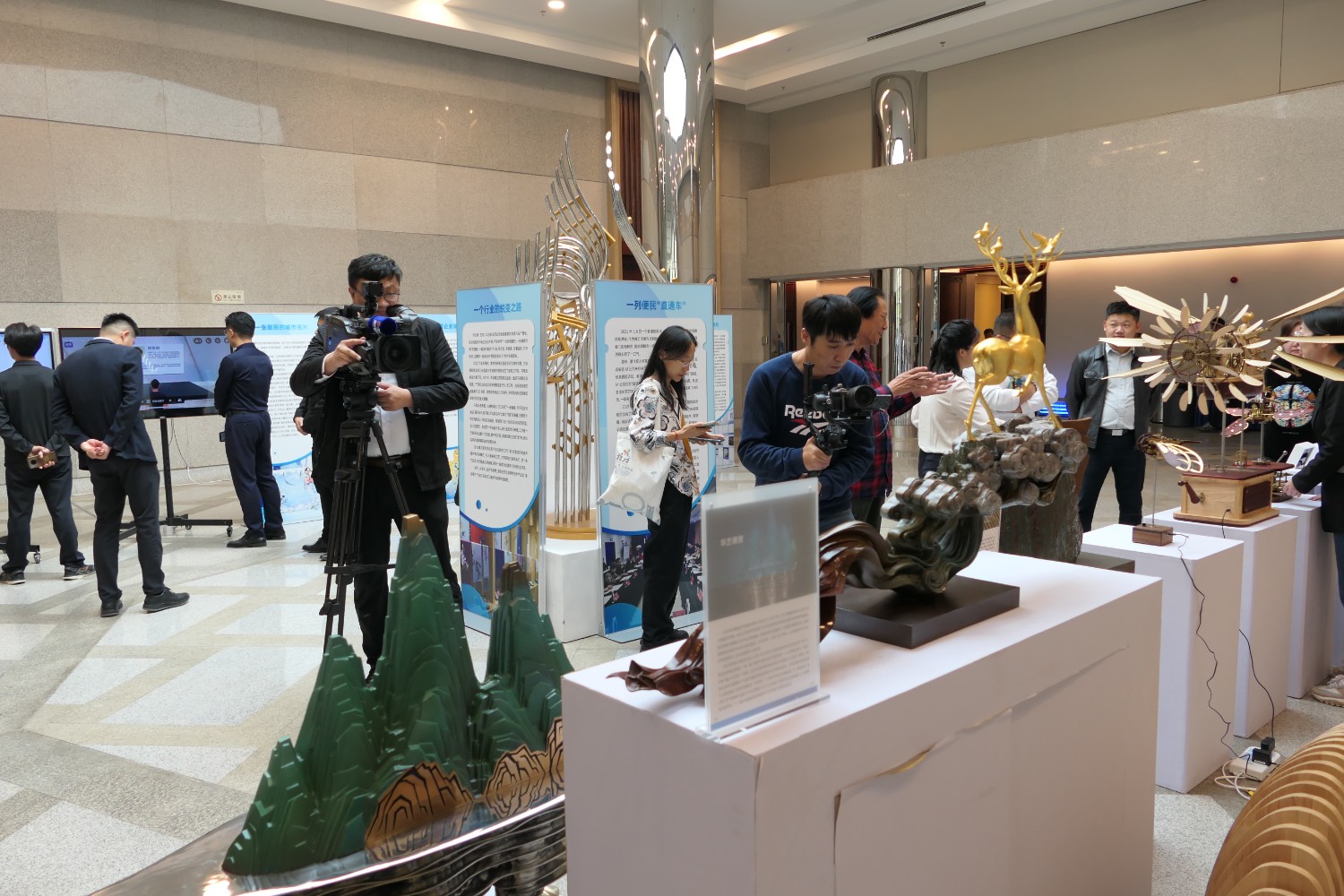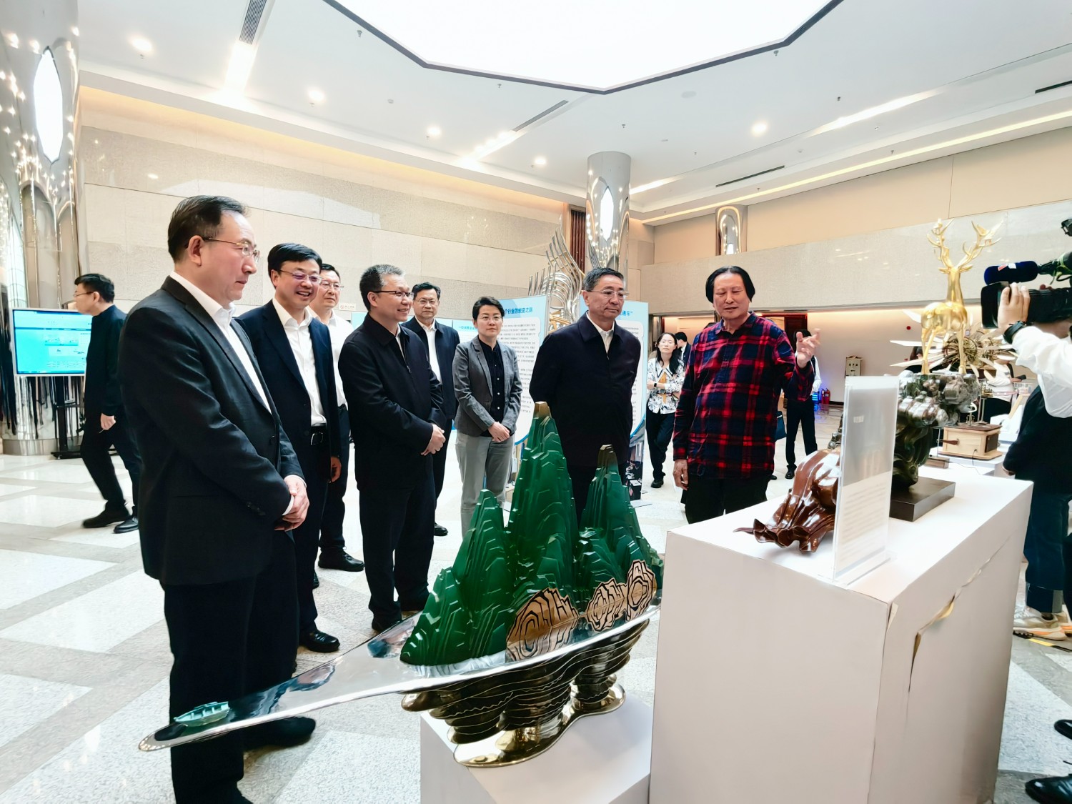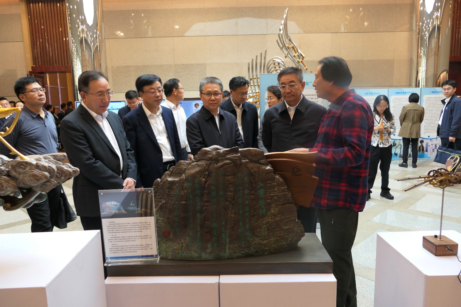 2024-3-112023年10月30日,全省版權高質量發(fā)展工作推進會在濰坊富華國際會議中心召開。中宣部版權管理局局長王志成致辭;省委常委、宣傳部部長白玉剛講話;省委宣傳部副部長、省電影局局長程守田主持;濰坊市委書記、市人大常委會主任劉運匯報濰坊市版權賦能城市發(fā)展情況;市委副書記、市長劉建軍,市委常委、宣傳部部長楊建華參加有關活動。特邀中國工藝美術大師傅紹相“山東手造”文創(chuàng)作品《綠水青山》《一路祥瑞》《百年誓詞》參加版權活動展出,傅紹相先生向各位領導、嘉賓介紹文創(chuàng)作品及有關作品版權情況。華藝精湛的技藝、精美的青銅作品,得到了領導和嘉賓的高度贊譽。