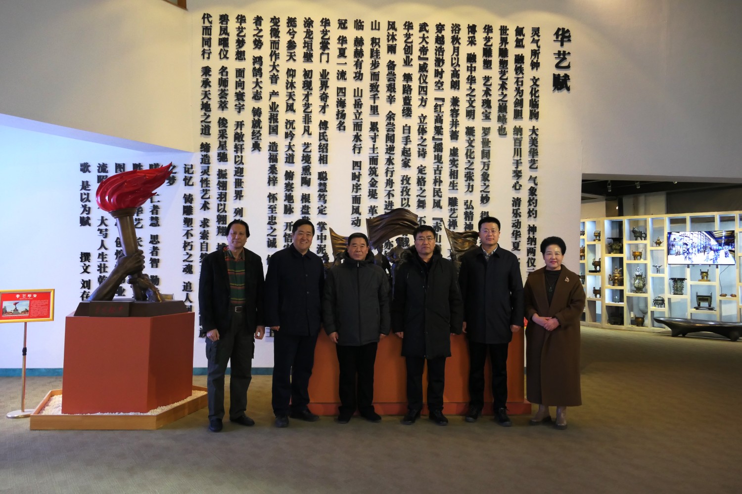 2023年12月23日,原濰坊市委書(shū)記劉曙光,原濰坊市政協(xié)主席蘇立科,原濰坊市政協(xié)主席劉建國(guó)等濰坊市老領(lǐng)導(dǎo),在臨朐縣委副書(shū)記、縣長(zhǎng)陳誠(chéng)陪同下,蒞臨華藝雕塑參觀指導(dǎo),國(guó)大師傅紹相向老領(lǐng)導(dǎo)介紹山東手造文創(chuàng)作品及雕塑藝術(shù)。 ?