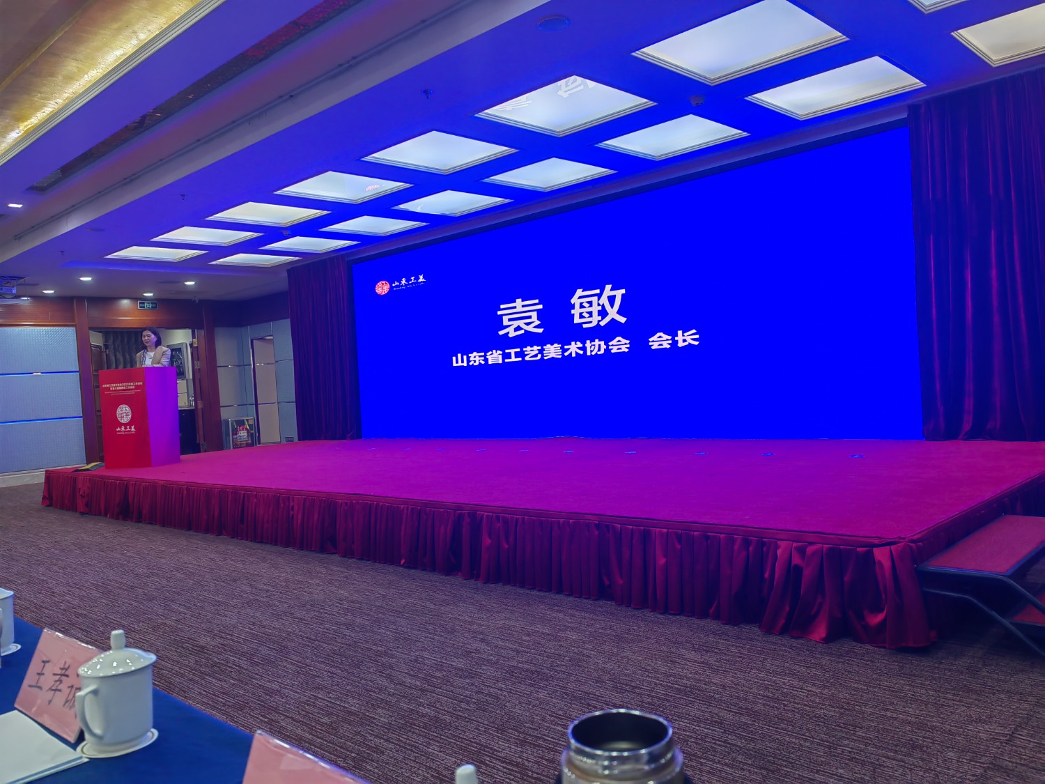 山東省工業(yè)和信息化廳一級巡視員羅新軍,山東省社會主義學(xué)院黨組成員、副院長孫黎海,山東省輕工聯(lián)社黨組成員、理事會副主任初建強,山東省輕工紡織工會委員會主席劉磊,山東省人力資源和社會保障廳專業(yè)技術(shù)人員管理處副處長楊俊,山東工藝美術(shù)學(xué)院現(xiàn)代手工藝術(shù)學(xué)院副院長惠巖,山東省工藝美術(shù)協(xié)會會長袁敏出席會議。山東省工藝美術(shù)協(xié)會副會長李元元主持會議。