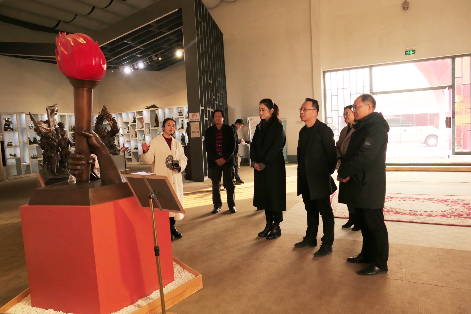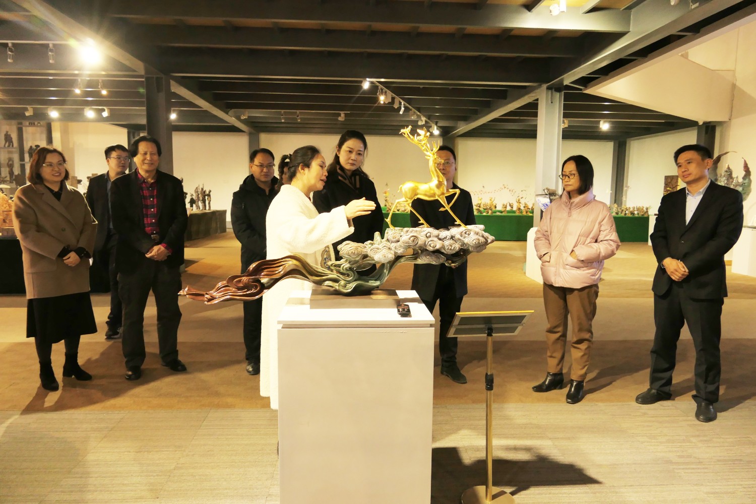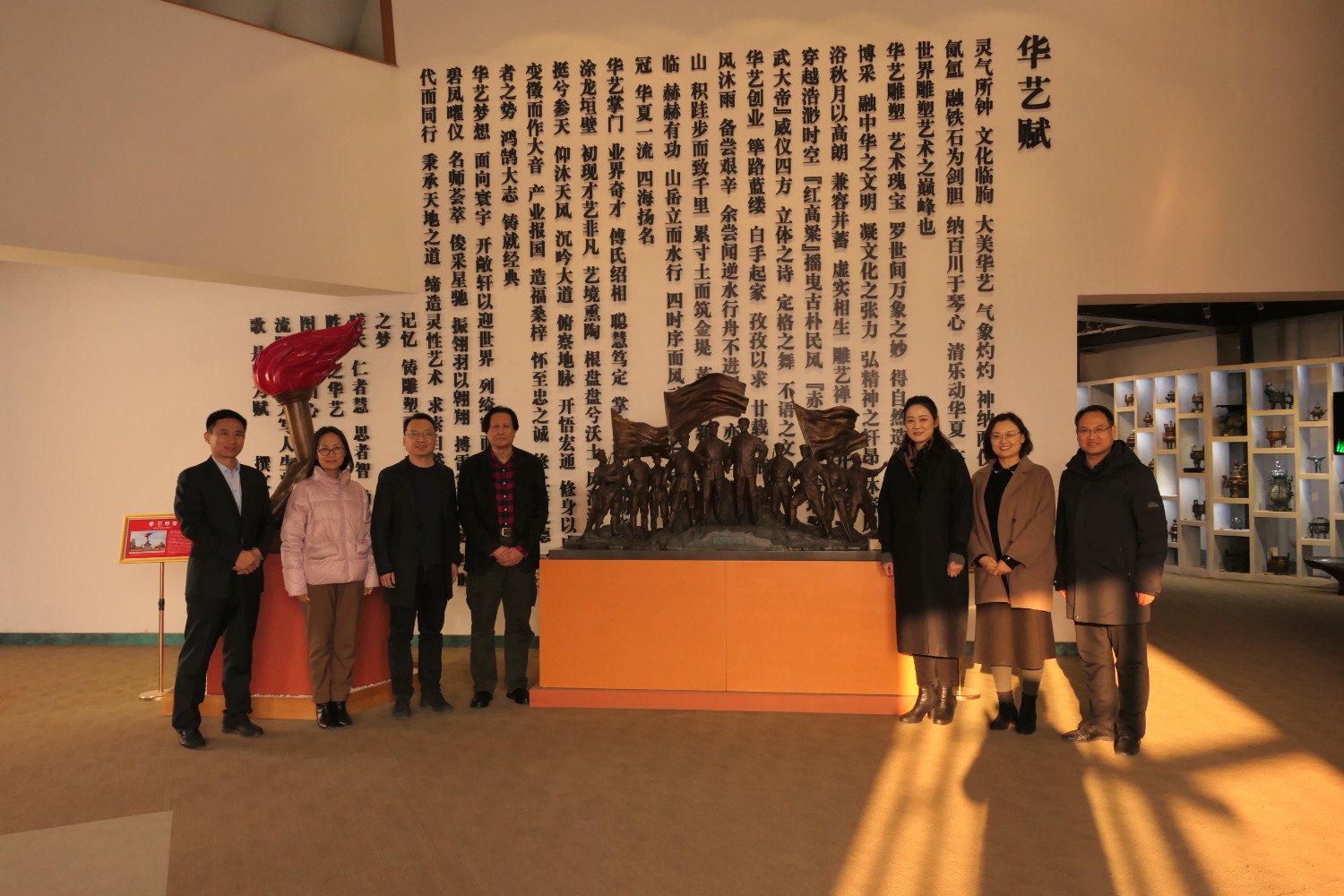 2024年1月12日,山東輕工職業(yè)學院副院長焦翠平、組織部長常立一行在臨朐縣副縣長張惠玉、城關街道辦主任陳敬等領導陪同下,蒞臨華藝雕塑參觀指導并進行合作交流,中國工藝美術大師傅紹相介紹雕塑藝術。