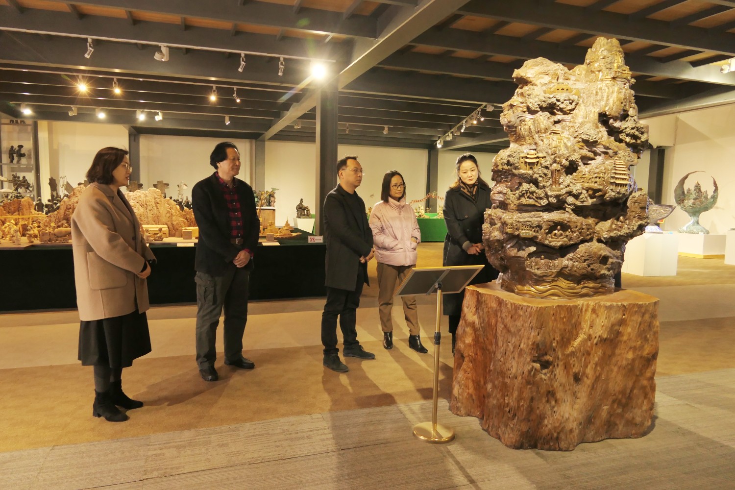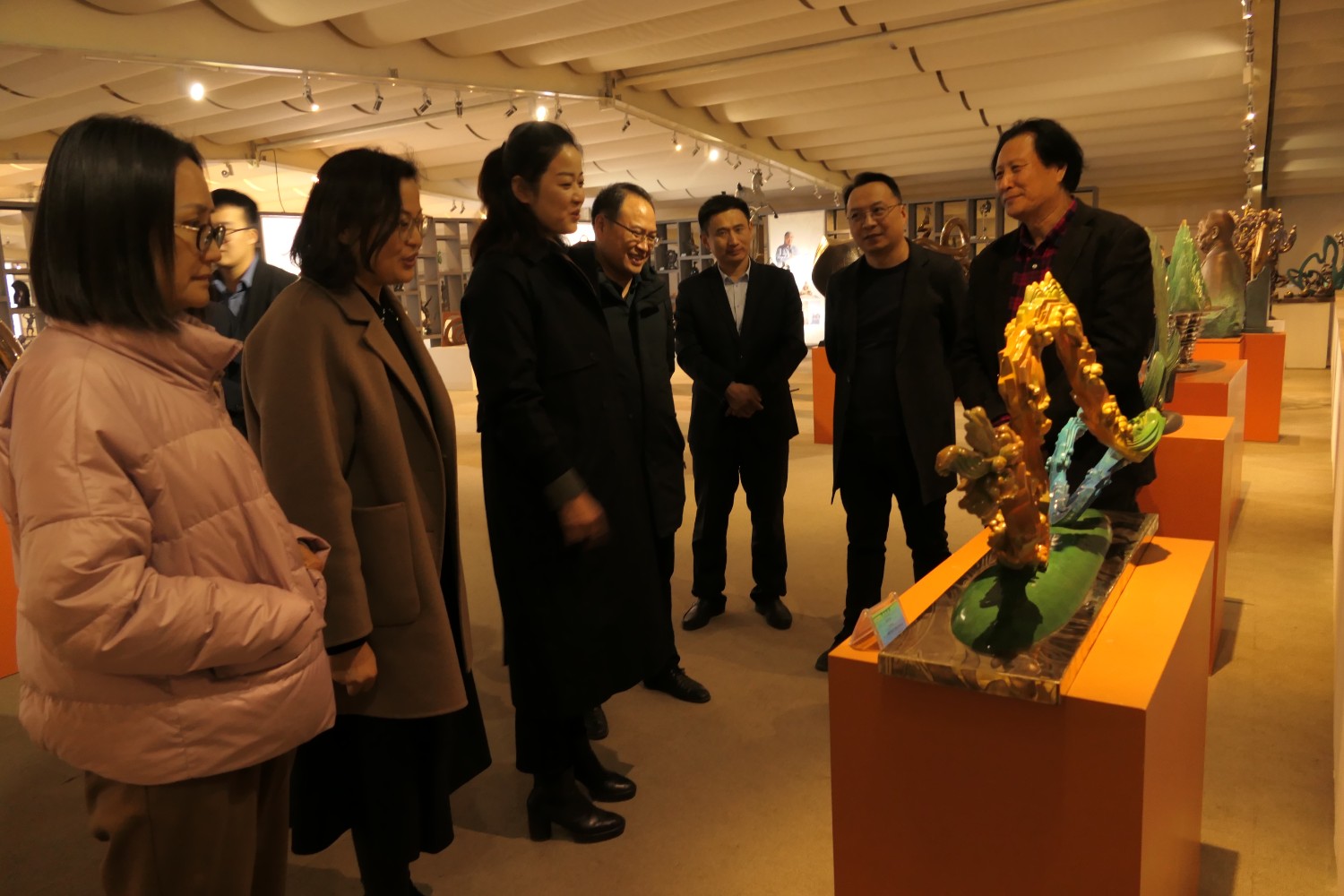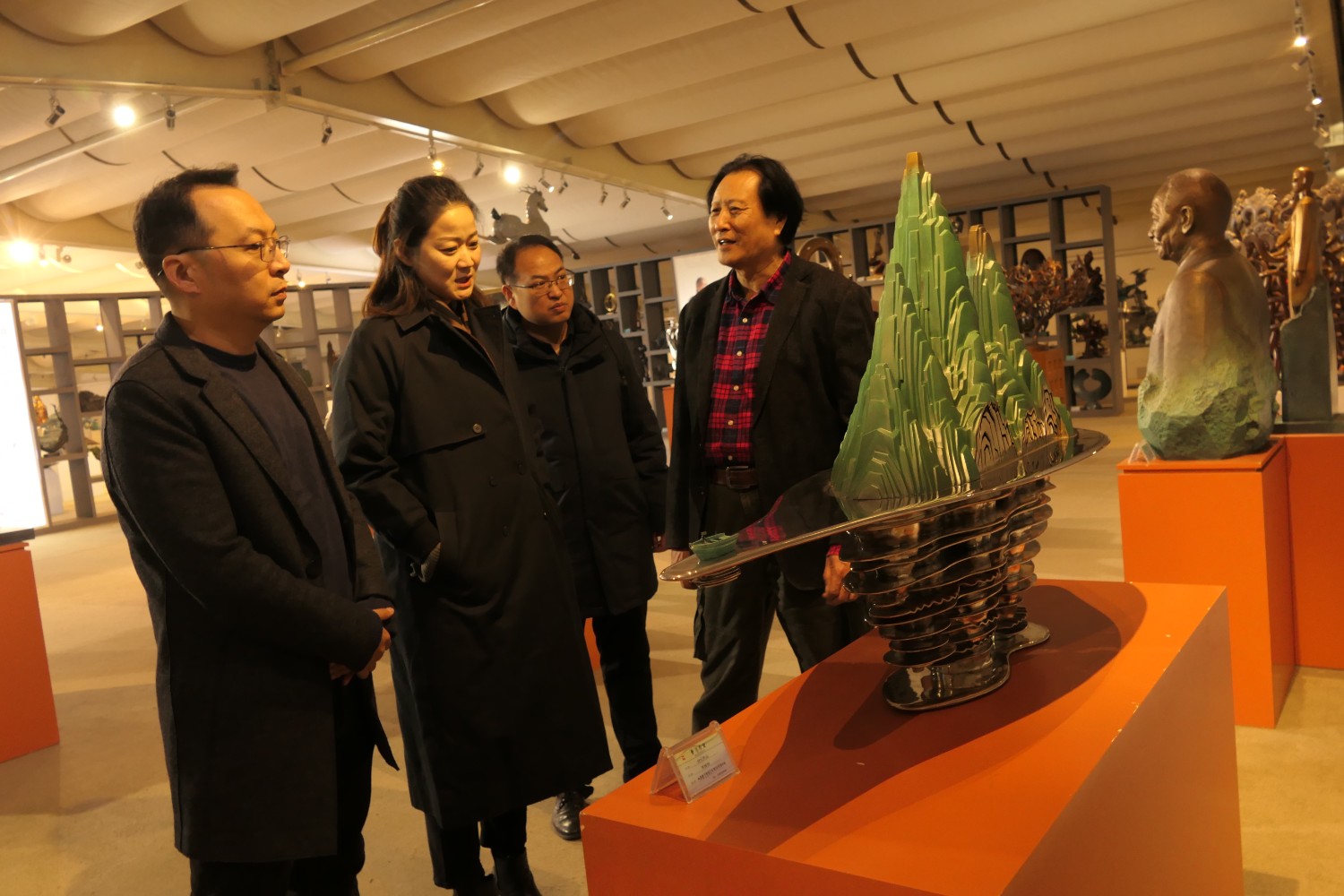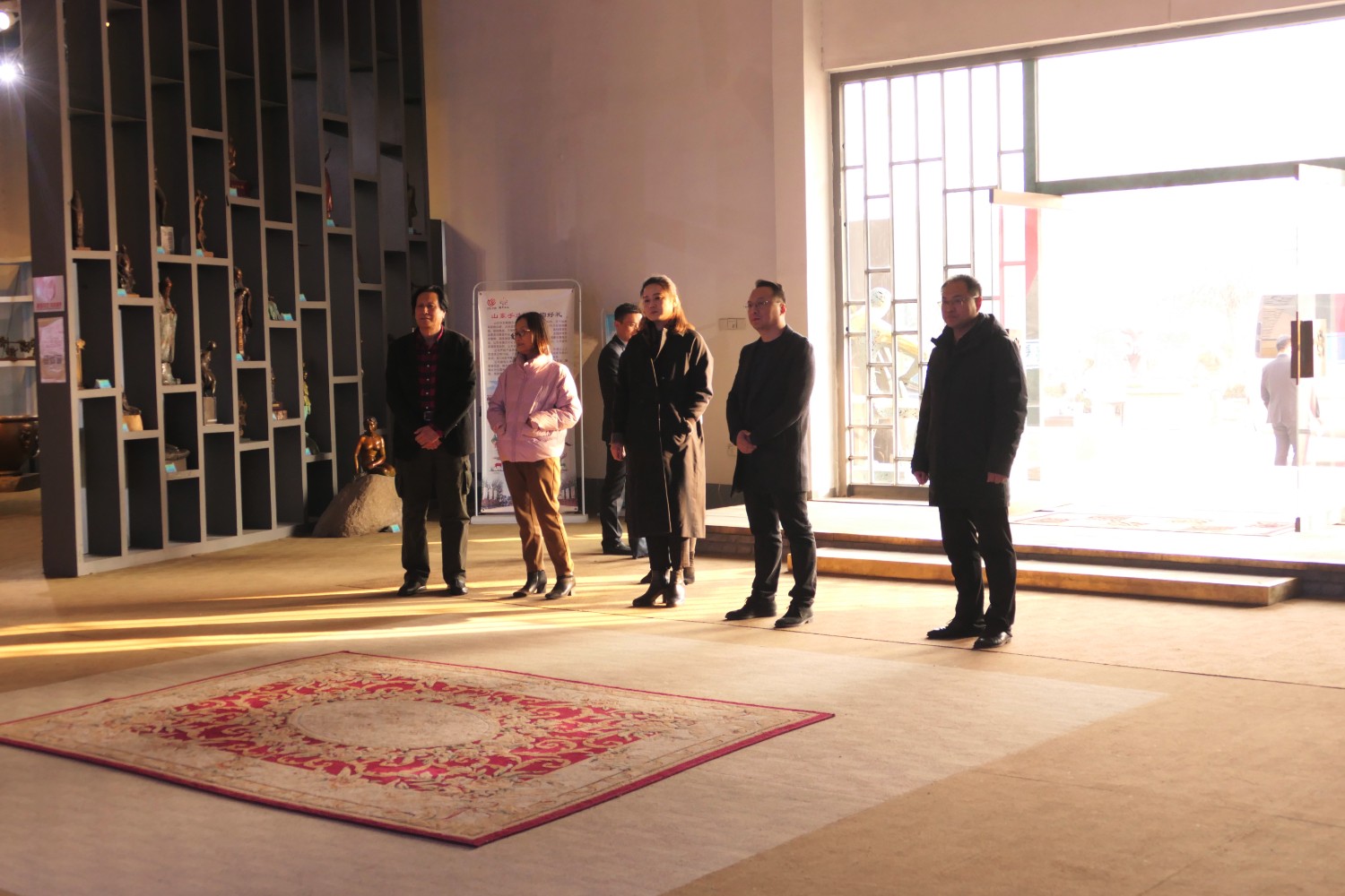 2024年1月12日,山東輕工職業(yè)學院副院長焦翠平、組織部長常立一行在臨朐縣副縣長張惠玉、城關街道辦主任陳敬等領導陪同下,蒞臨華藝雕塑參觀指導并進行合作交流,中國工藝美術大師傅紹相介紹雕塑藝術。