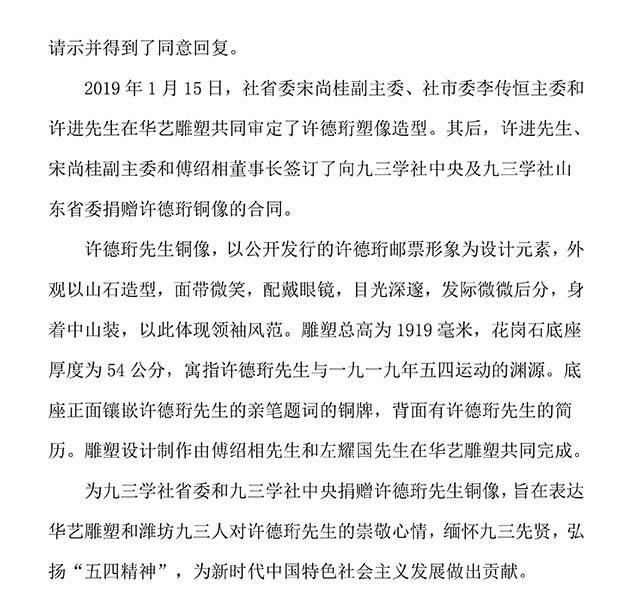 全國政協(xié)副主席、九三學(xué)社中央常務(wù)副主席邵鴻出席許德珩先生銅像落成揭幕儀式